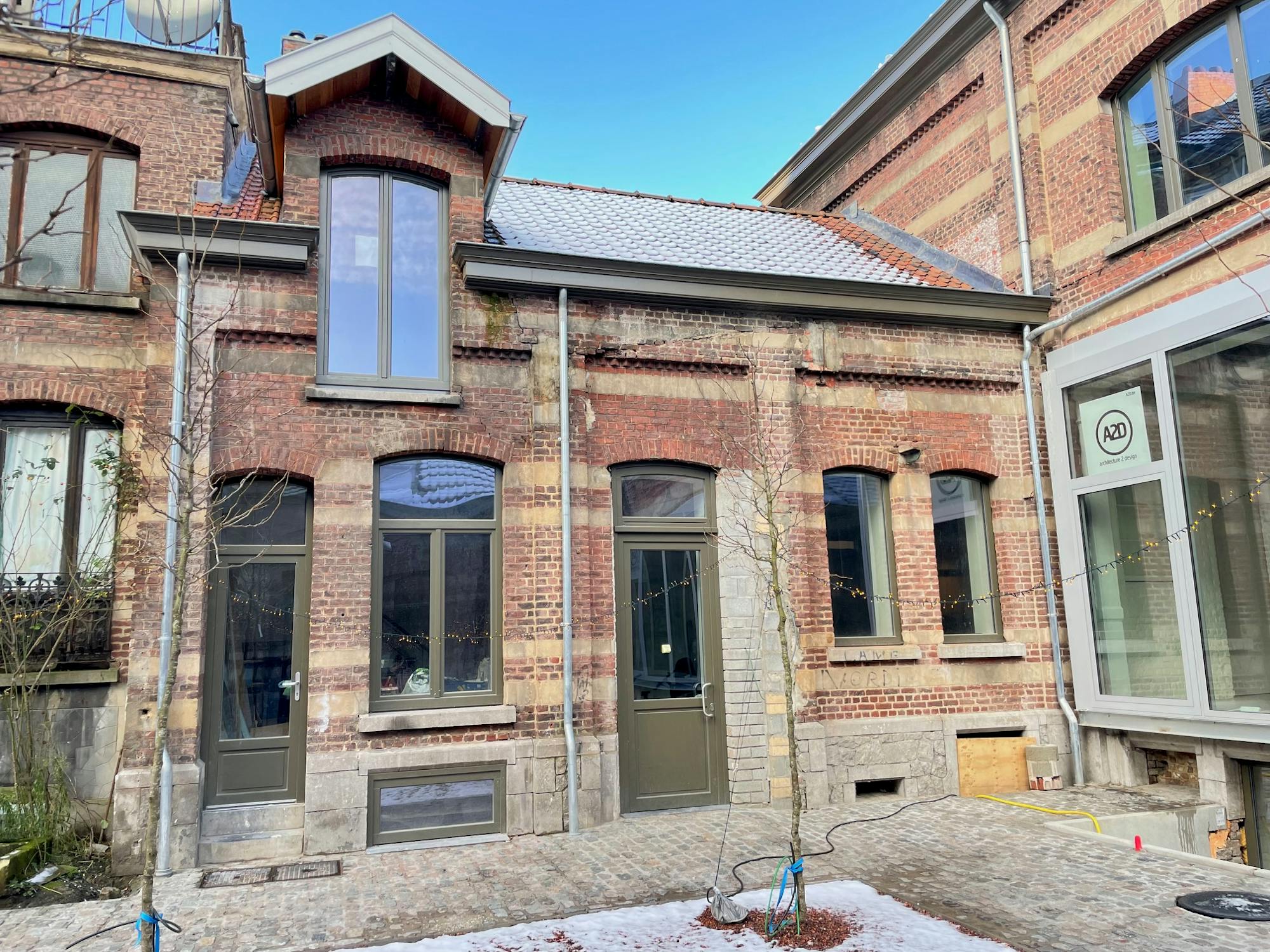 CRAFT space for sale (98m²) - Meymo - Brussels - Molenbeek-Saint-Jean. MEYMO is a prestigious renovation project that revives a historic customs building from 1906, located near Thurn & Taxis, Gare Maritime and the center of Brussels. Led by the A2D architectural firm in Tervuren, Meymo combines historic grandeur with modern luxury. Sustainability is a key point at Meymo. Bio-based materials, individual air/water heat pumps and advanced ventilation systems minimize the ecological footprint. Meymo creates a community where living and working come together, with a communal courtyard for relaxation and encounters.