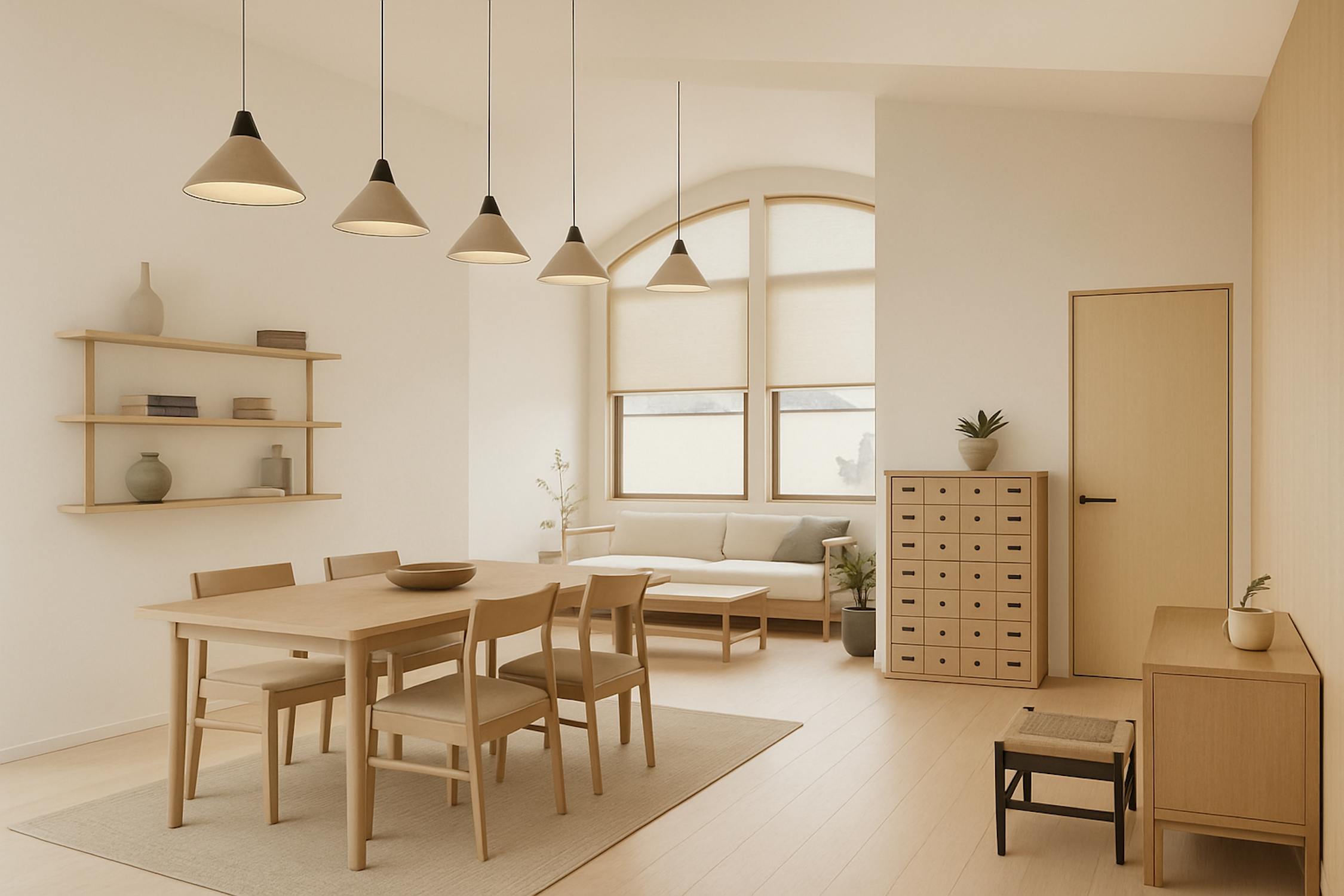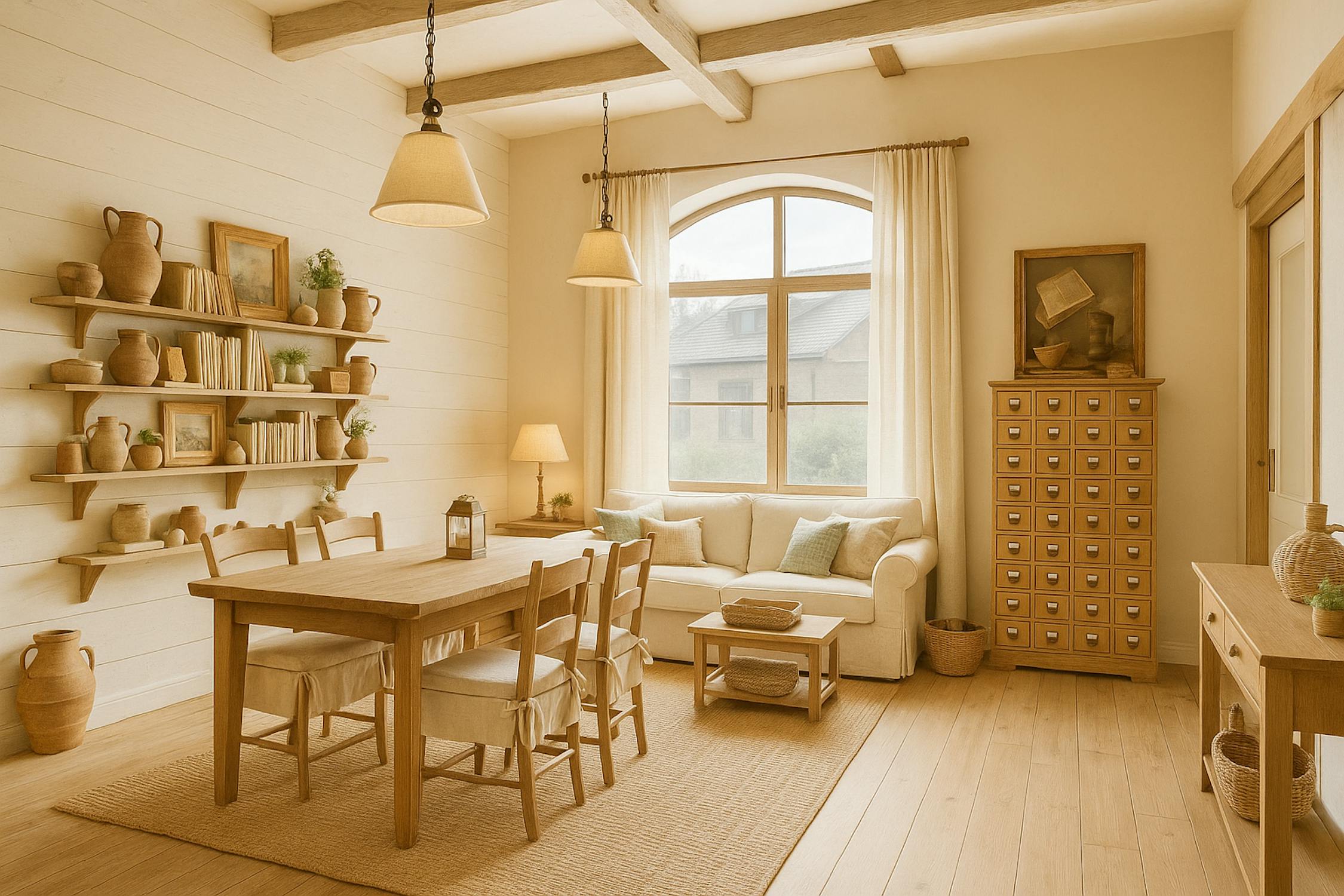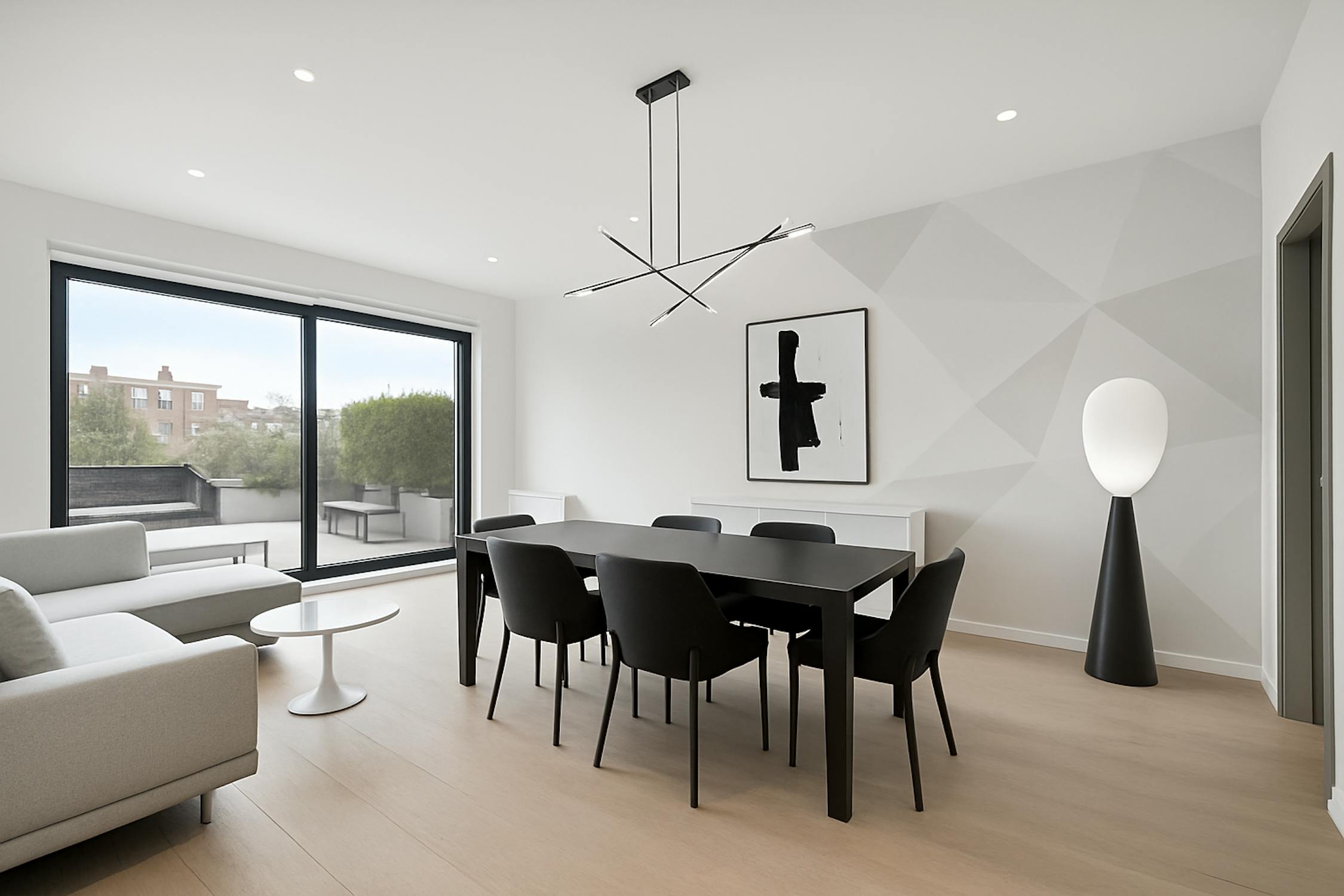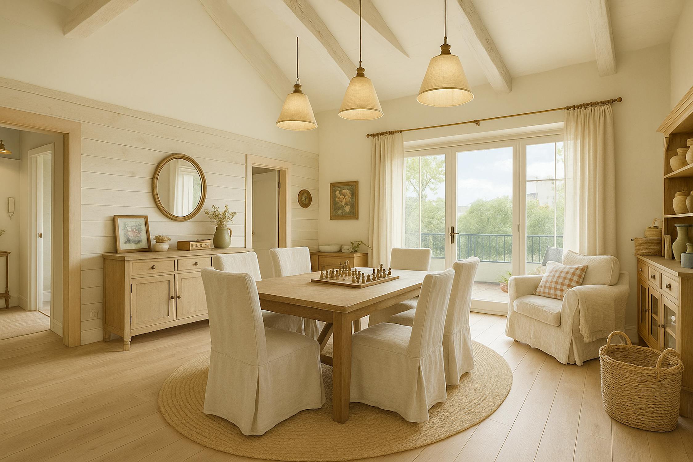 - bright living room with high ceilings and large windows (solar filter)