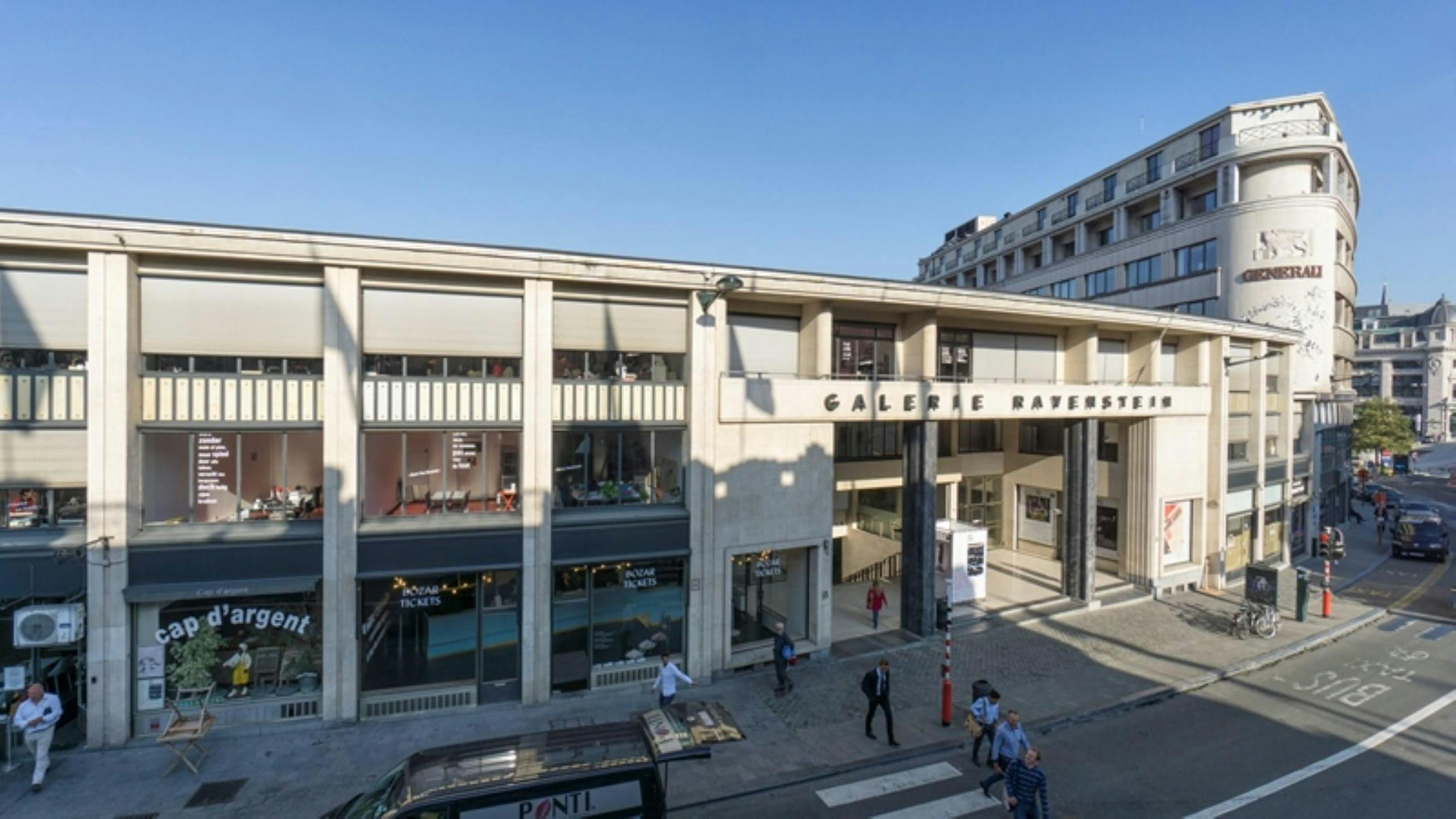 Cette galerie constitue le lien principal entre la ville haute (Kunstberg) et la ville basse (Grote Markt) et se trouve juste en face de la gare centrale. L'emplacement bénéficie d'un passage exceptionnellement fréquenté, en partie grâce à l'accès souterrain direct à la gare et à la proximité des principaux bureaux (futur siège de la STIB et de BNP Paribas Fortis).