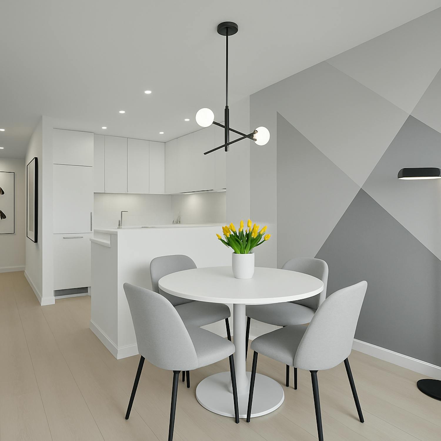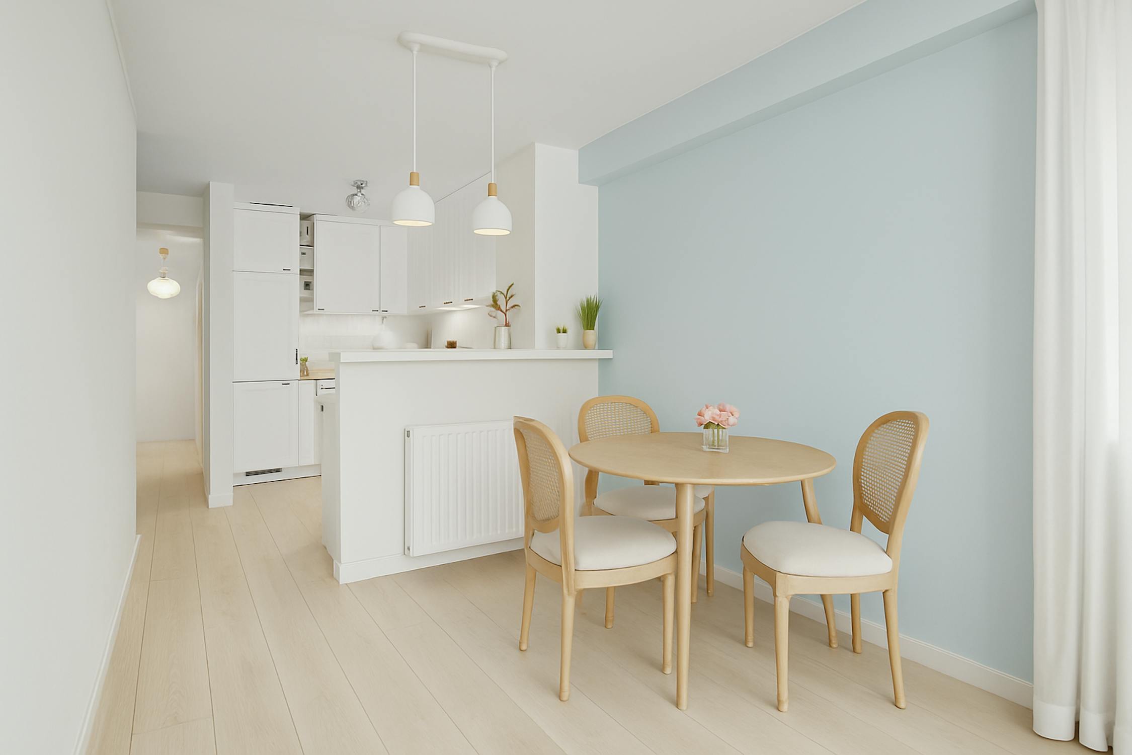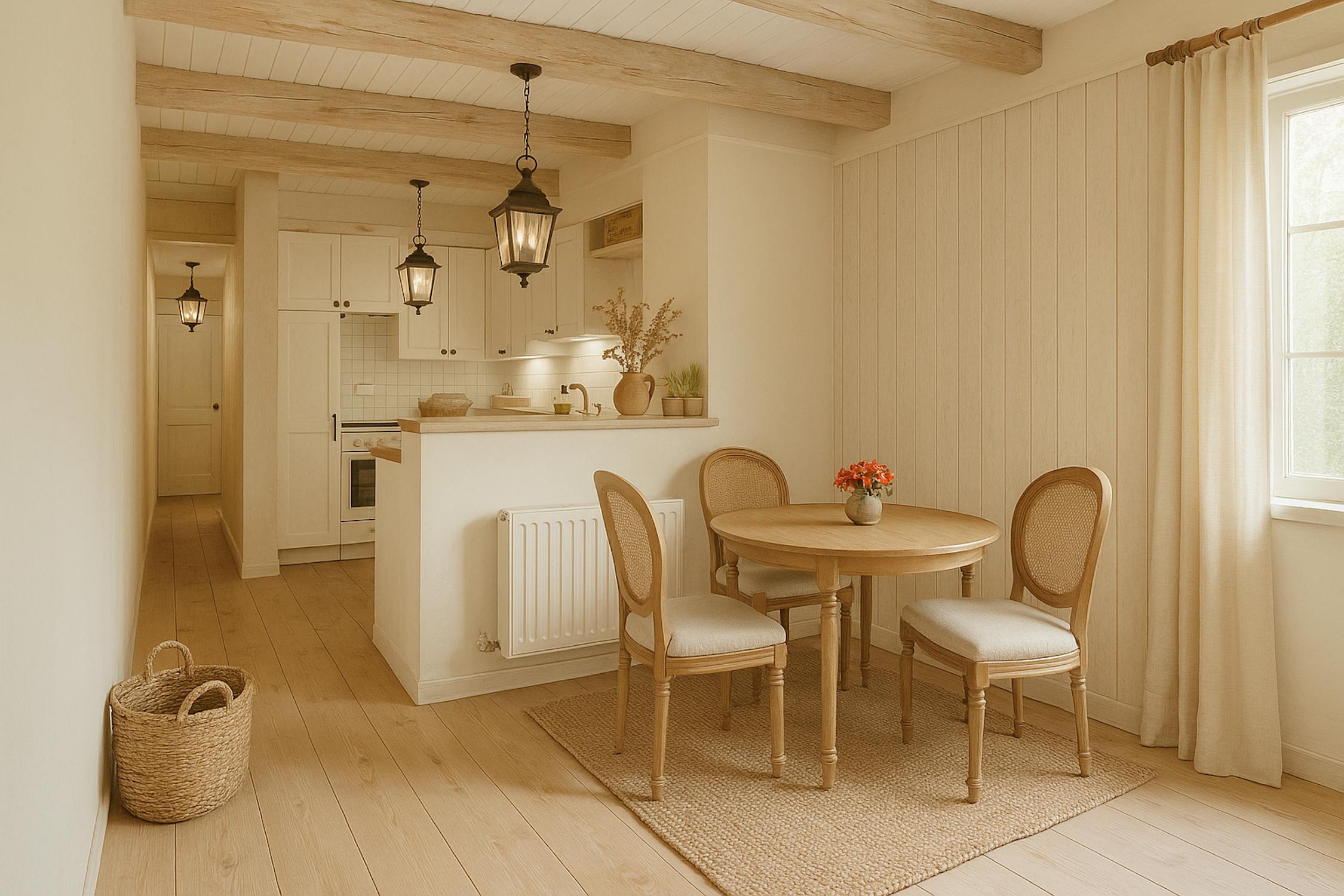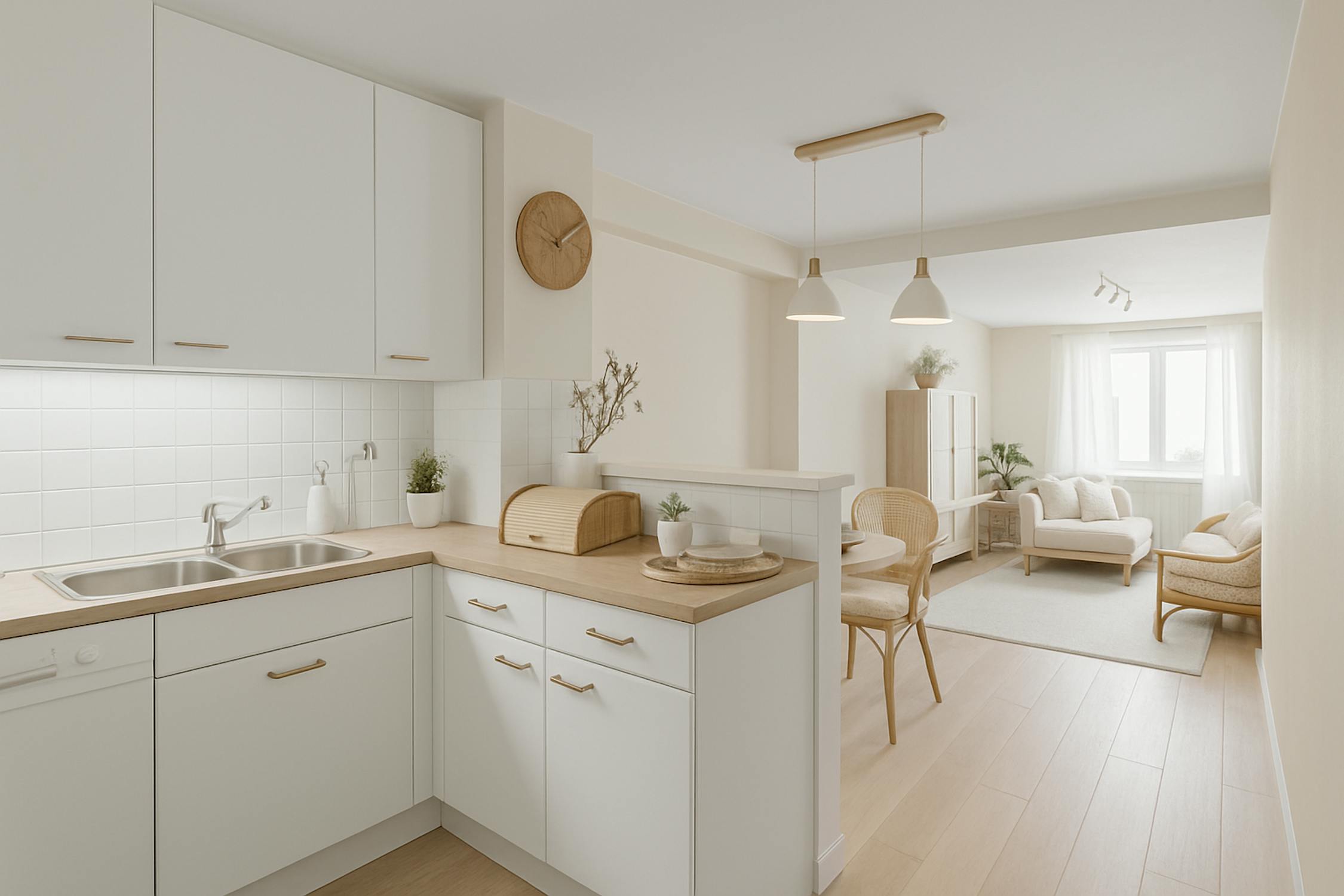 - espace de vie lumineux avec salle à manger