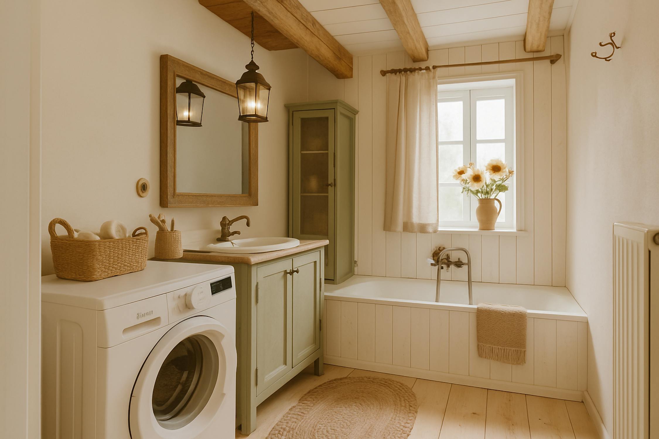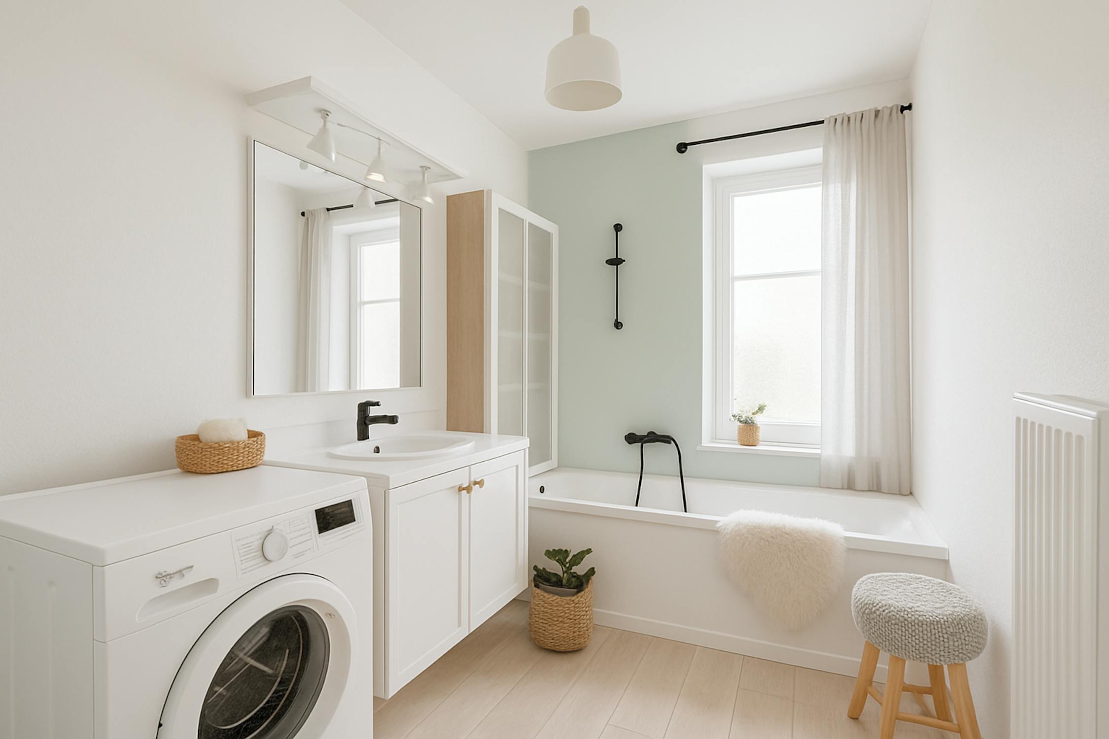 - salle de bain avec lavabo, baignoire et buanderie et raccordement sec