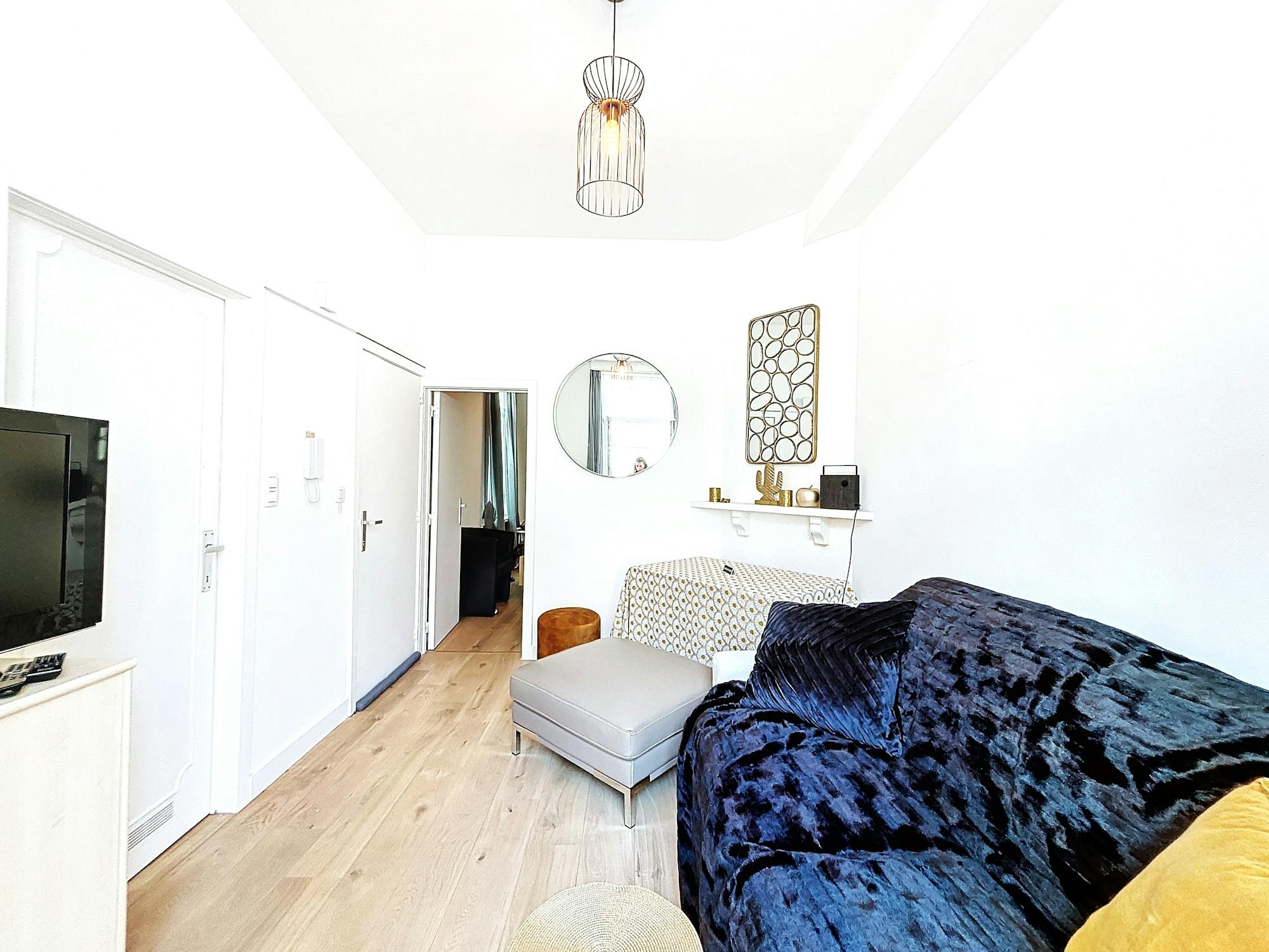 Les hauts plafonds influencent fortement la sensation d'espace. Des fenêtres à hauteur de plafond ont été installées de manière à laisser entrer une énorme quantité de lumière. L'appartement a été entièrement peint en blanc et possède un magnifique parquet.