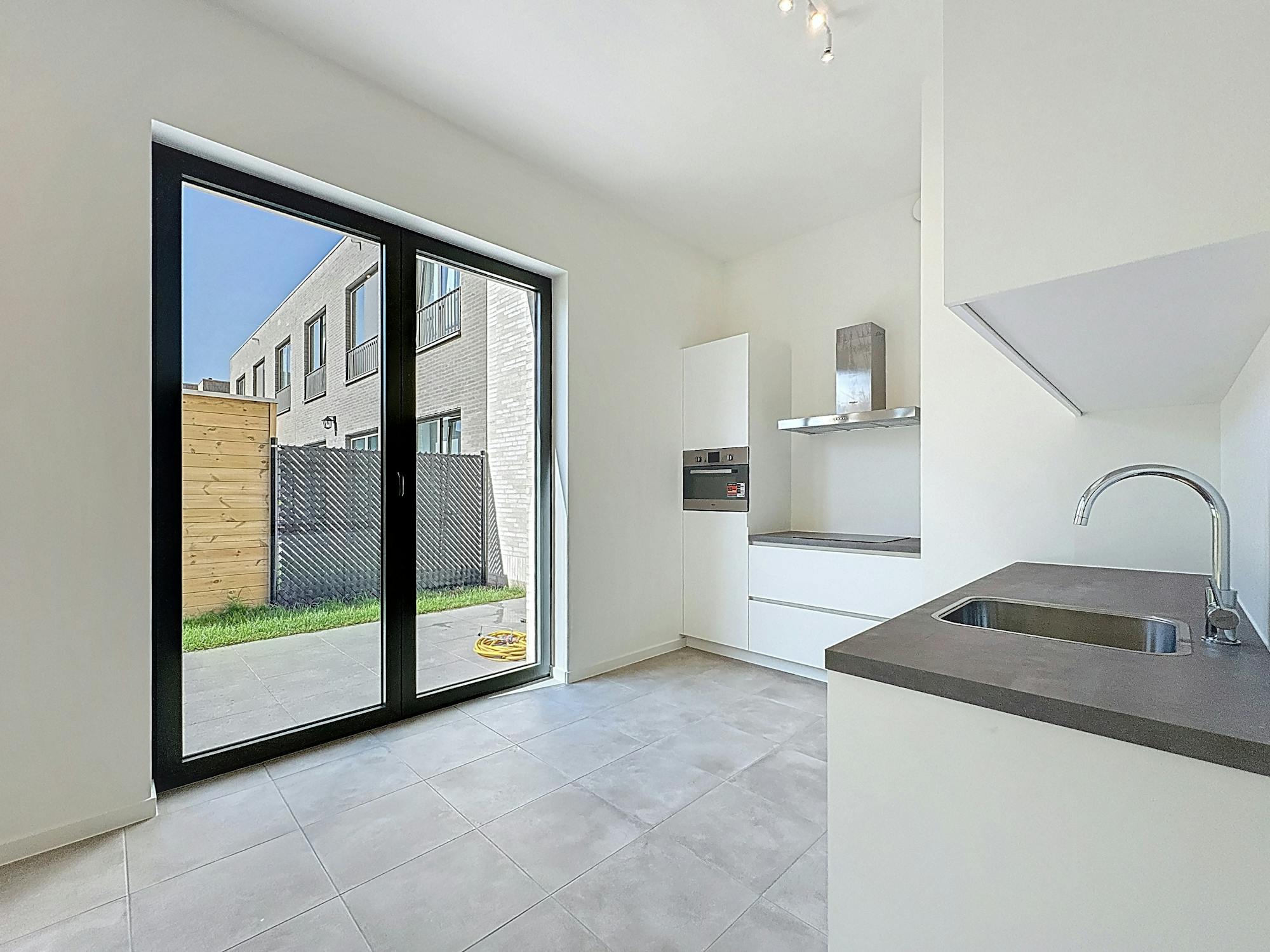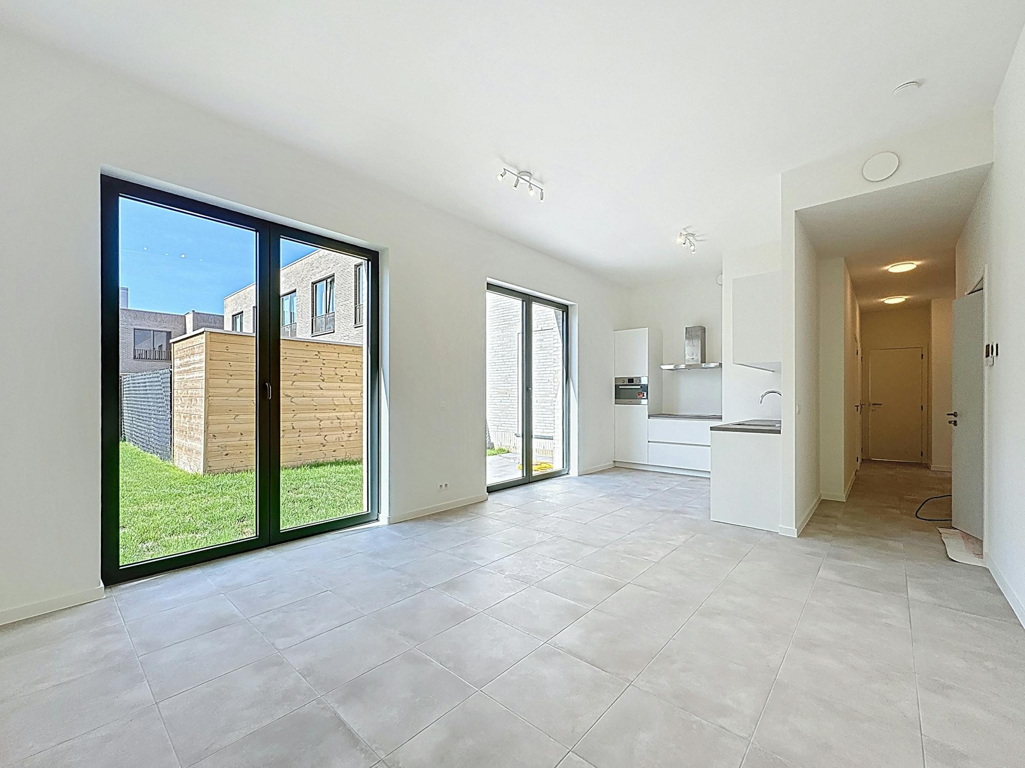 Dit gelijkvloers BEN-appartement met 2 slaapkamers en tuin te huur te Linkeroever vinden we terug op de hoek van de Jan Van Mirlostraat. Dit appartement is gelegen in de hippe Regatta-wijk.
