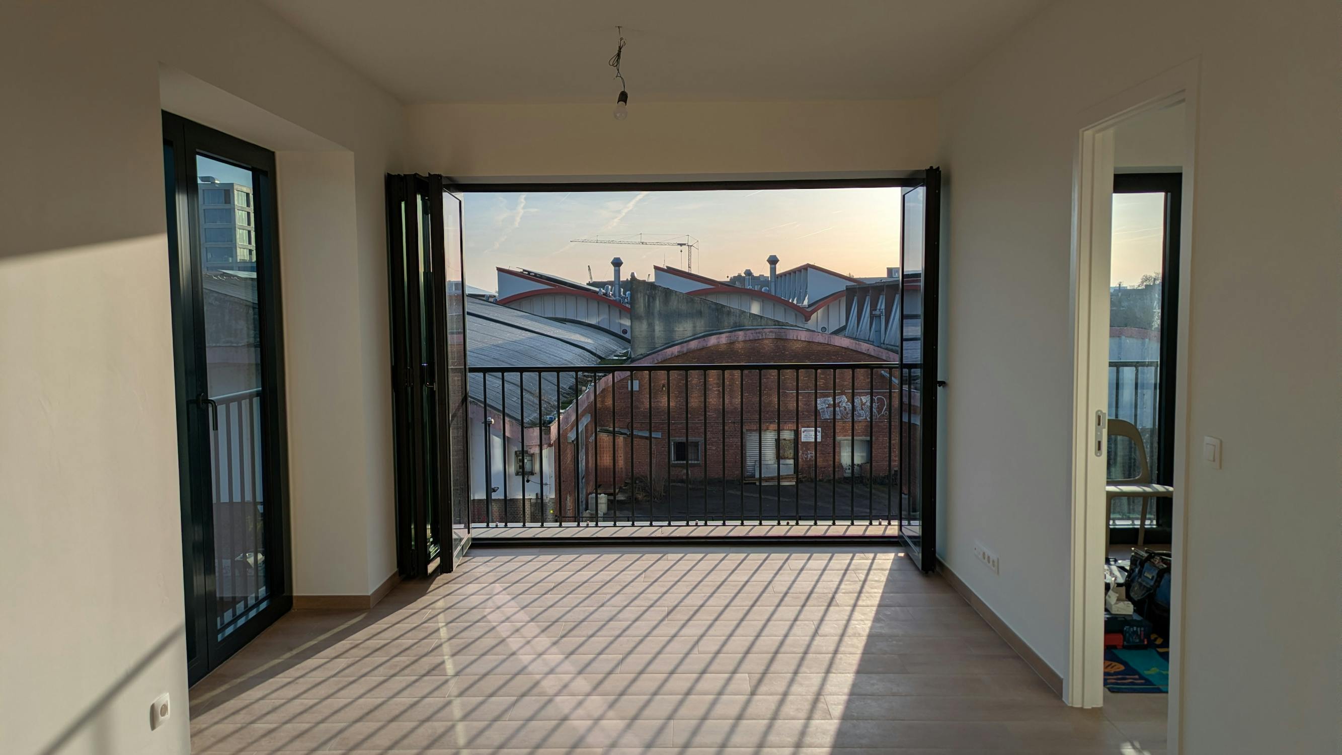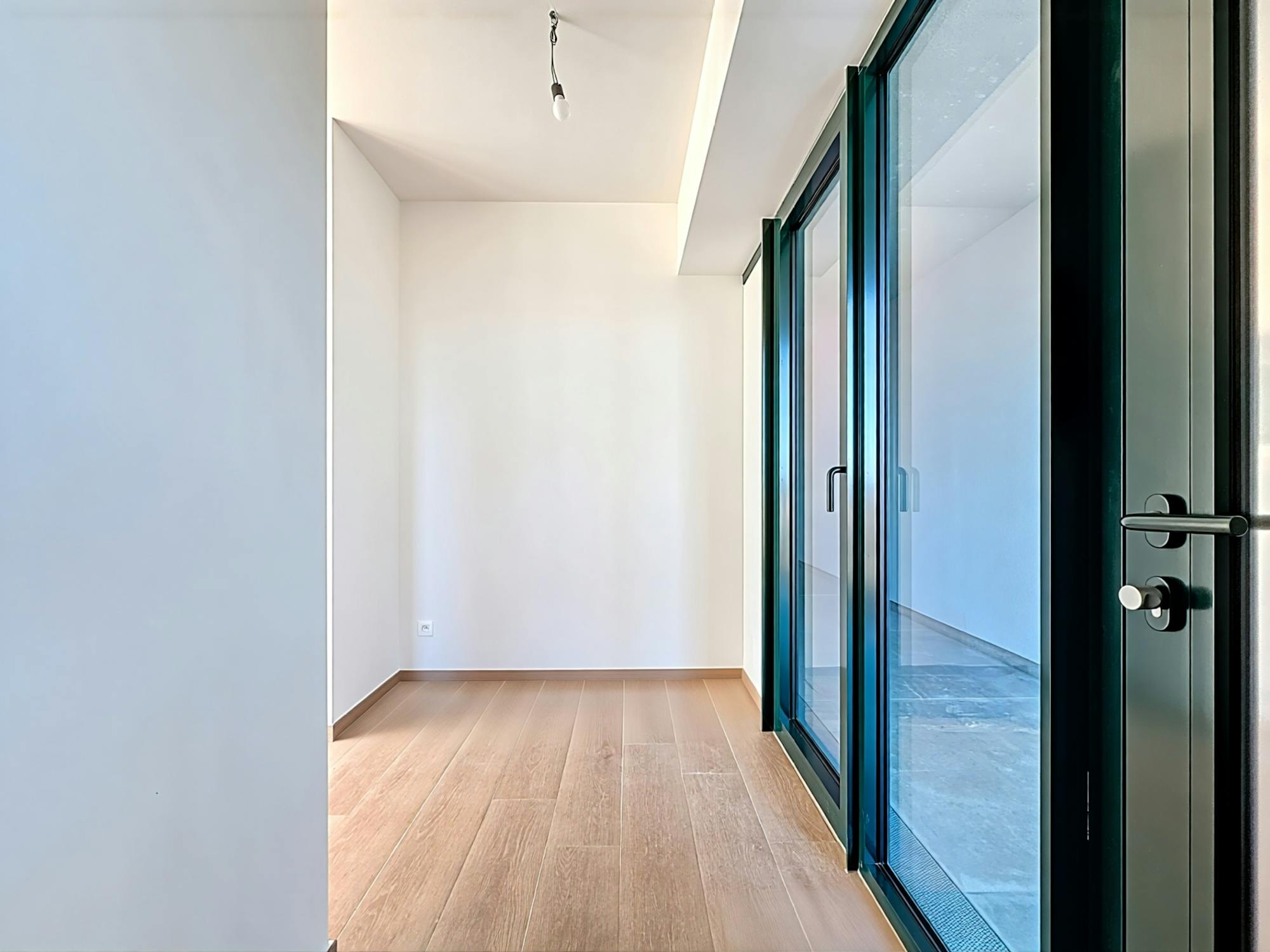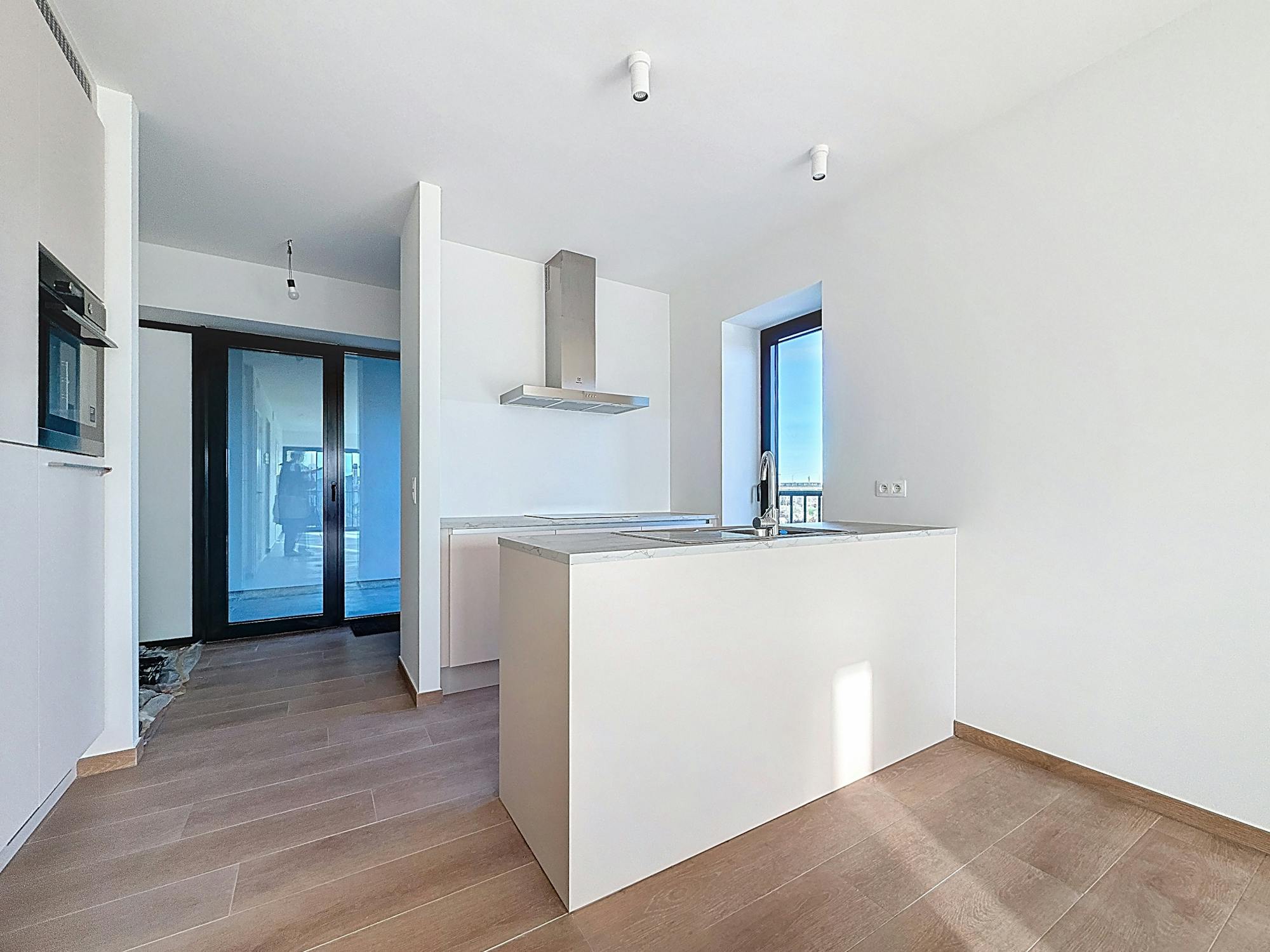 - leefruimte met open keuken. Via een flexibele ramenwand die volledig te openen is, sluit de leefruimte rechtstreeks aan op het balkon. Echt uniek!