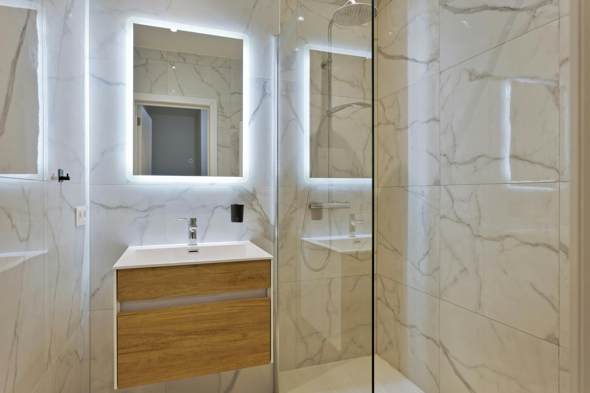 - badkamer met inloopdouche wastafel