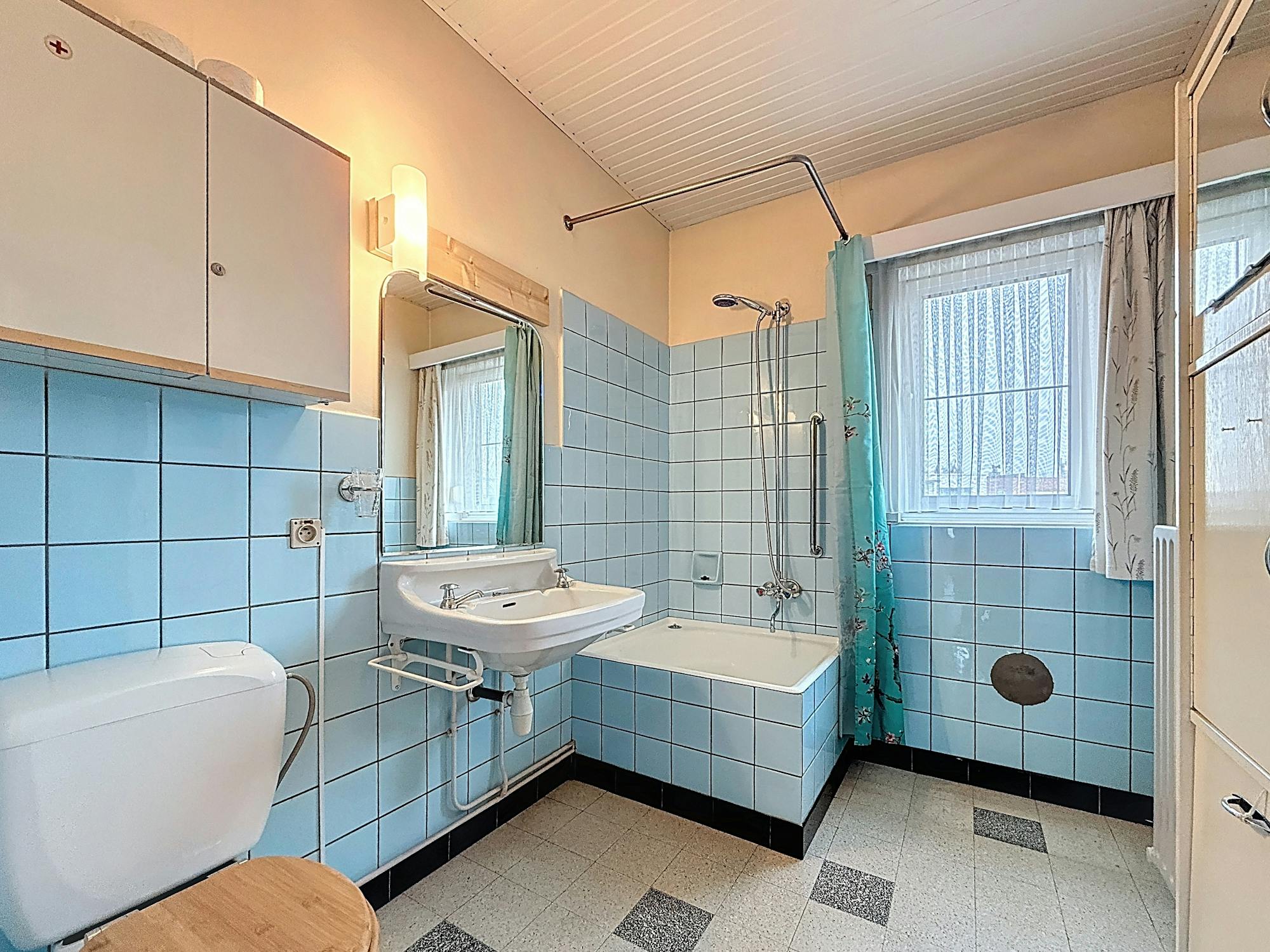 - badkamer (5 m²) voorzien van toilet, wastafel, douche