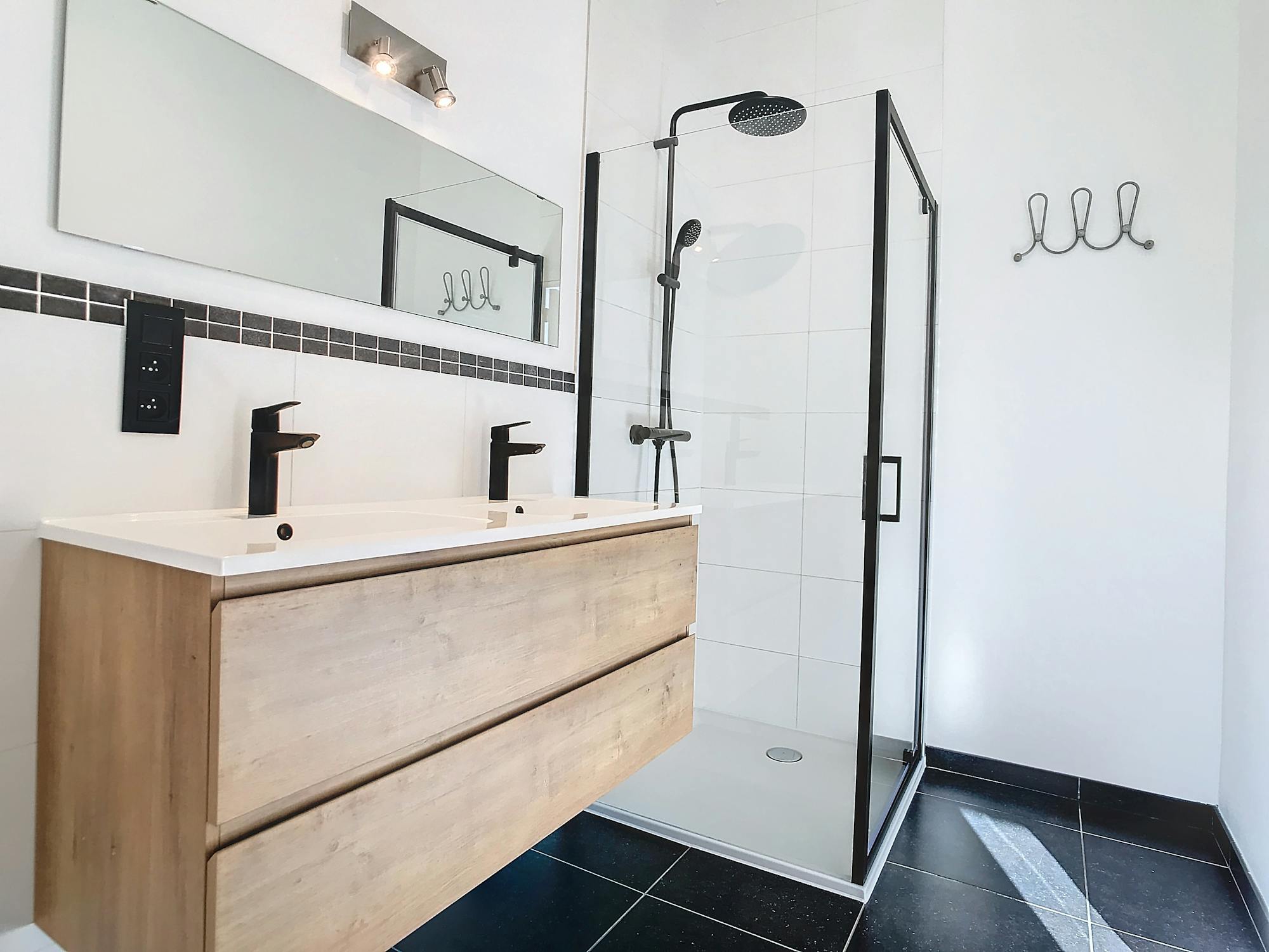 - Badkamer met nieuw douche en lavabomeubel