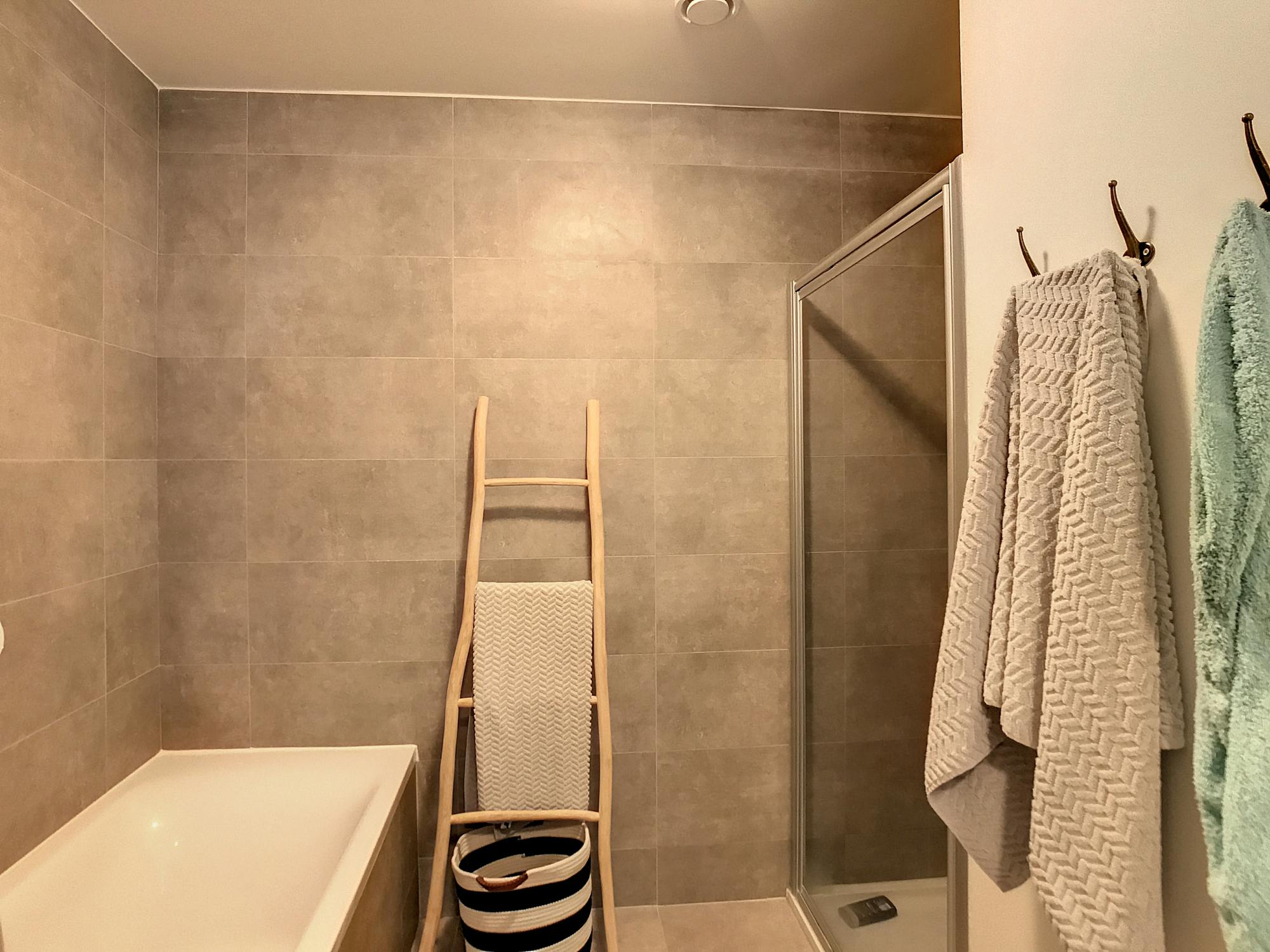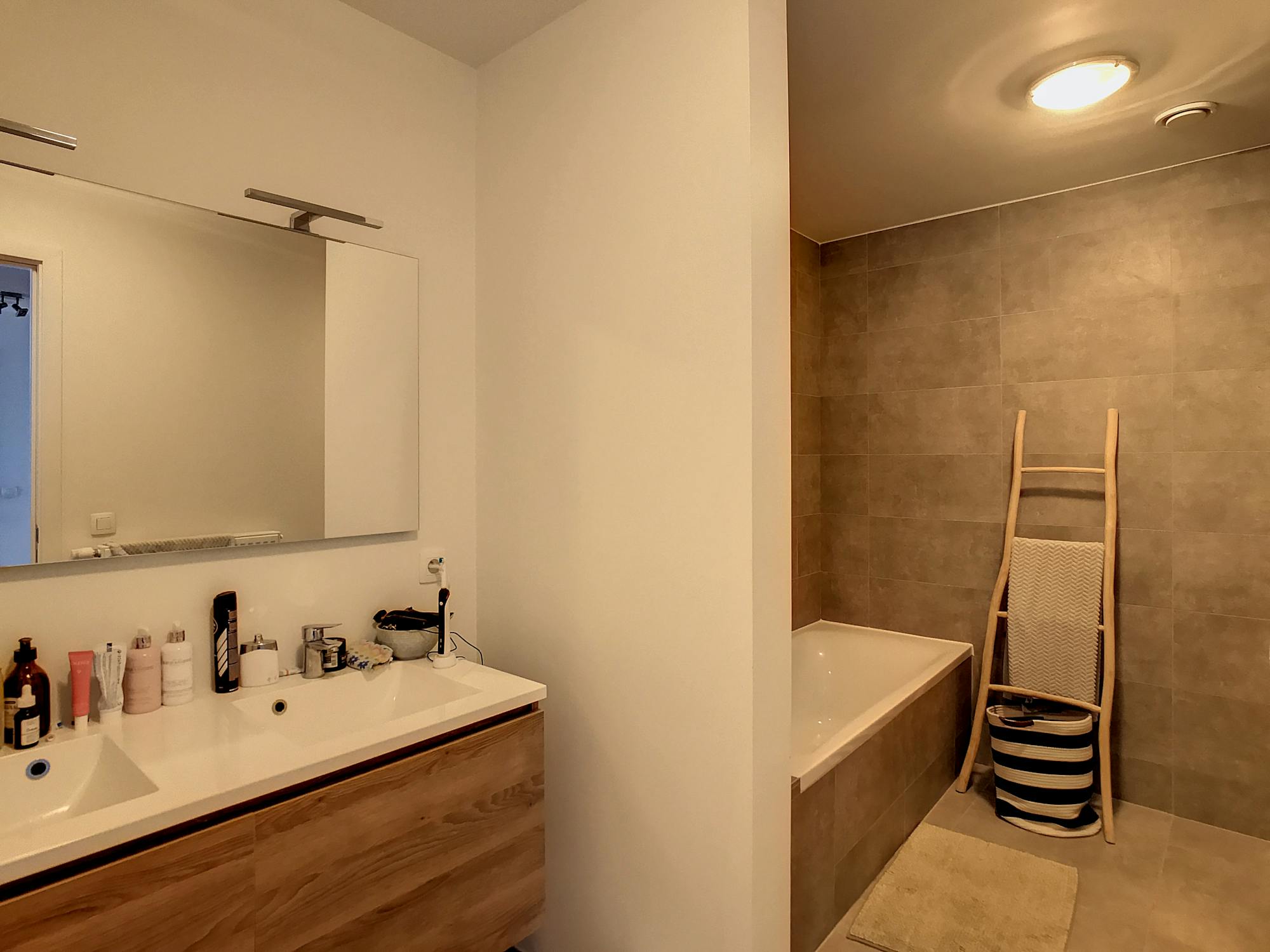 - volledig uitgeruste badkamer met douche, ligbad en dubbele wastafel met meubel (ca.7m²)