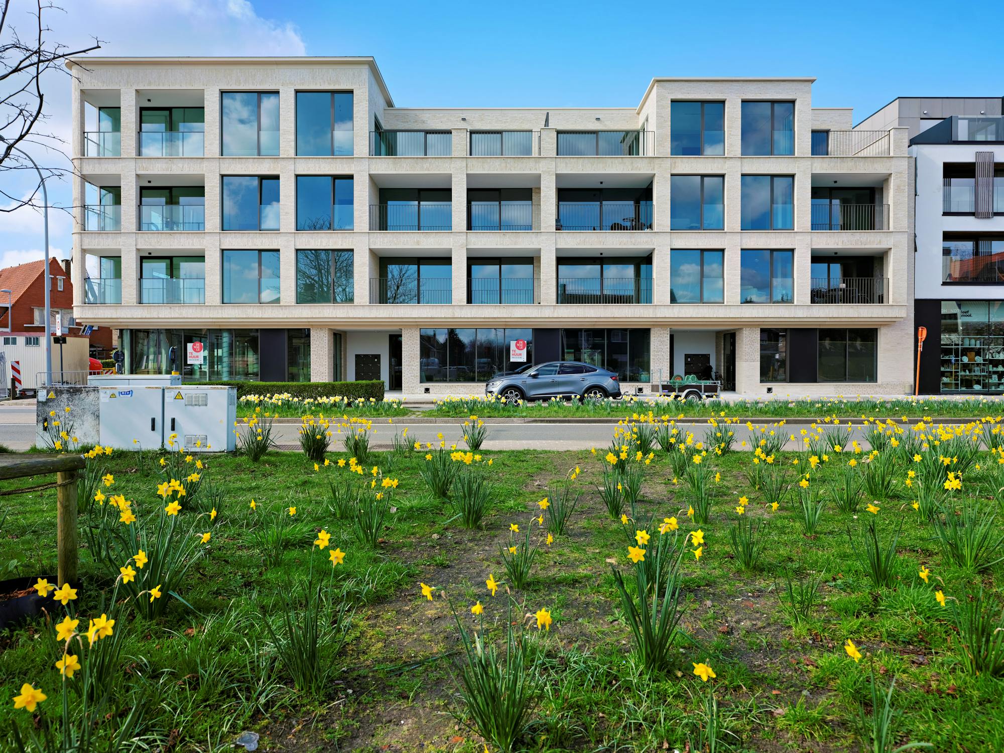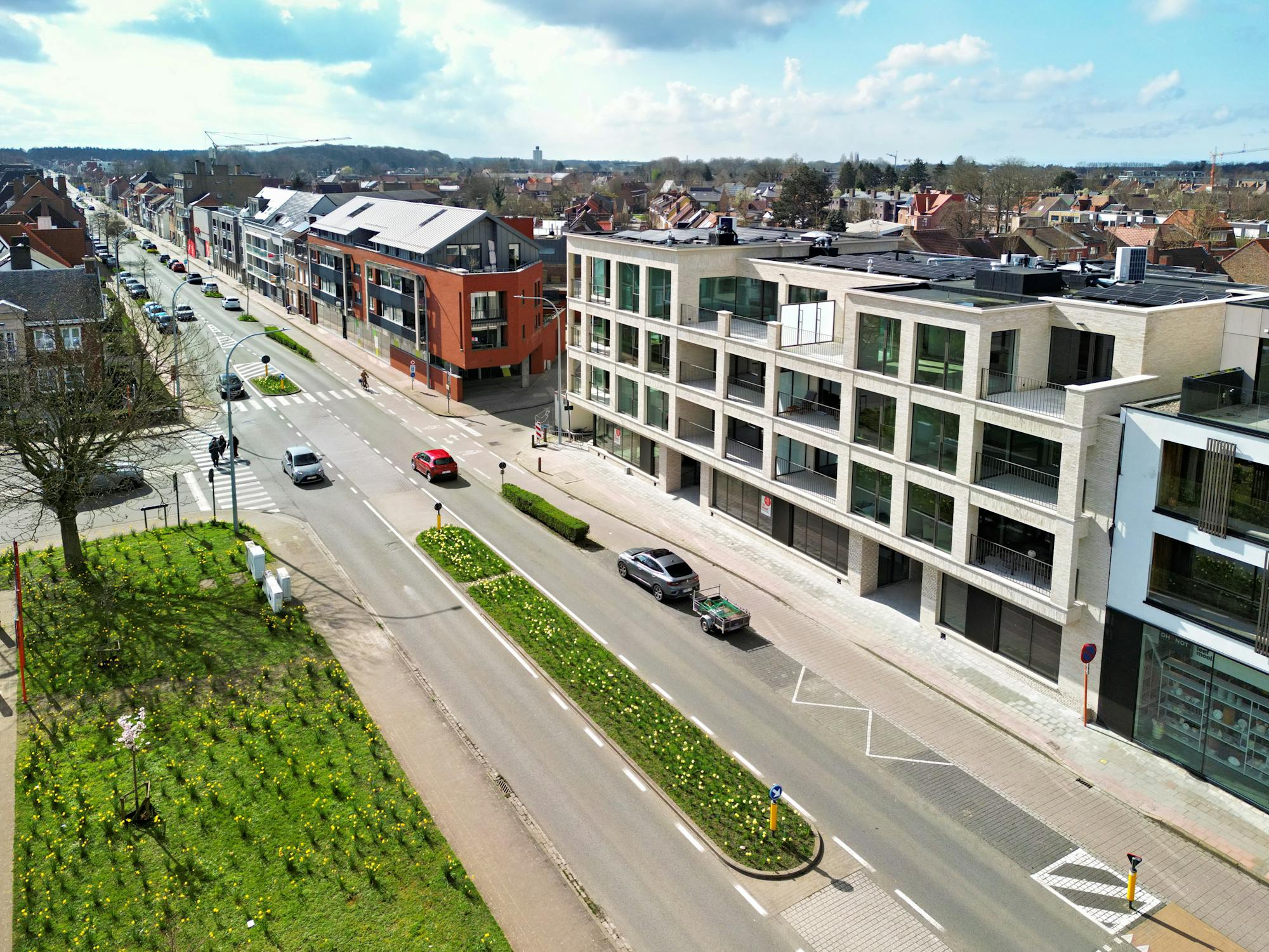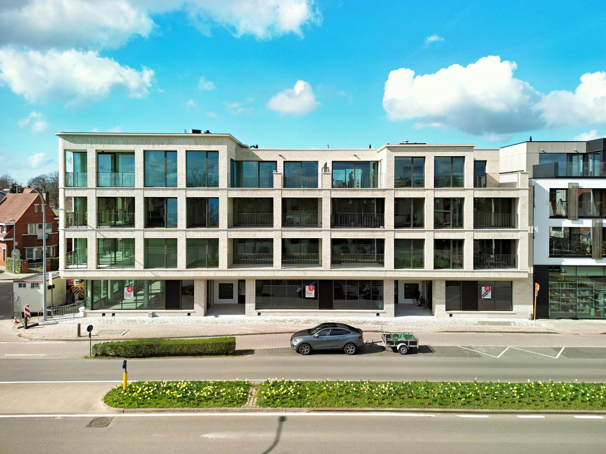 Nieuwbouw handelspanden (564 m²) op absolute toplocatie. Kan in totaliteit of gecompartimenteerd gehuurd worden.