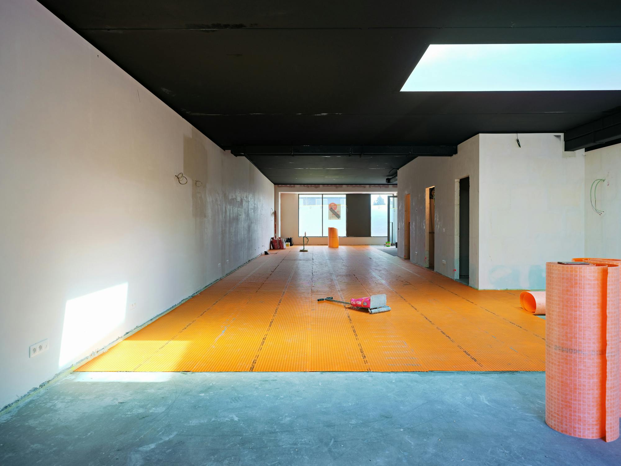 Afwerking: Deze huurprijzen zijn inclusief de warmtepompen, chape, vloerverwarming, vloermatkaders, ventilatie, elektrische stopcontacten, datacontacten, kitchenette, en sanitair.