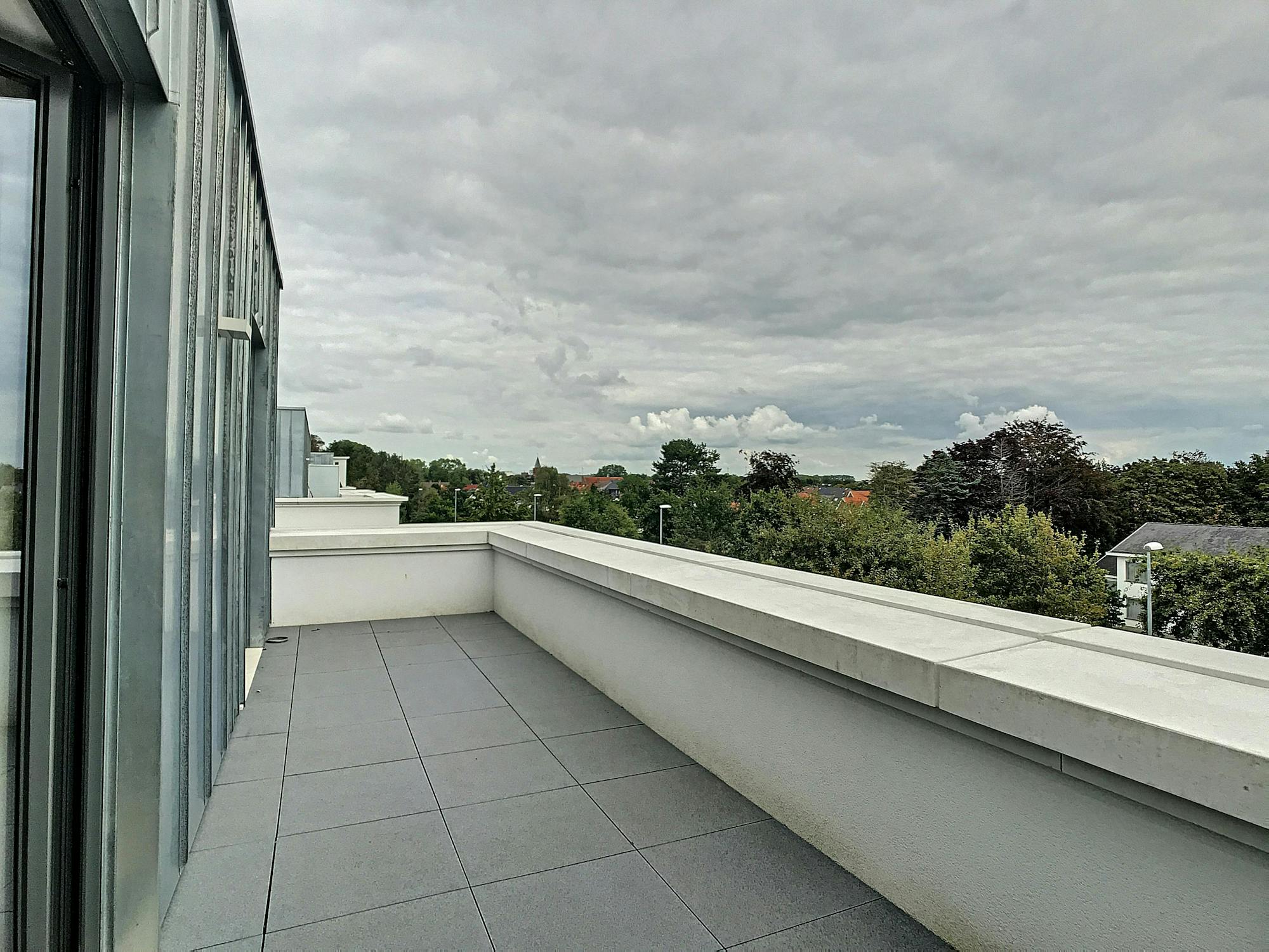 3°V: inkomhal (3m²) - living (37m²) met aansluitend de keuken (8m²) voorzien van keramische kookplaat, dampkap, oven, frigo met diepvriesvak, vaatwas, dubbele spoelbak - berging (3m²) met aansluiting voor wasmachine - apart toilet - badkamer (5m²) met douche, dubbele lavabo - 2 slaapkamers (12,75m² - 12,5m²) - terras 1 (14m²) - terras 2 (10,5m²)