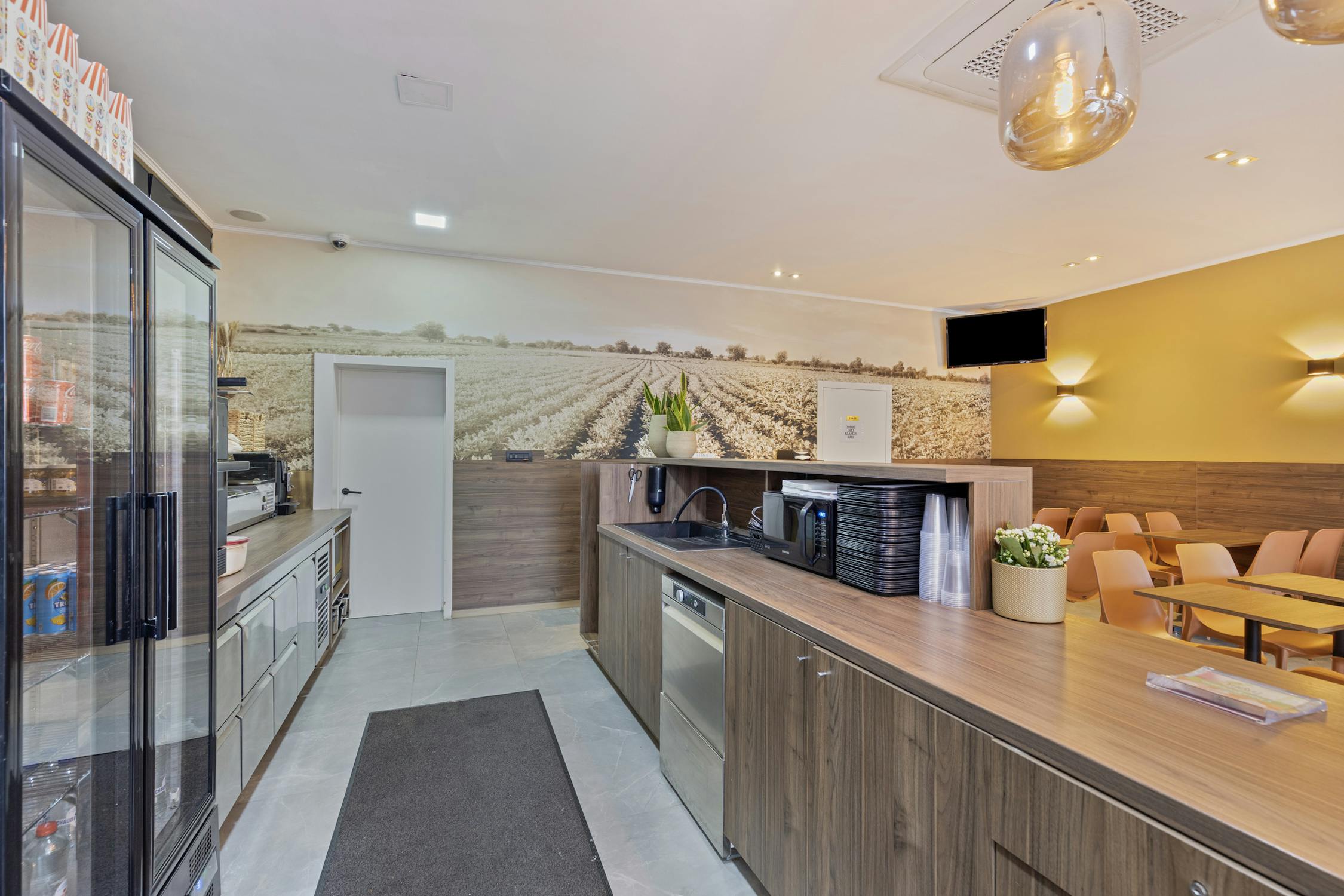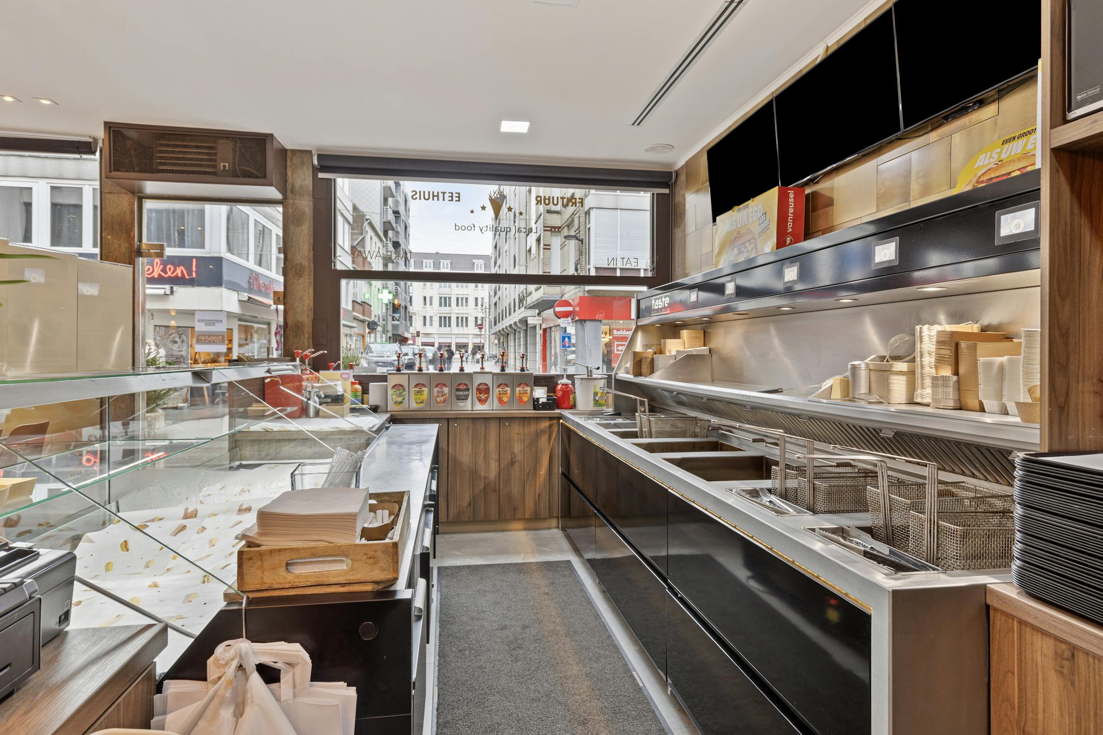 Het handelspand bevat de volledig geïnstalleerde frituur en zitplaatsen.