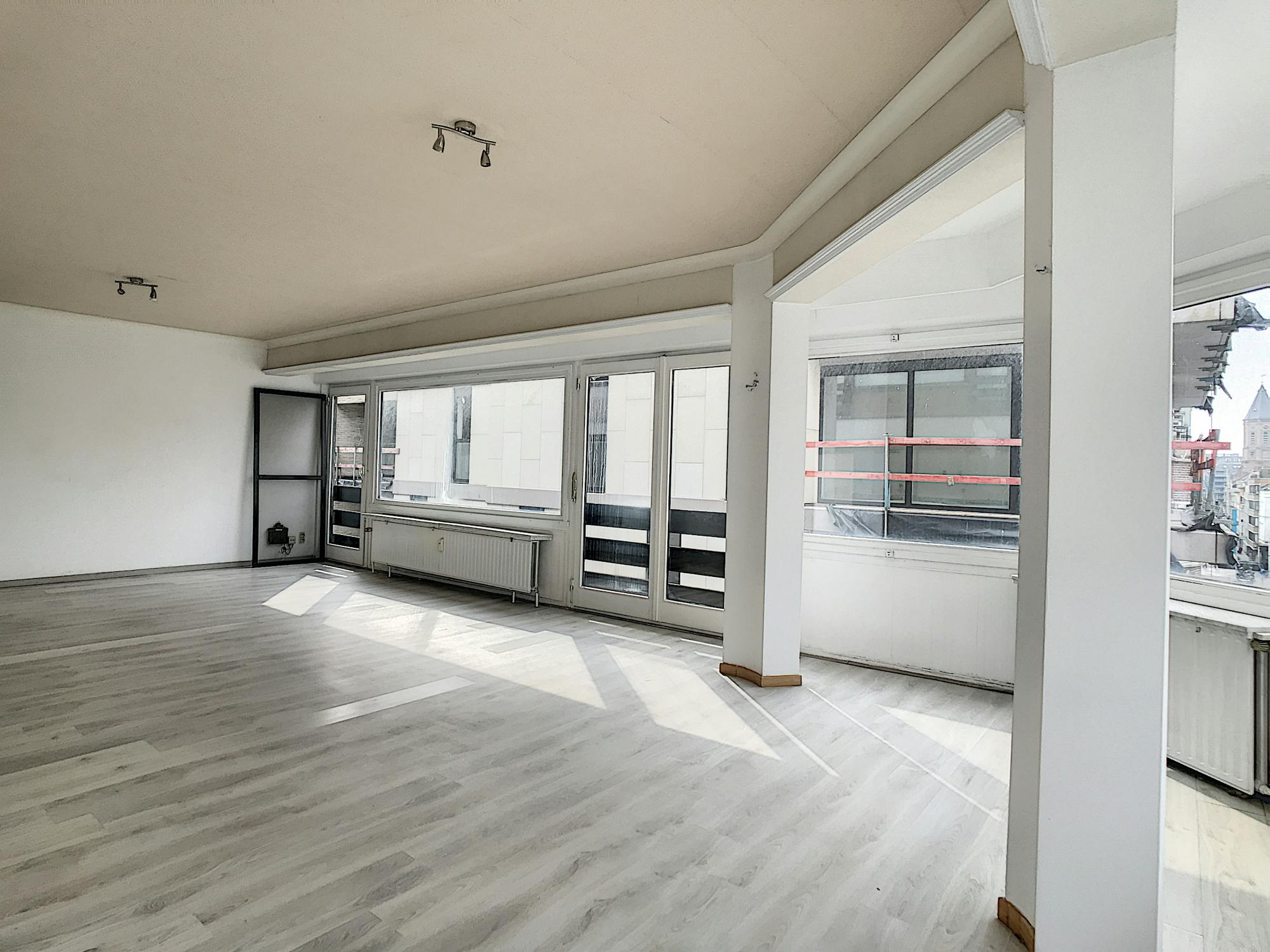 Lichtrijk hoekappartement op het Wapenplein. Geniet van zon, grote glaspartijen en een schitterend zicht. Met aparte keuken, vernieuwde toestellen en badkamer met bad.