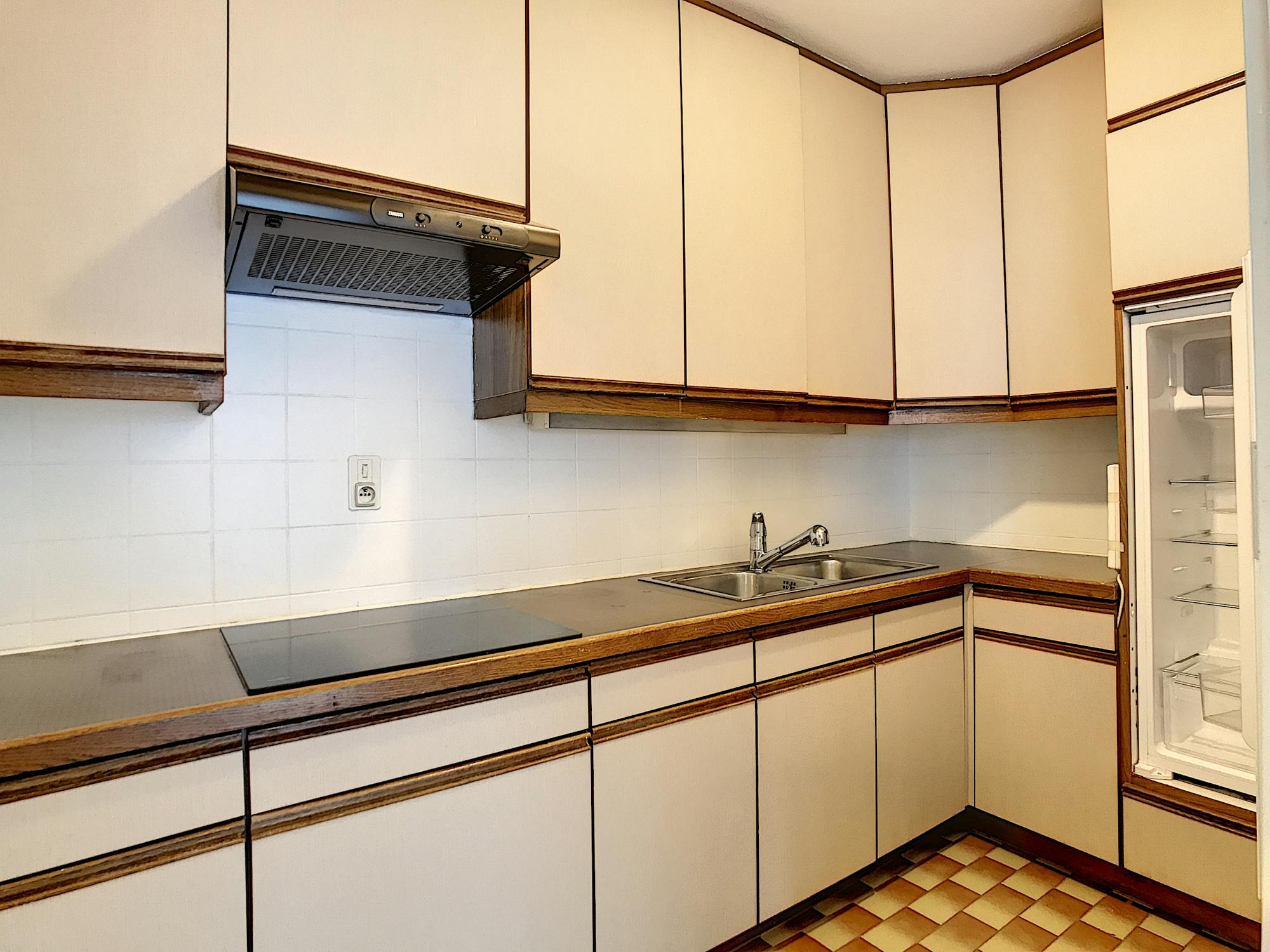 *aparte keuken: ingericht met vernieuwde koelkast en kookplaat