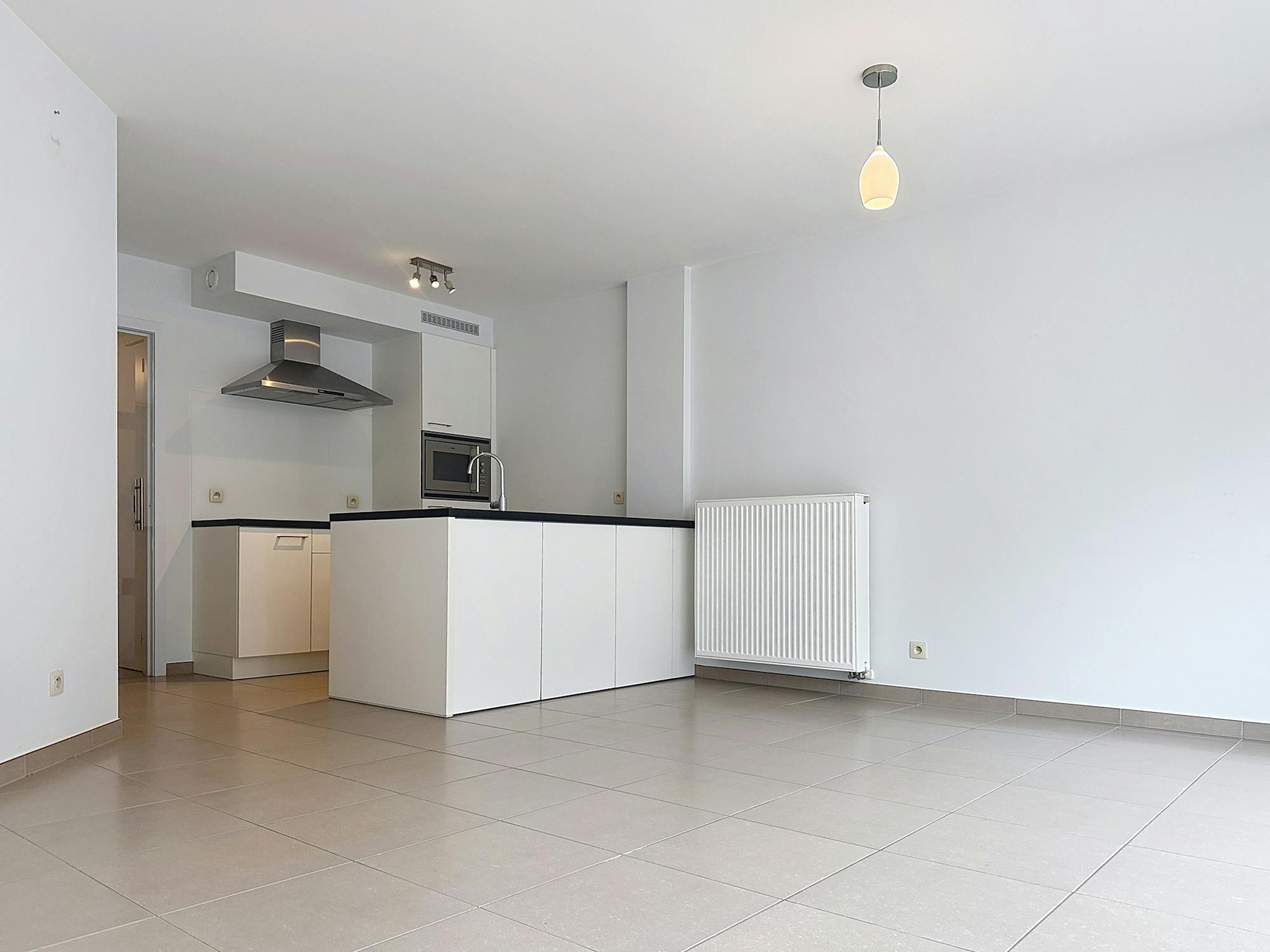 *lichtrijke leefruimte met een moderne open keuken, volledig uitgerust met een keramische kookplaat, vaatwasmachine, combi-oven en dubbele lavabo.