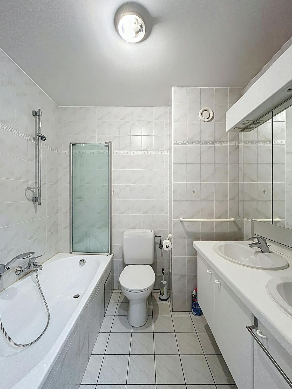 - badkamer met bad/douche, toilet en dubbele lavabo