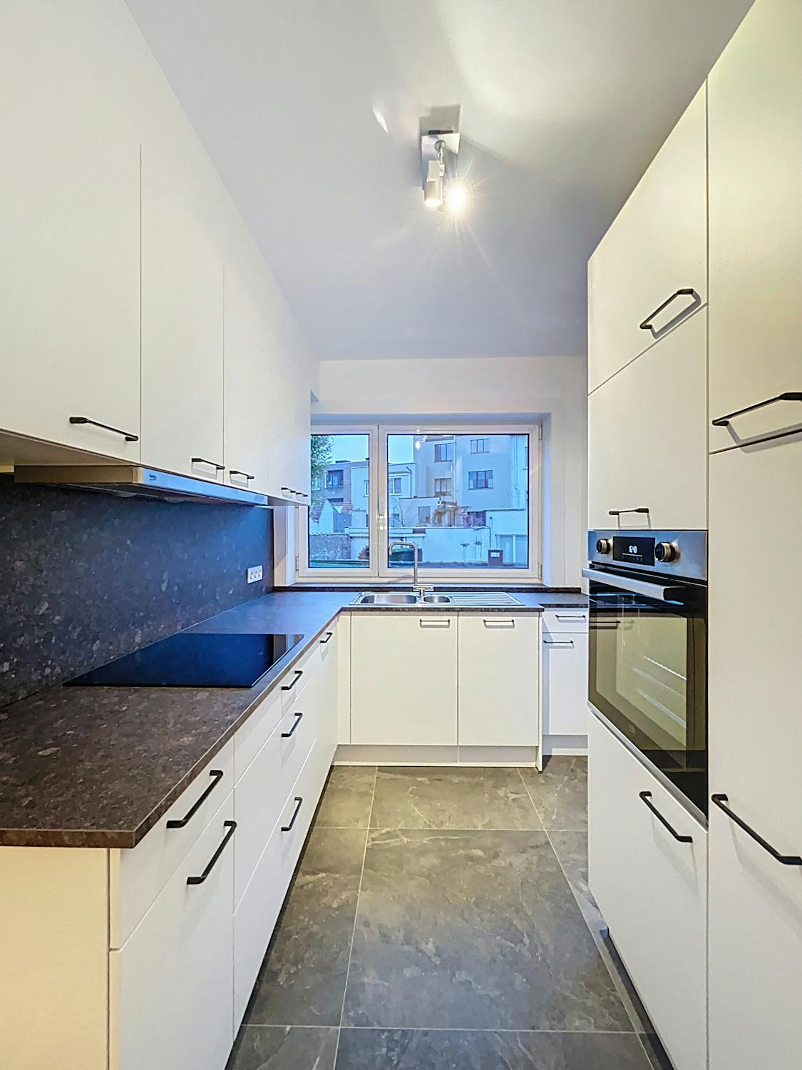 - keuken voorzien van vaatwas, kookplaat, frigo met vriesfunctie, oven en dampkap