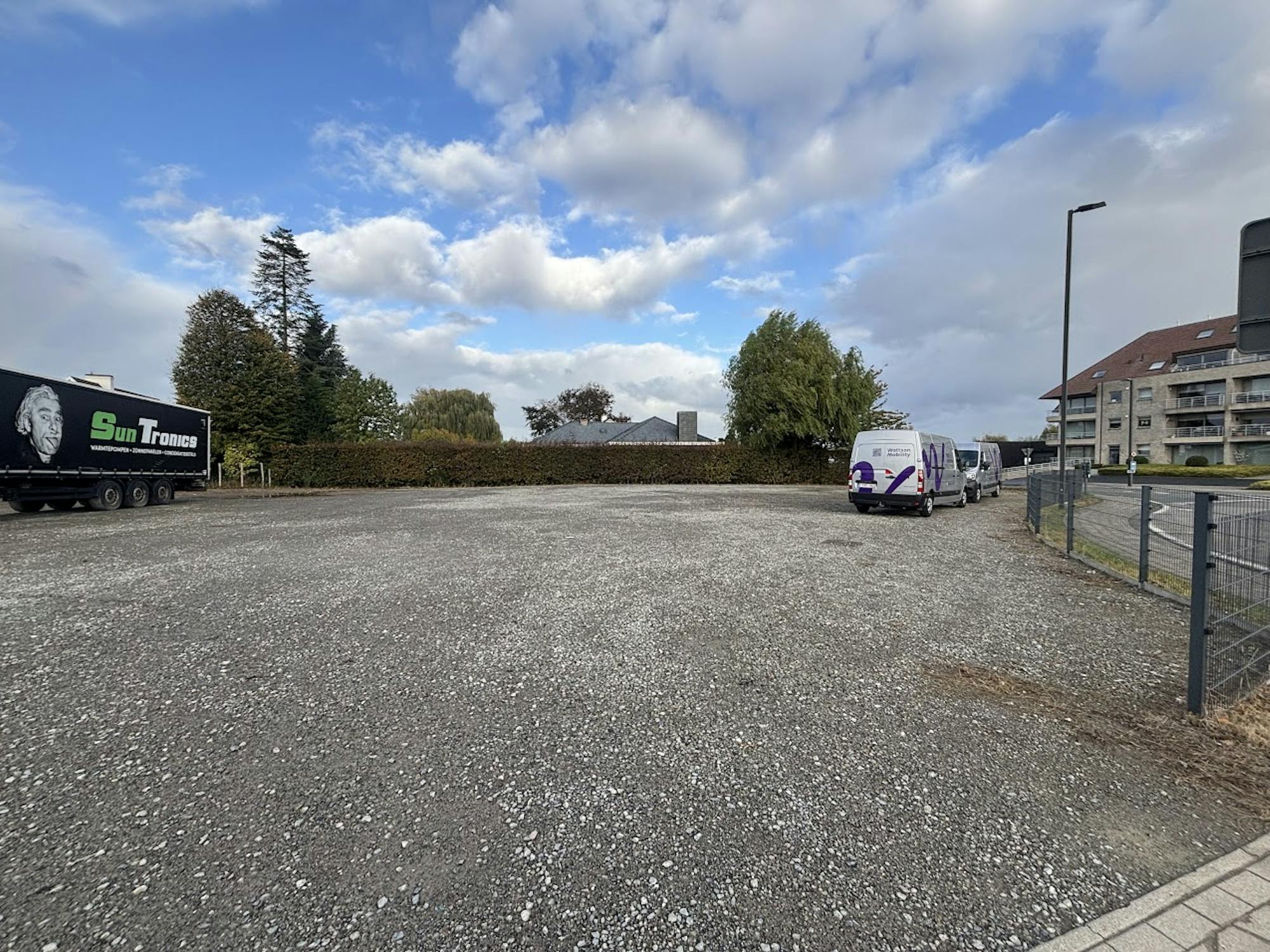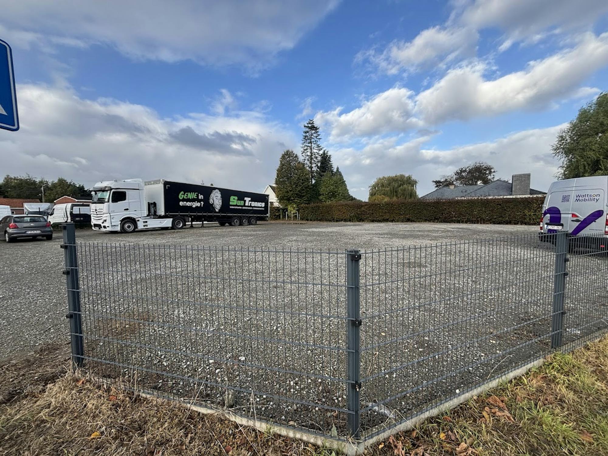 Ruim stuk grond van ca. 950 m² te koop in Anzegem, perfect geschikt voor opslag, stalling of parkeren van vrachtwagens, machines of materiaal.