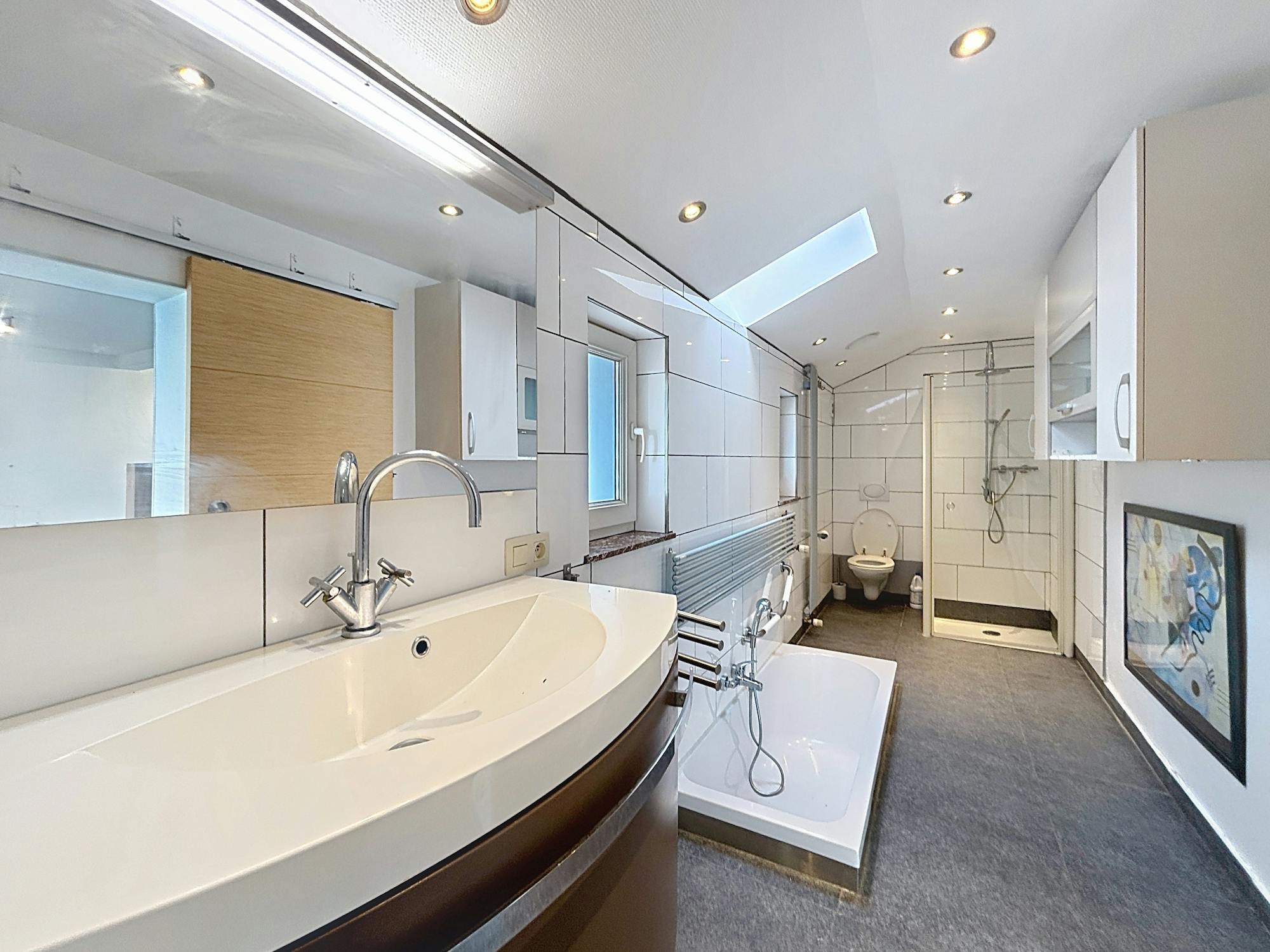- Badkamer met ligbad, inloopdouche, wasmeubel en apart toilet;