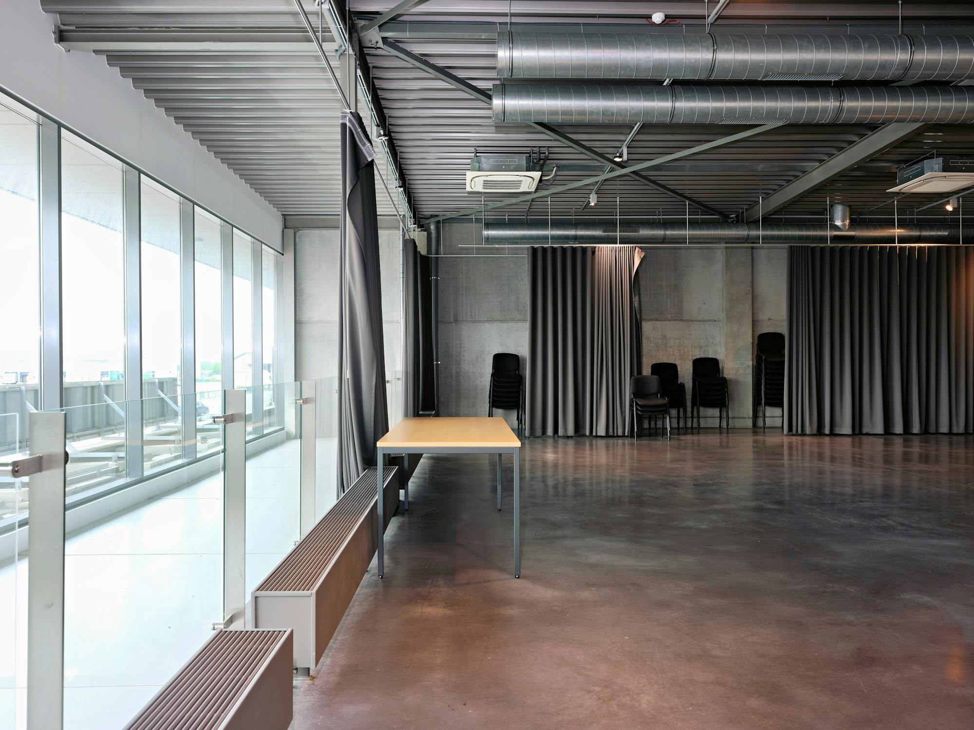 - aanwezigheid van verlichting, airco, ventilatie, ...