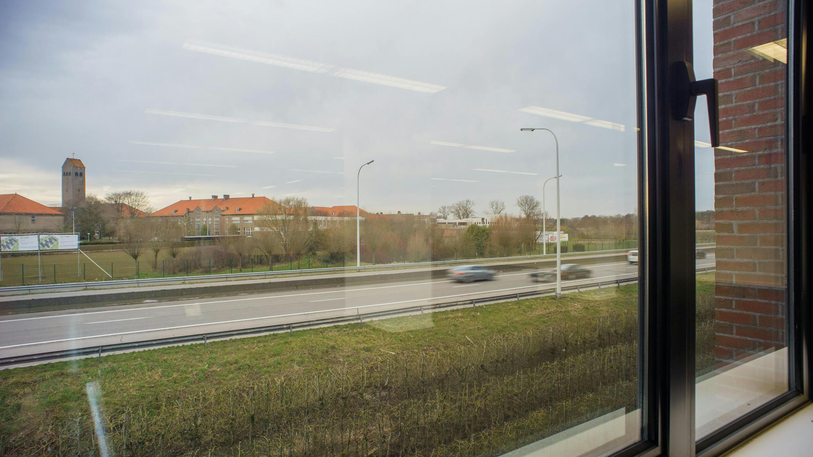 Deze bureelruimte maakt deel uit van het Clintonpark en is goed zichtbaar vanaf de grote Ring van Roeselare.