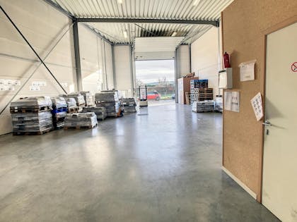 Loods van ca. 195 m² voorzien van bureel van ca. 15 m² en sanitair nabij op-en afrit