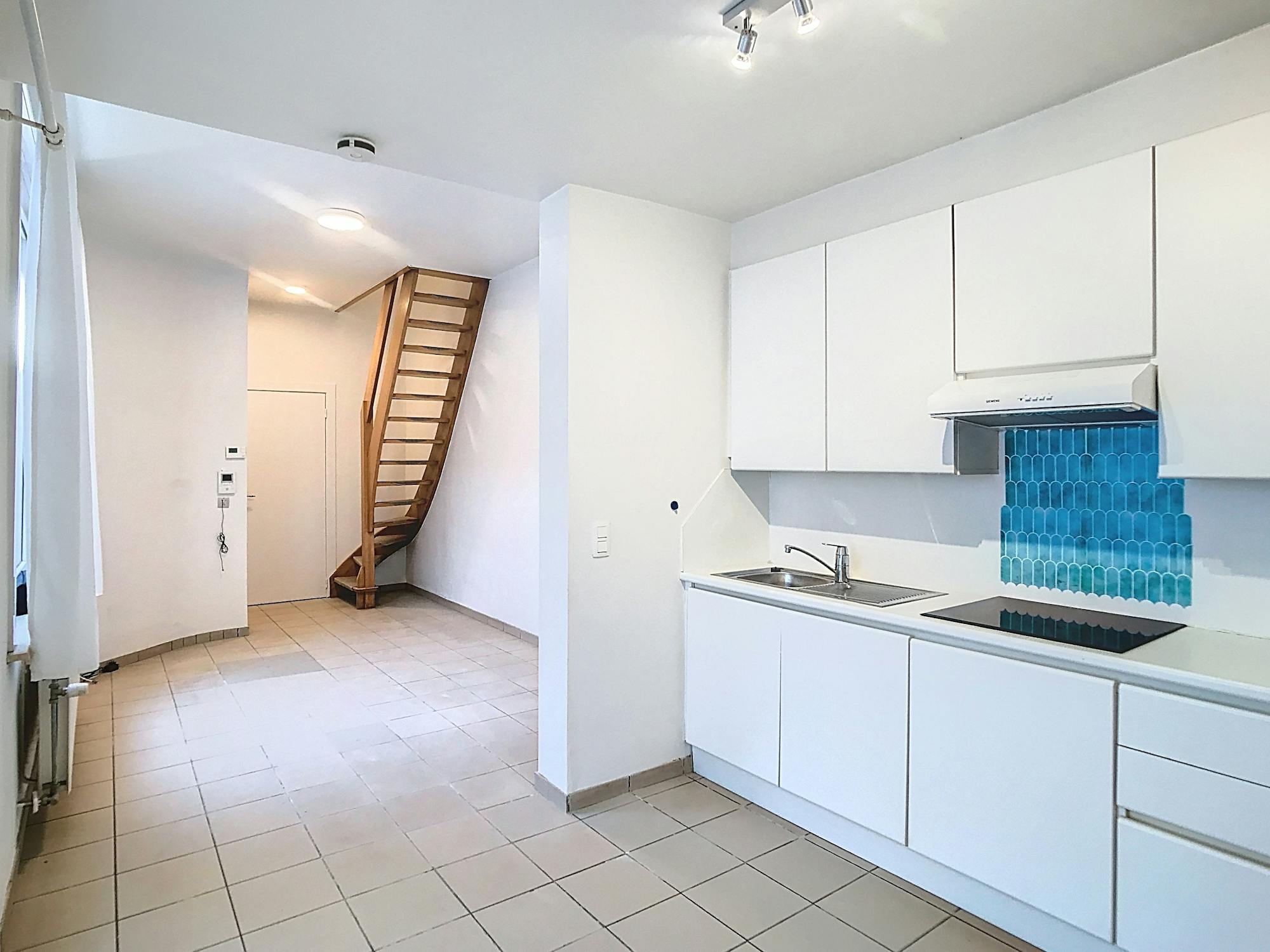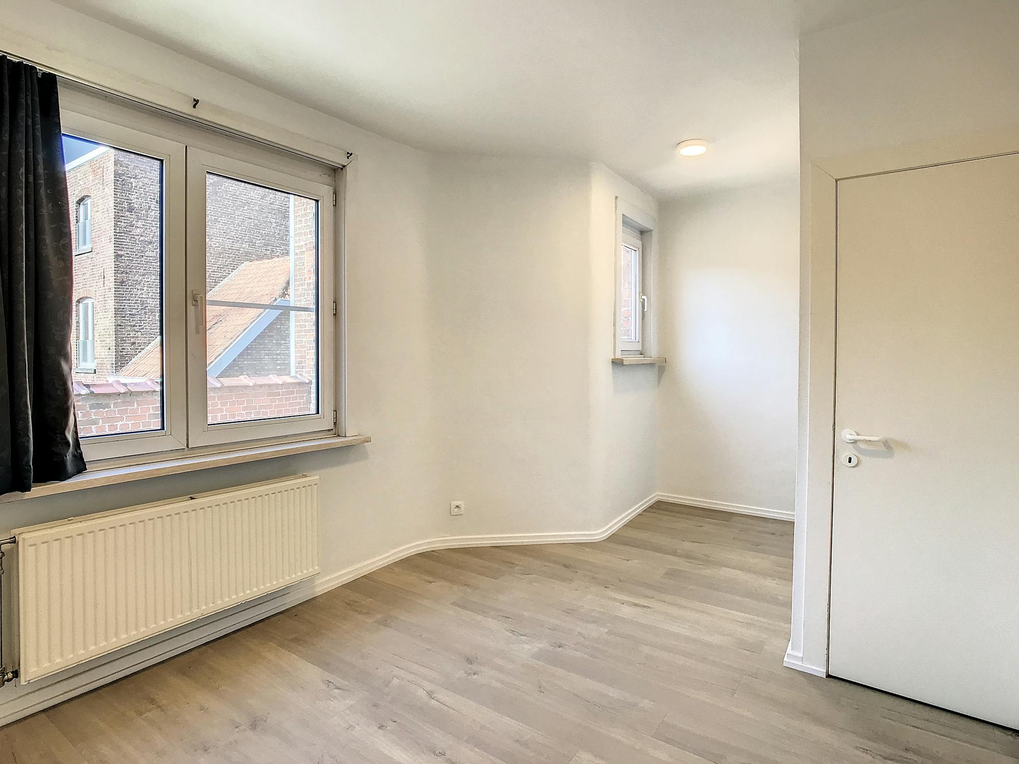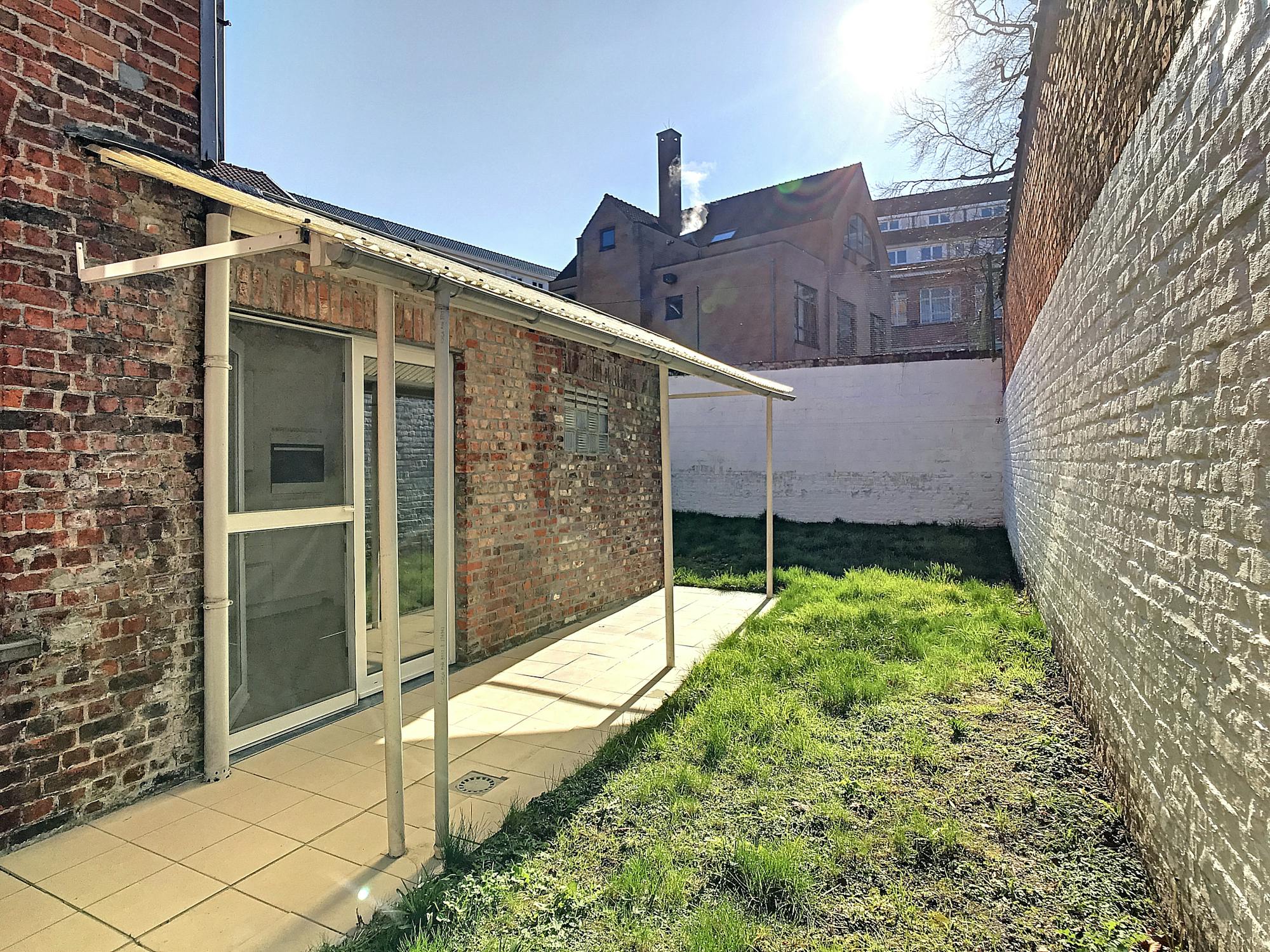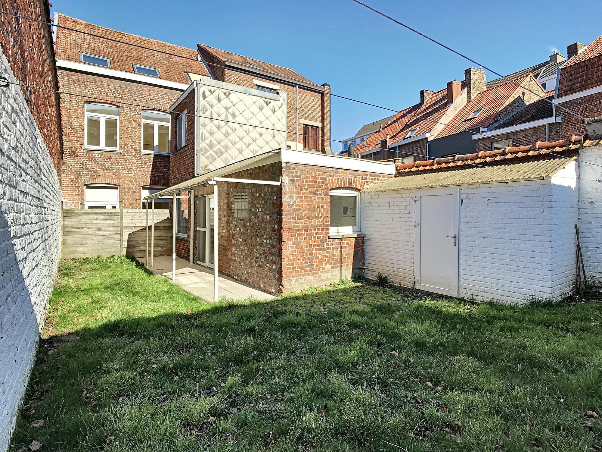 Duplex-appartement met 1 slaapkamer en zuid-gerichte stadstuin in het centrum van Ieper, nabij het station. Onmiddellijk beschikbaar!