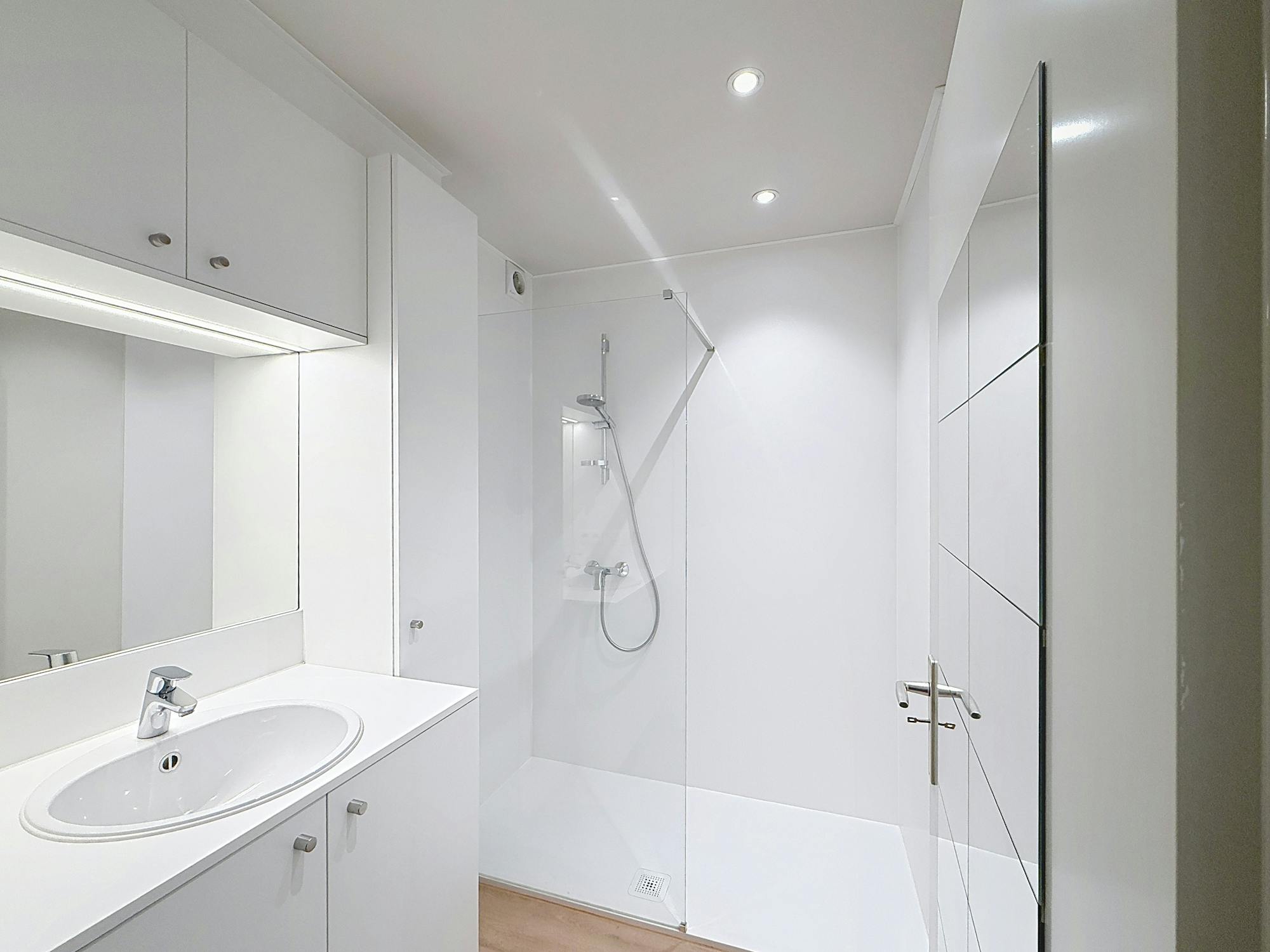 - Badkamer uitgerust met lavabo en douche