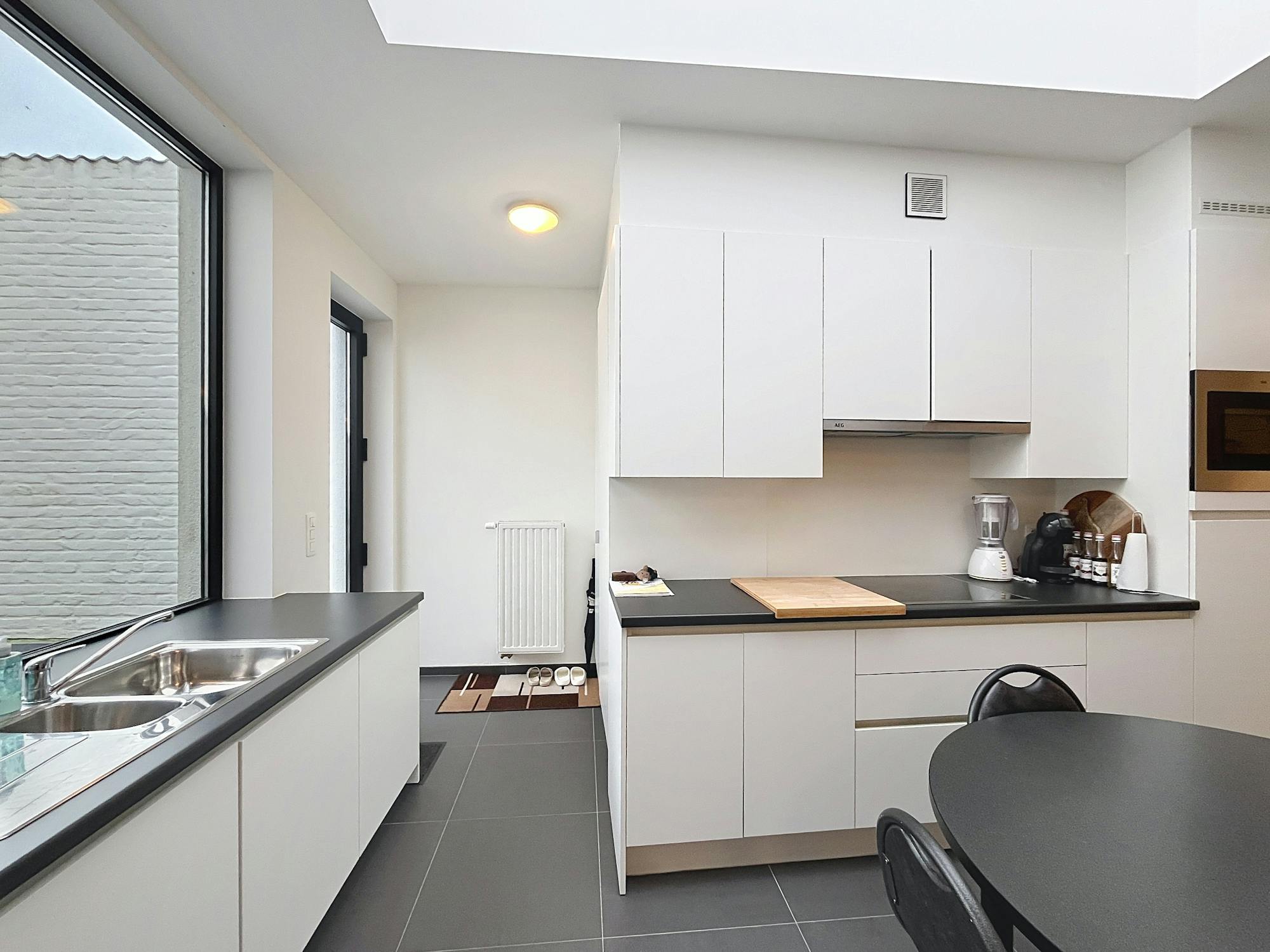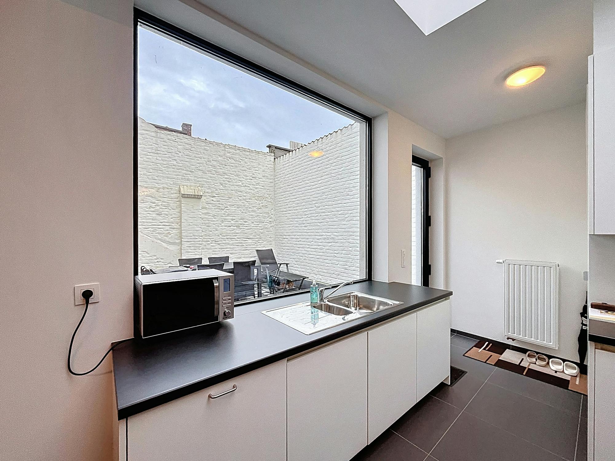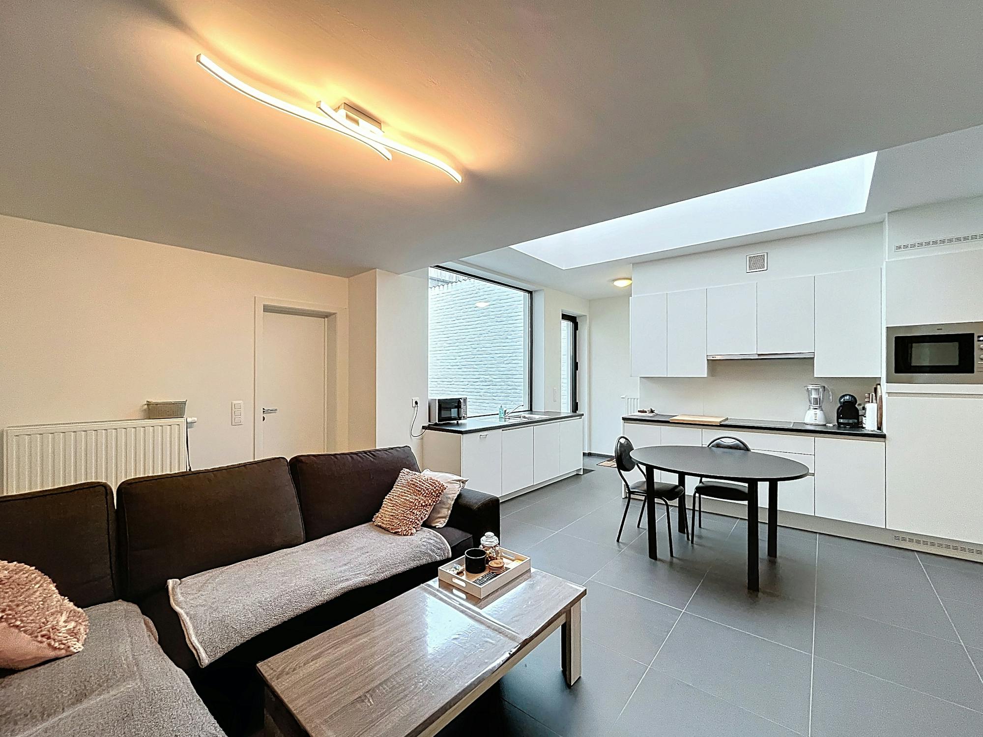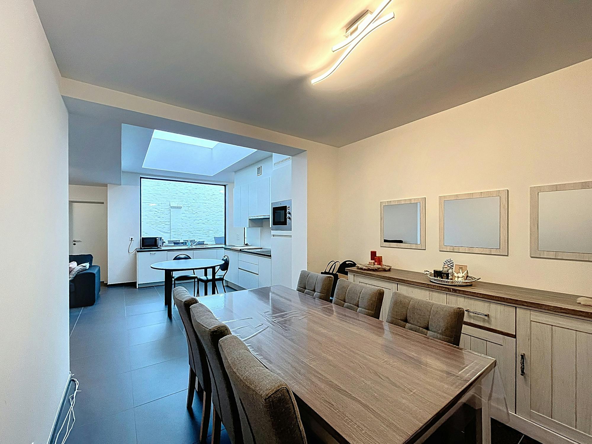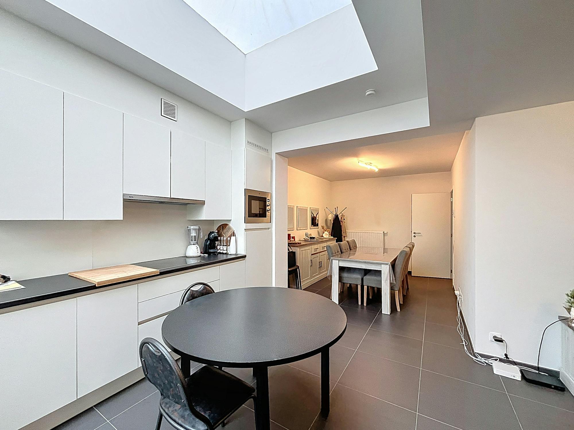 - open keuken uitgerust met een spoelbak, keramische kookplaat met dampkap, frigo, vaatwasser en oven