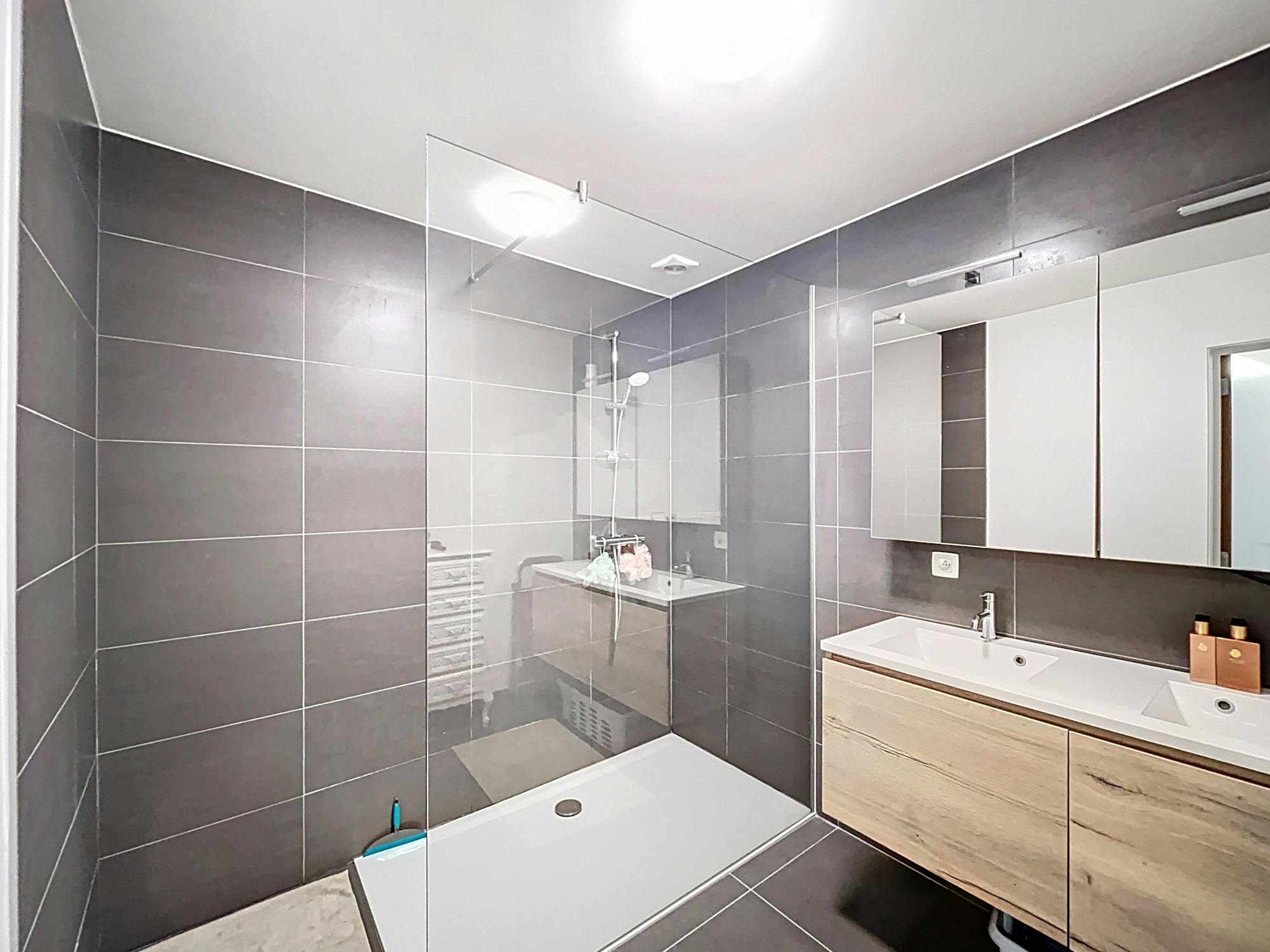 - badkamer voorzien van een inloopdouche en dubbele lavabo