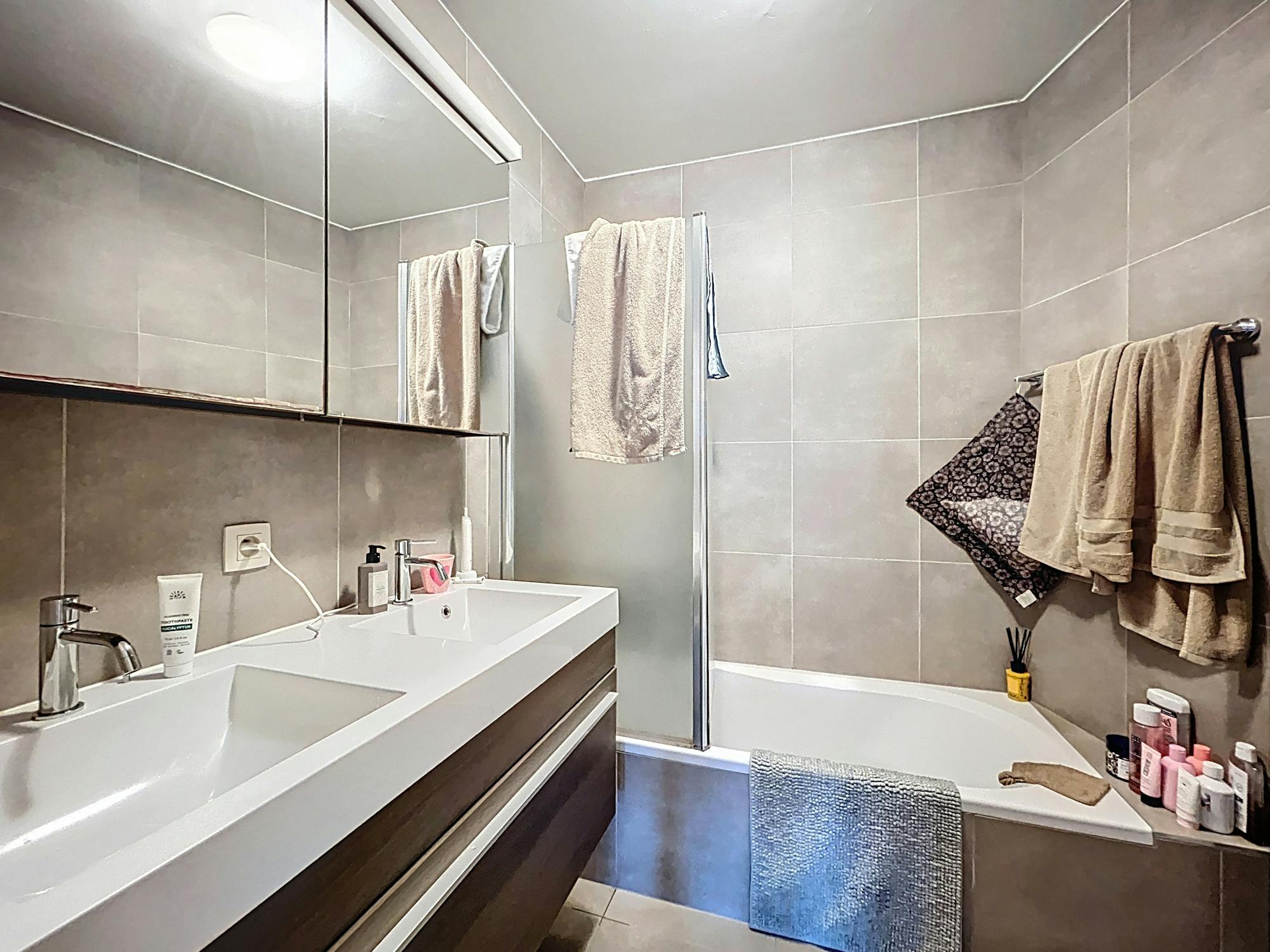 Het appartement beschikt over een lichte en ruime woonkamer, een volledig uitgeruste keuken, 2 volwaardige slaapkamers en een moderne badkamer. Dankzij de grote ramen geniet je van veel natuurlijk licht.