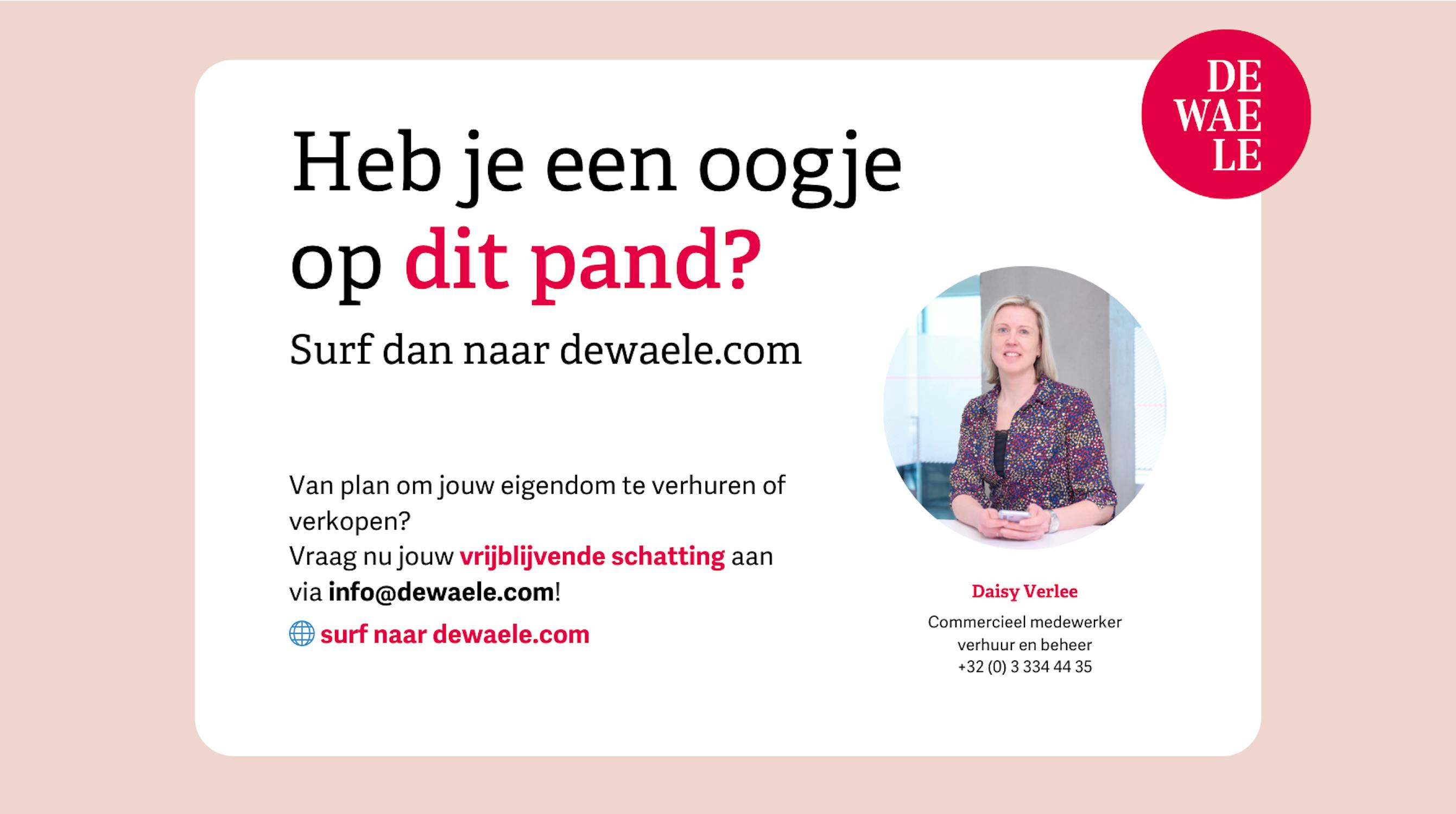 Om een bezoek te brengen vragen wij vooraf uw huurprofiel aan te maken als volgt: ga naar het pand op onze website: www.dewaele.com. Bij het pand ziet u een rode knop "bezoek aanvragen". Als u daar klikt, kan u het huurprofiel aanvullen.