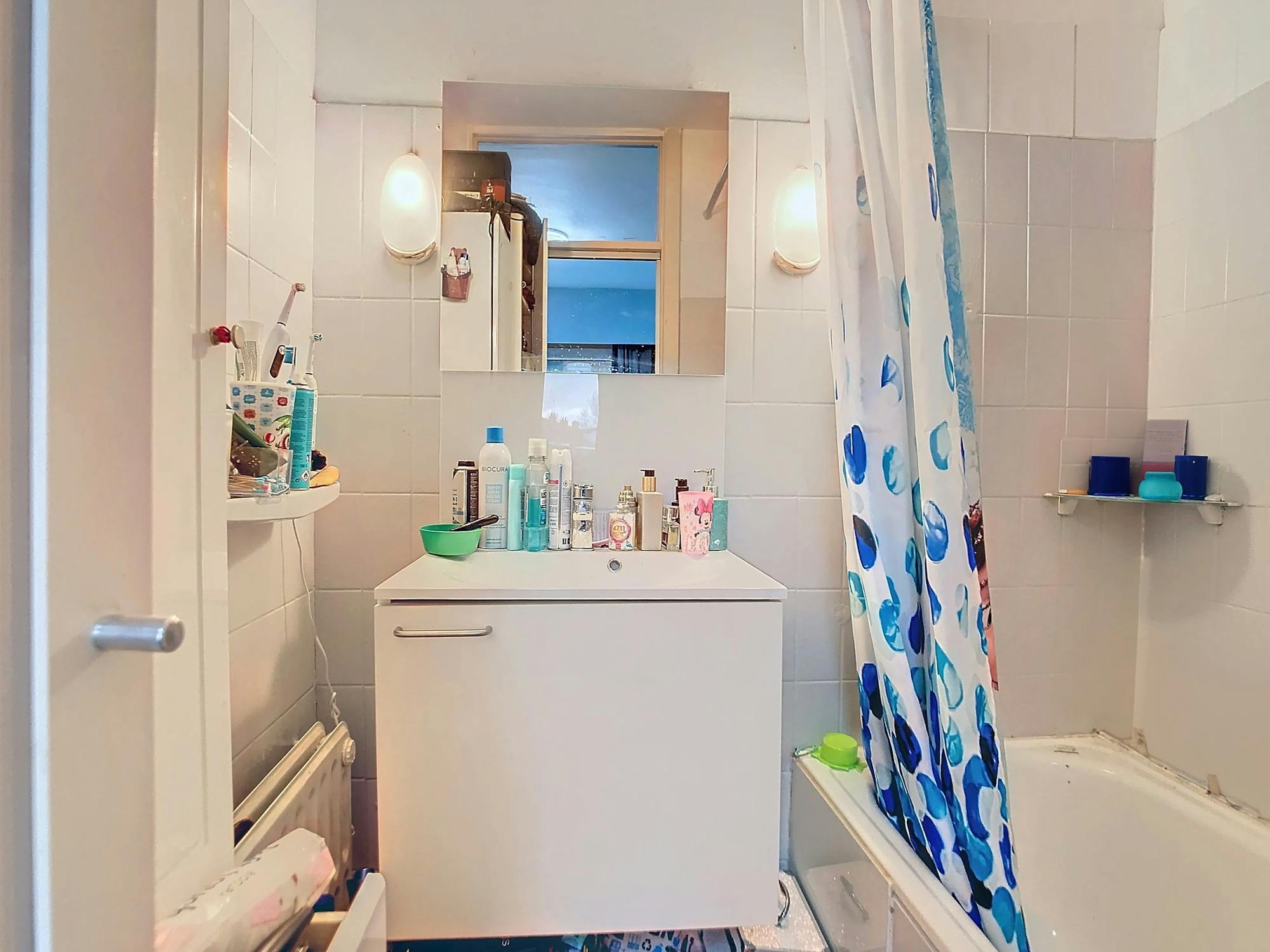 Het appartement beschikt over een ingerichte keuken (met vaatwasser, kookplaat en koelkast) en een badkamer met douche in het bad.