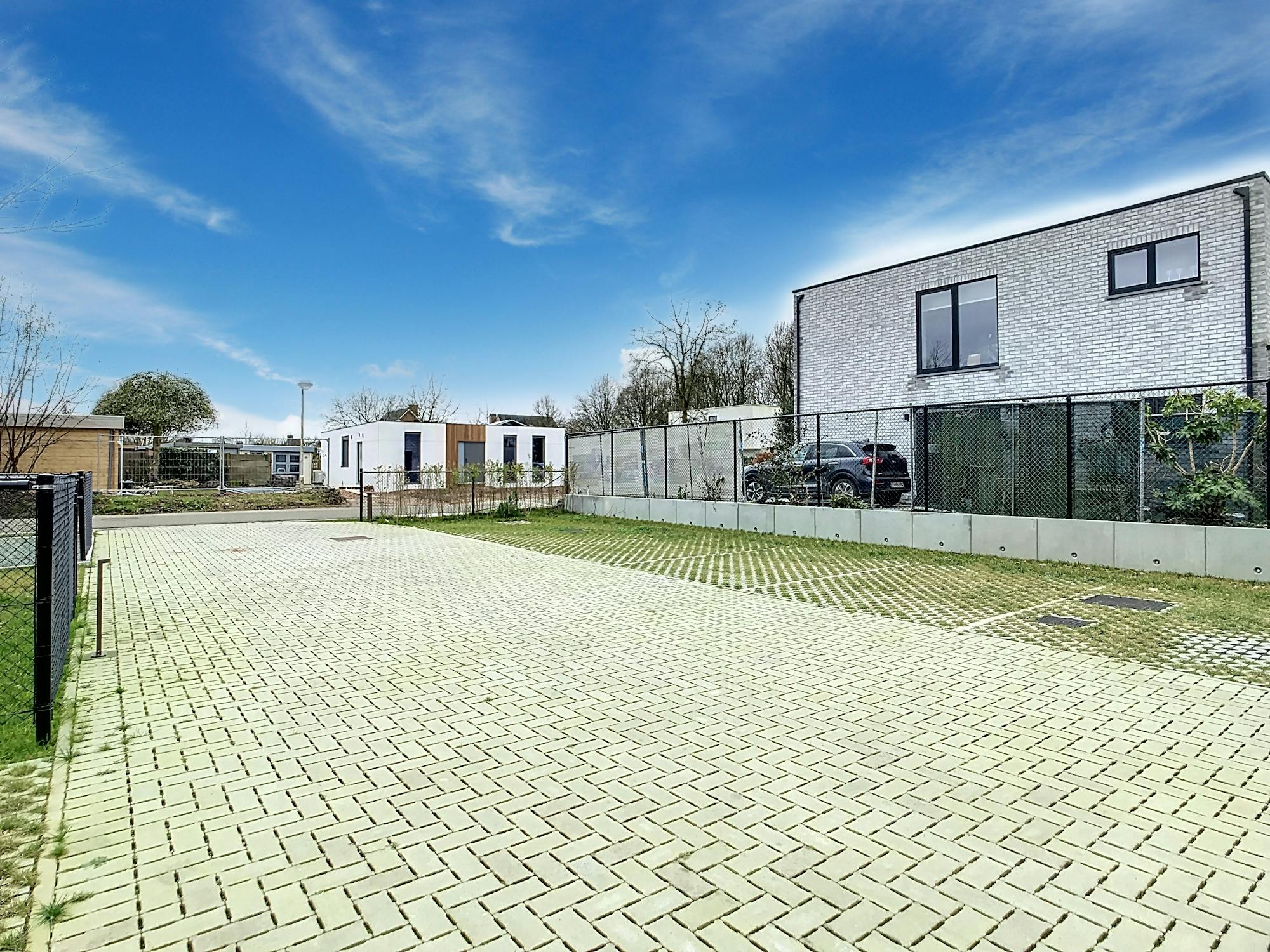 Achter het gebouw is er een ruime tuinzone, 15 parkeerplaatsen en een gemeenschappelijke fietsenberging. Bij dit appartement hoort 1 parkeerplaats en 2 fietsenplaatsen in de fietsenberging.