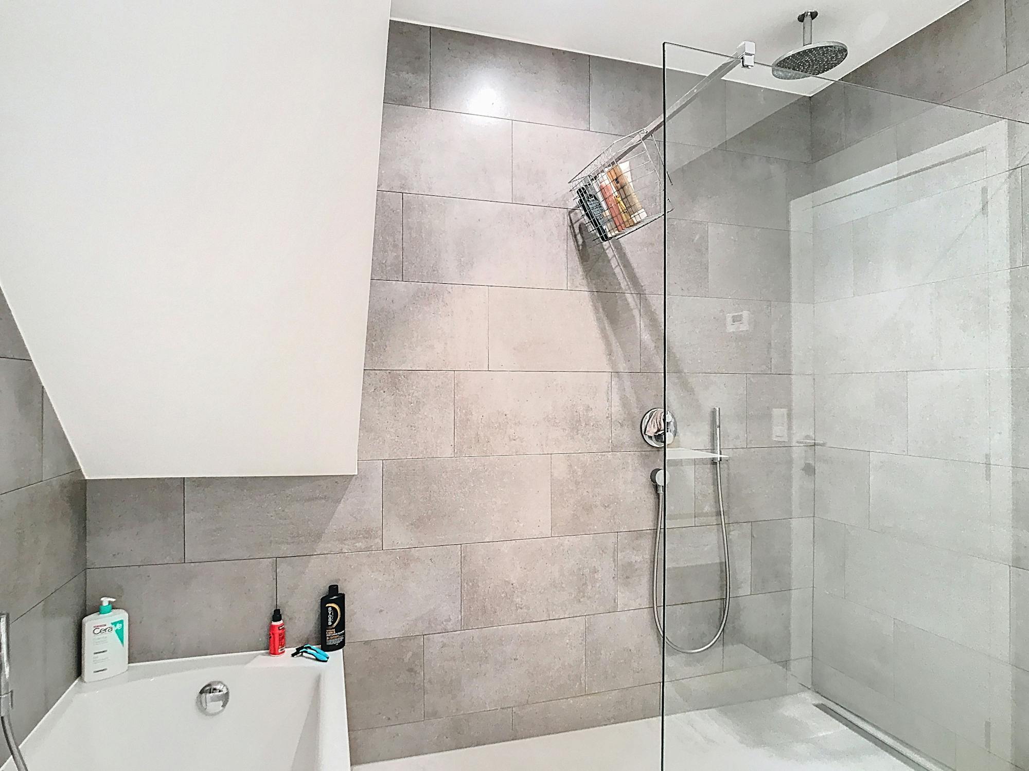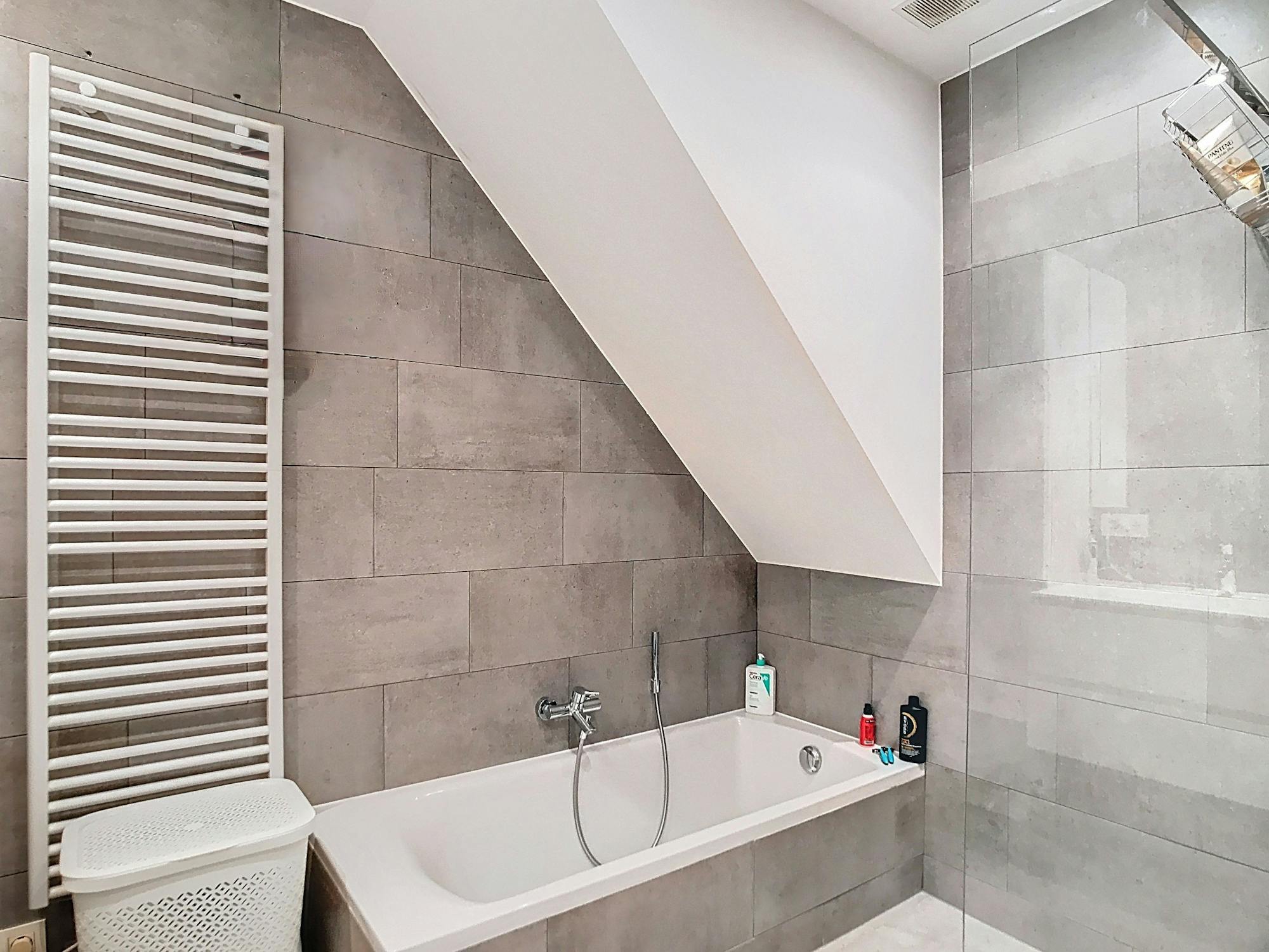 - Badkamer met bad en inloopdouche