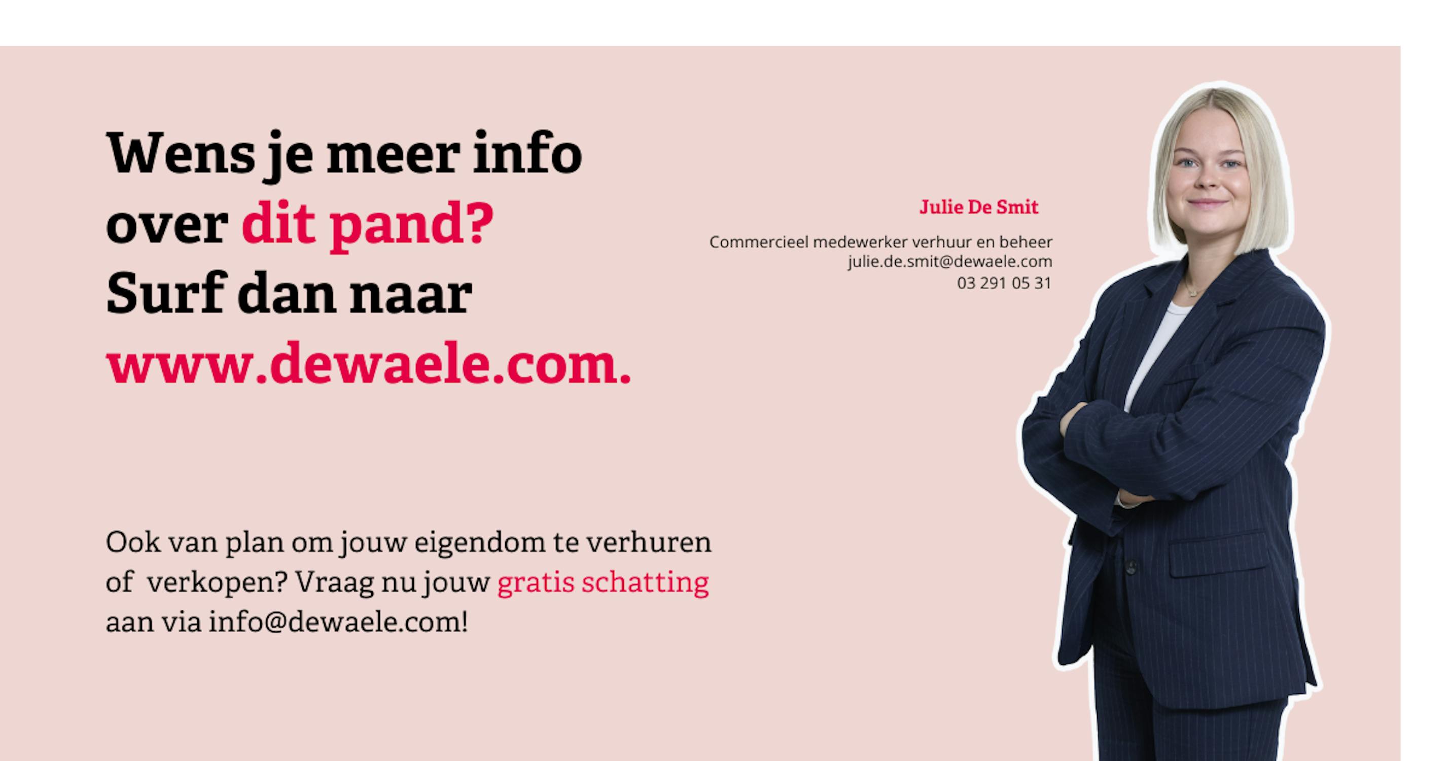 Om een bezoek te brengen vragen wij vooraf uw huurprofiel aan te maken als volgt: ga naar het pand op onze website: www.dewaele.com. Bij het pand ziet u een rode knop "bezoek aanvragen". Als u daar klikt, kan u het huurprofiel aanvullen.