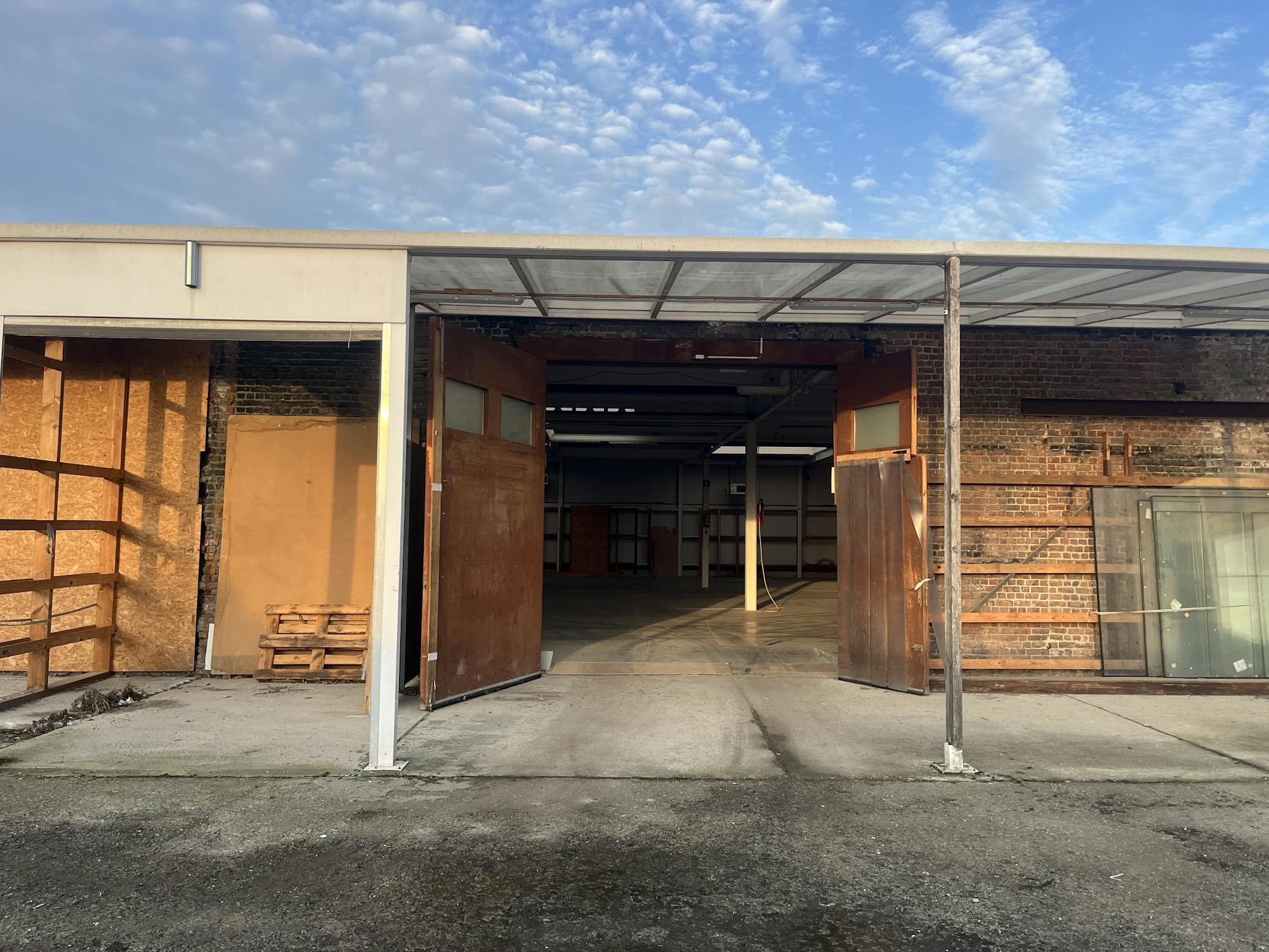 Magazijn van ca. 800 m² voor opslag te huur in Oudenaarde nabij de N60. Open en overdekte buitenruimte. Onmiddellijk beschikbaar!