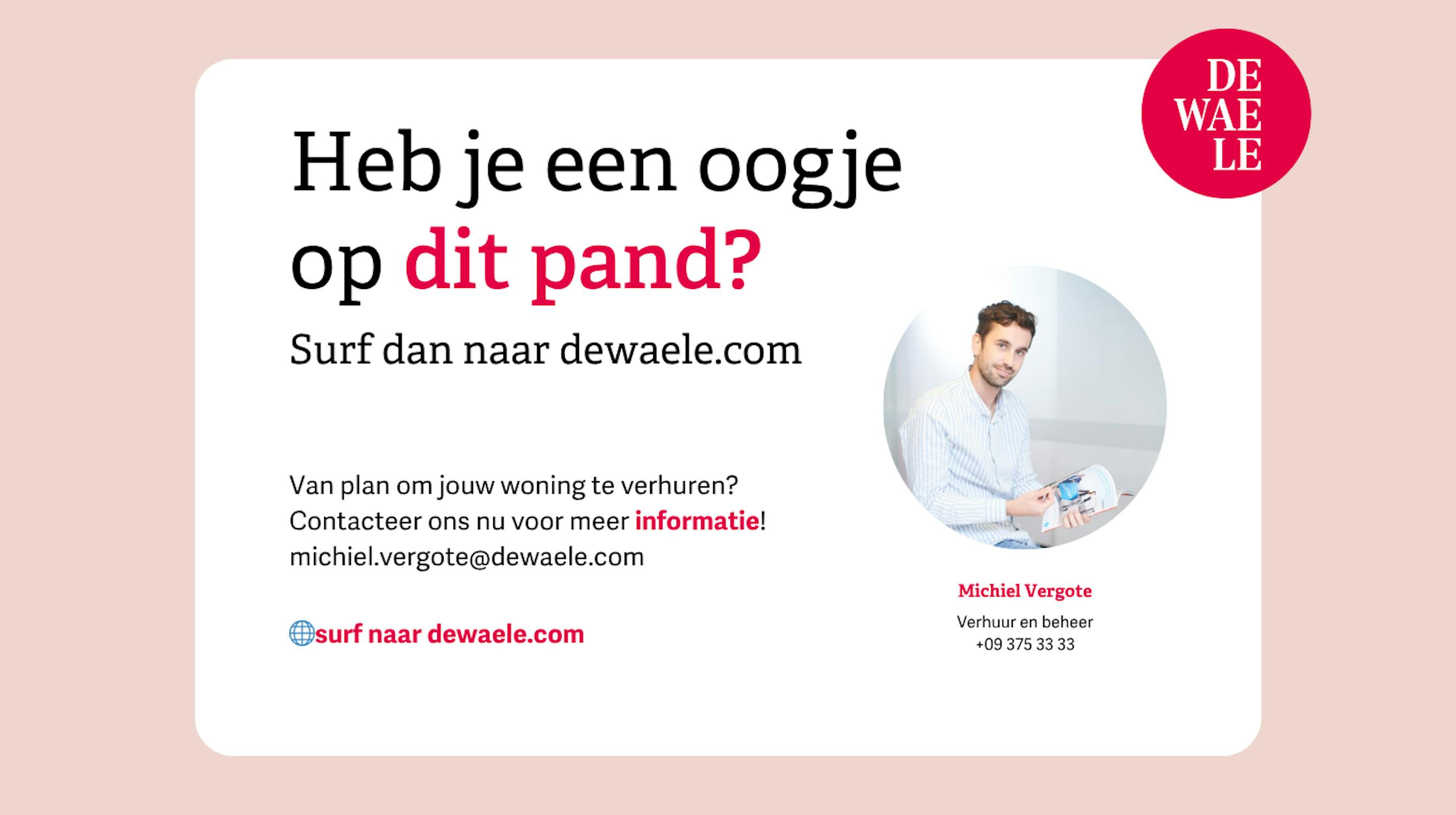 Indien je deze eigendom graag wenst te bezoeken, dien je eerst een huurprofiel aan te maken via mijnhuurprofiel.be. Aan de hand van jouw huurdersprofiel bekijken we of de huurpanden waarin je interesse toont matchen met de door jou ingevulde gegevens en nemen wij contact op om het bezoek in te plannen. Je kunt je huurprofiel aanmaken via de knop 'bezoek aanvragen'.