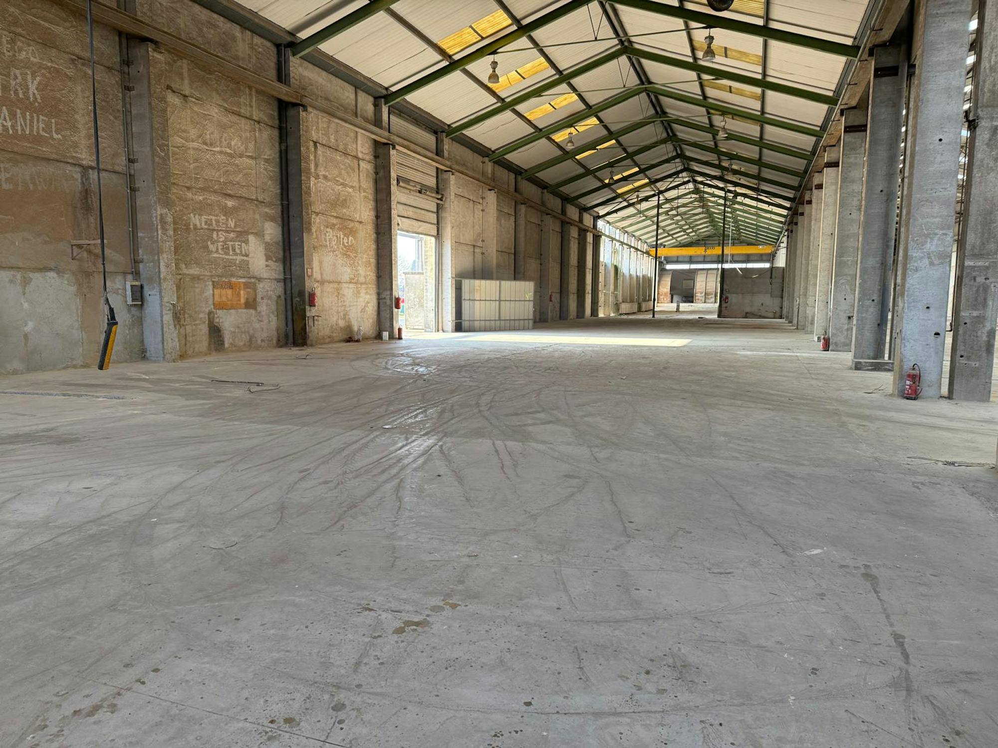 Magazijn (4.214 m²) met kantoor (200 m²) en verharde buitenruimte (1.538 m²) te huur in Aalter.