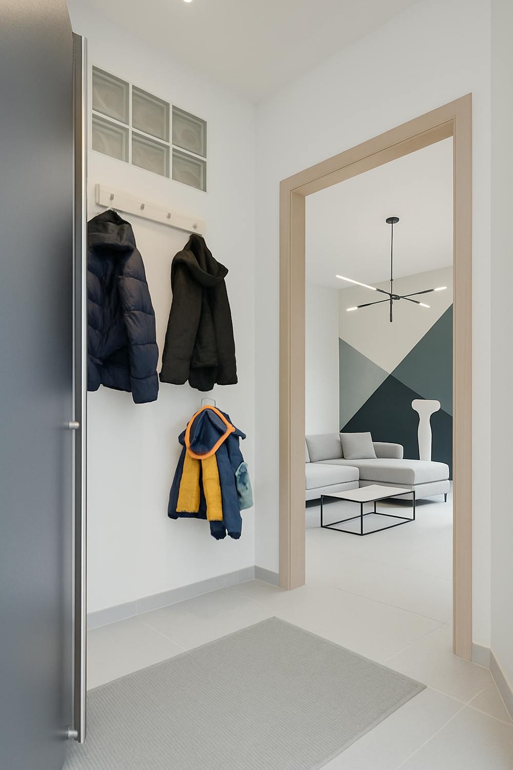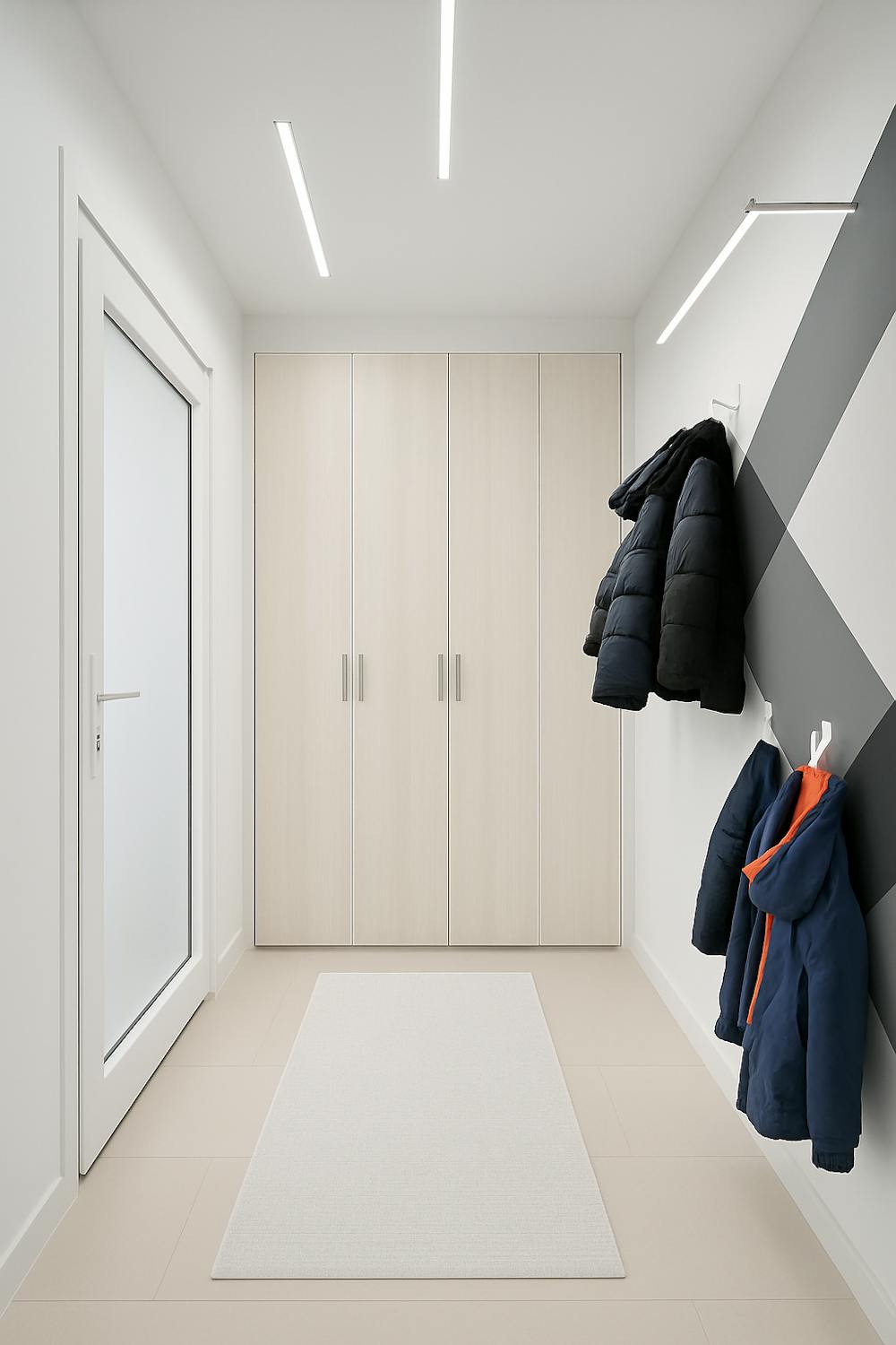 - Inkomhal met ingemaakte kasten en met toegang naar de kelder