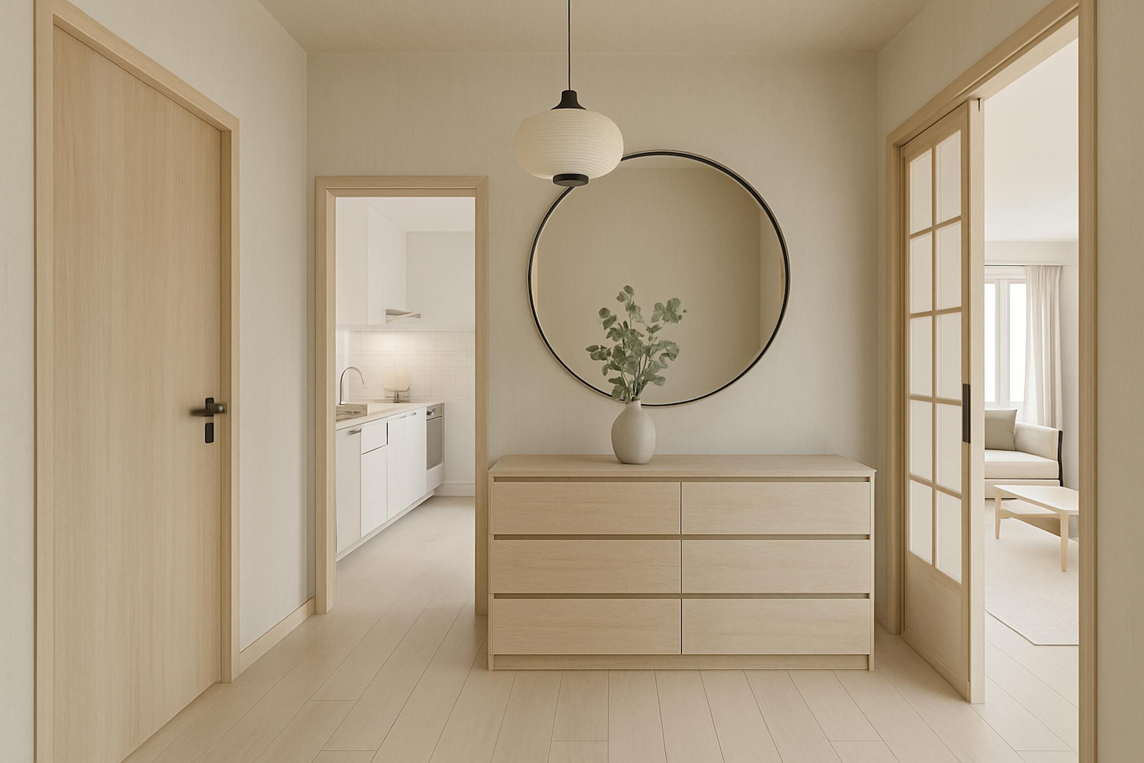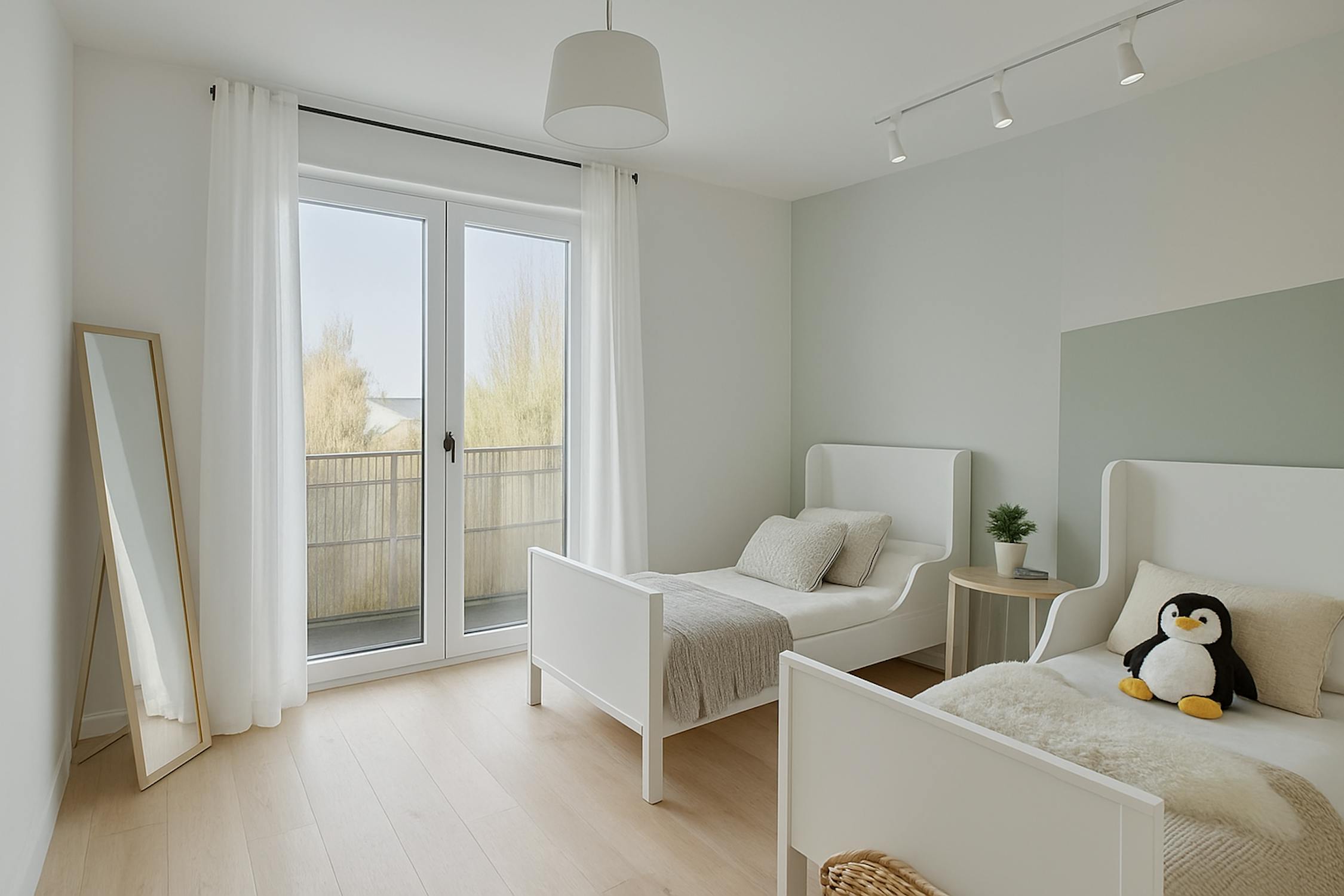 - Twee volwaardige slaapkamers en een mogelijkheid tot een derde slaapkamer door eenvoudig een gyprocwand te plaatsen – de deur is reeds voorzien