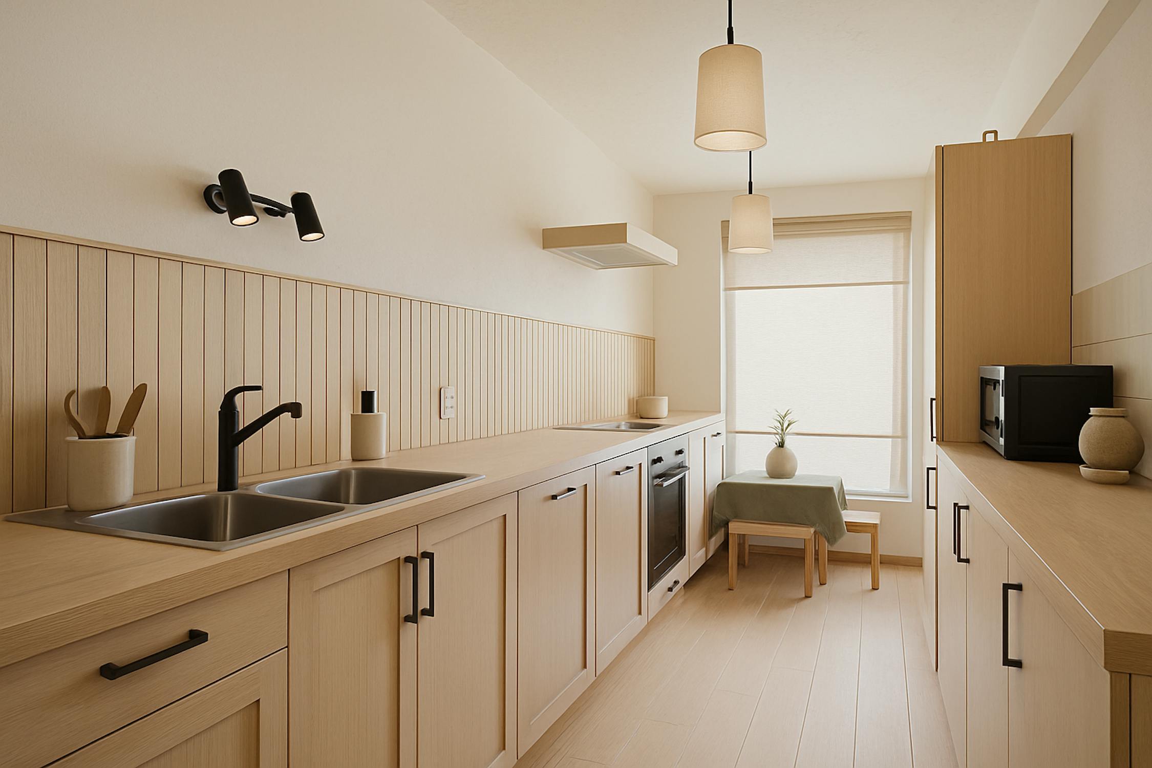 - Geïnstalleerde keuken, voorzien van oven en vaatwasser