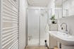 - Ingerichte badkamer omvat een douche en lavabo.
