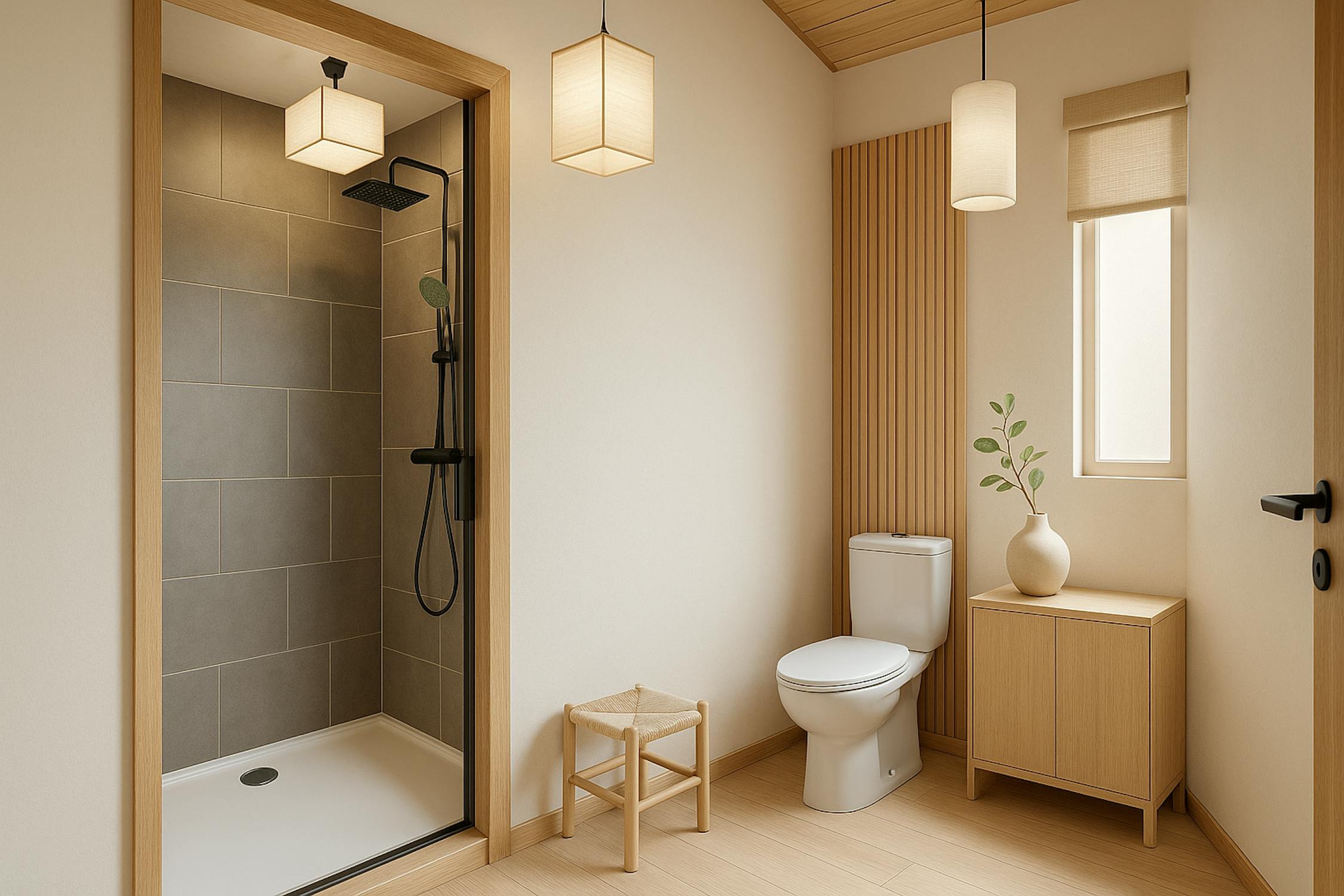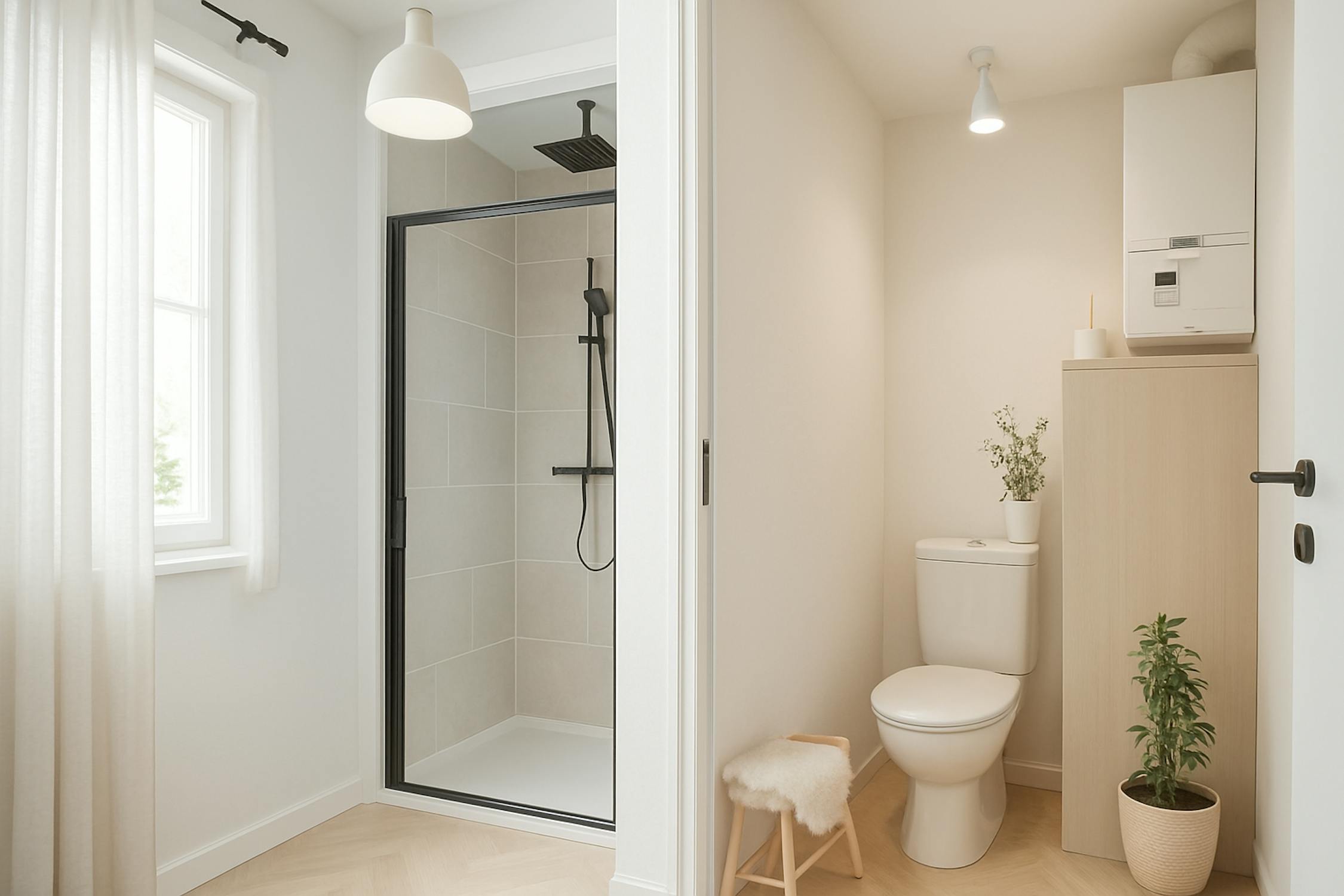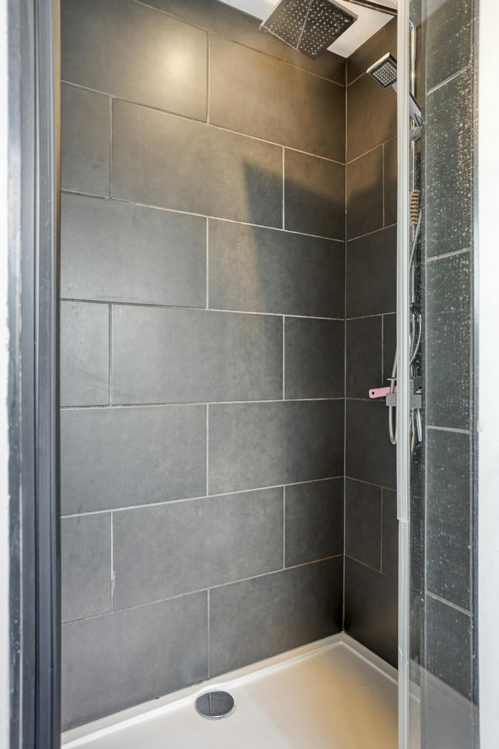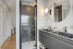 - badkamer met douche, toilet en lavabo.