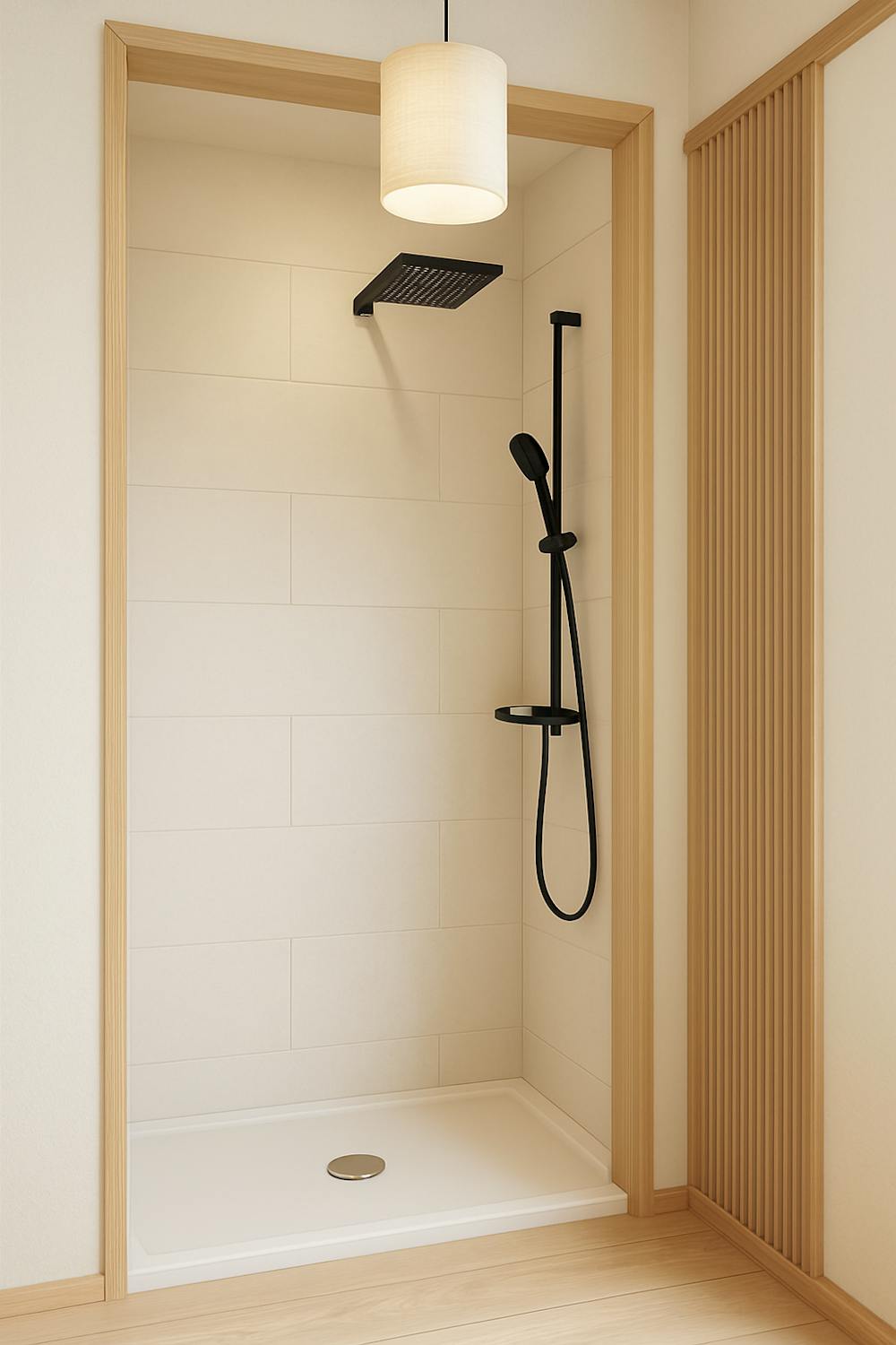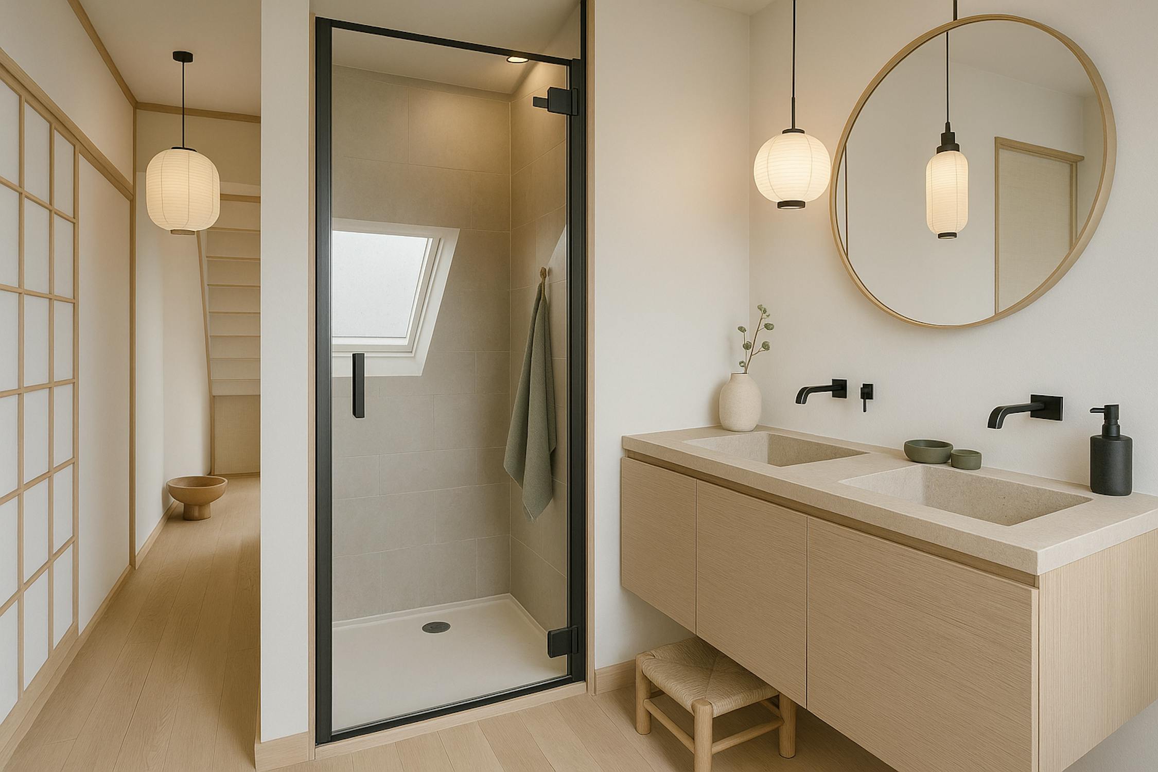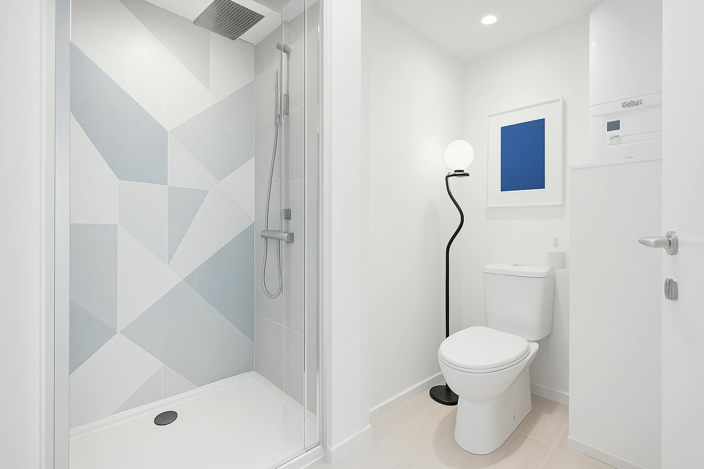 - badkamer met douche, toilet en lavabo.