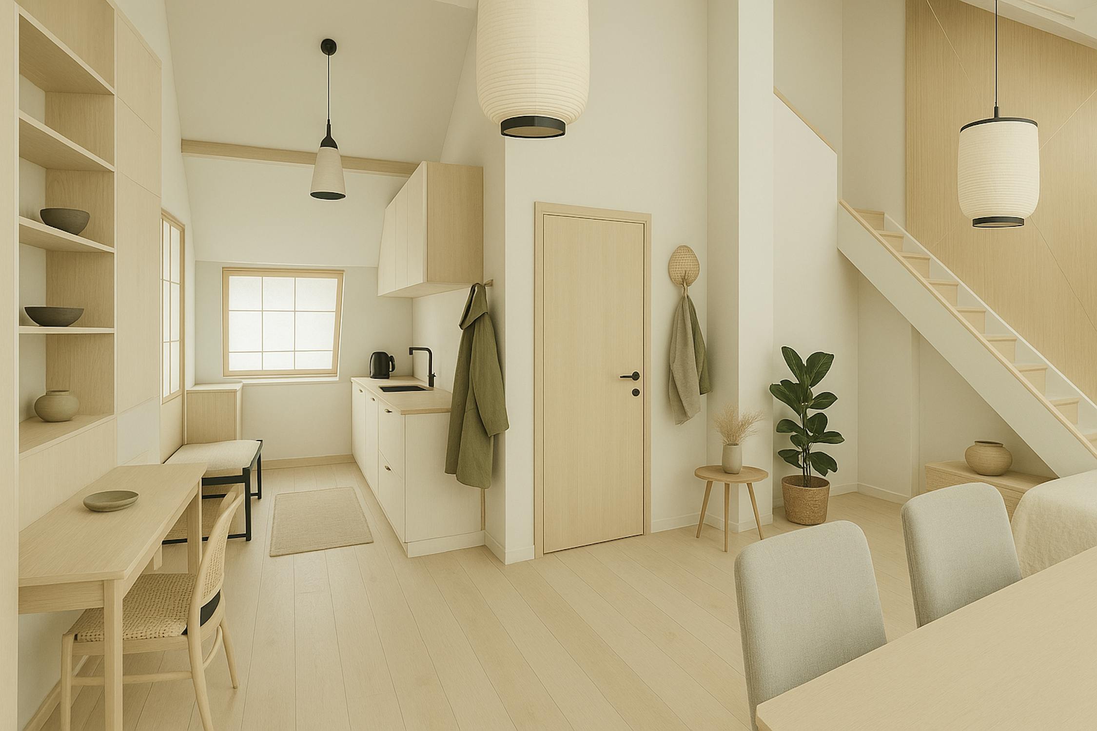 - slaapkamer op de mezzanine, via de trap