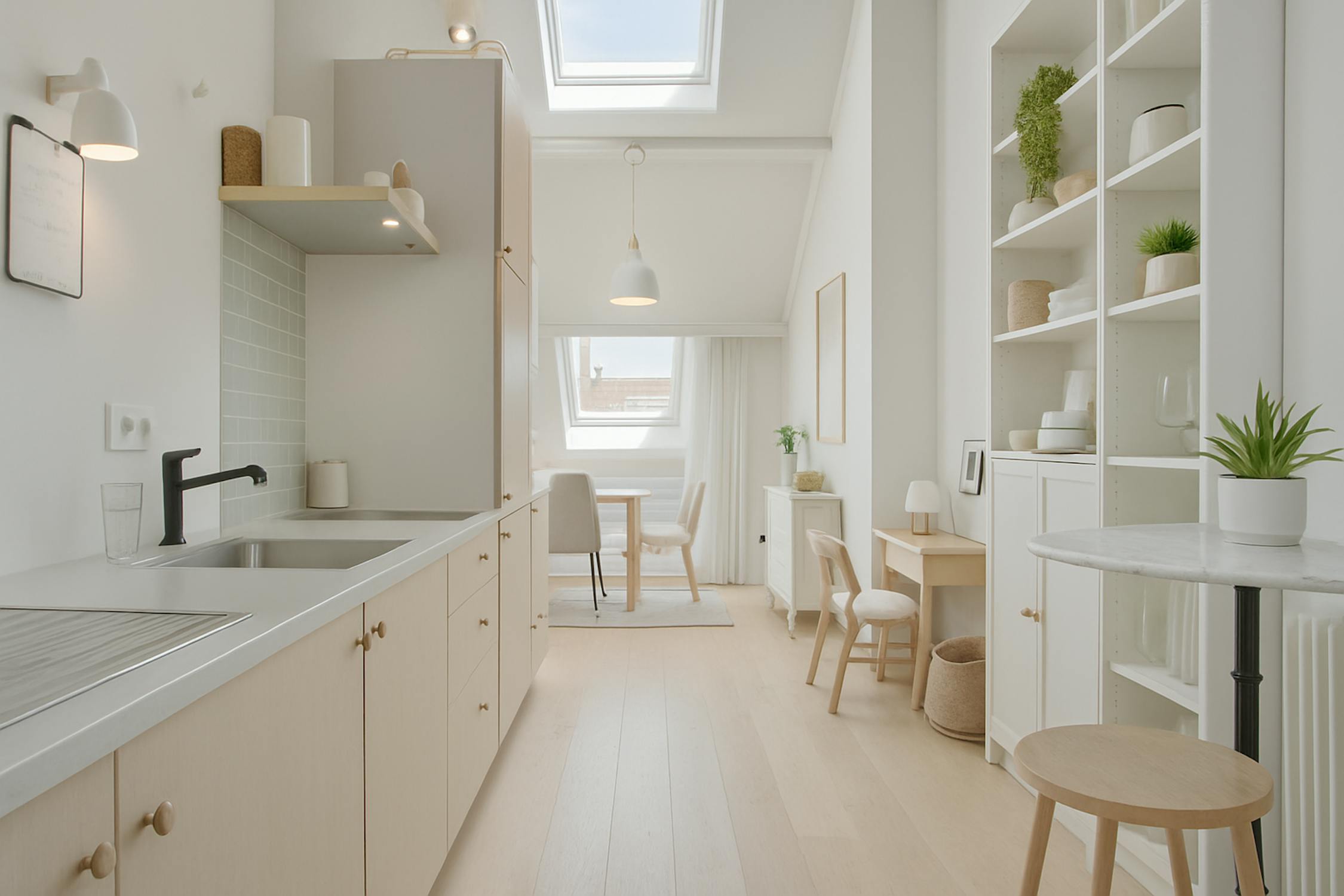 - leefruimte met veel lichtinval en hoge plafonds