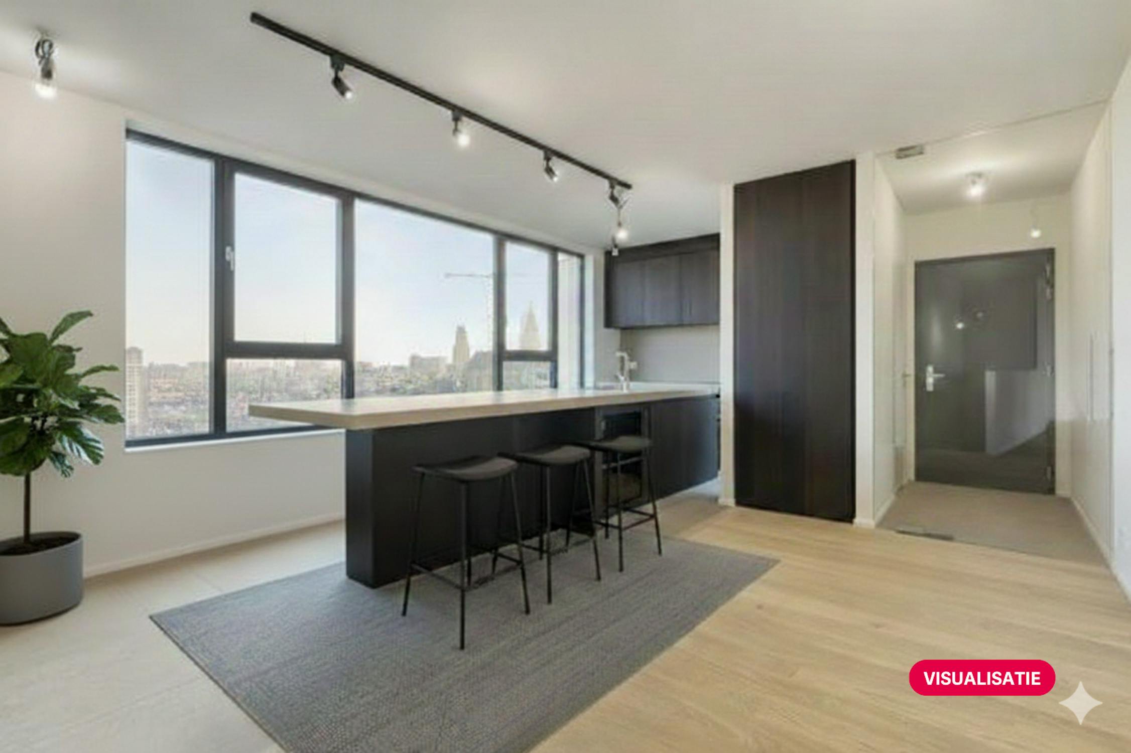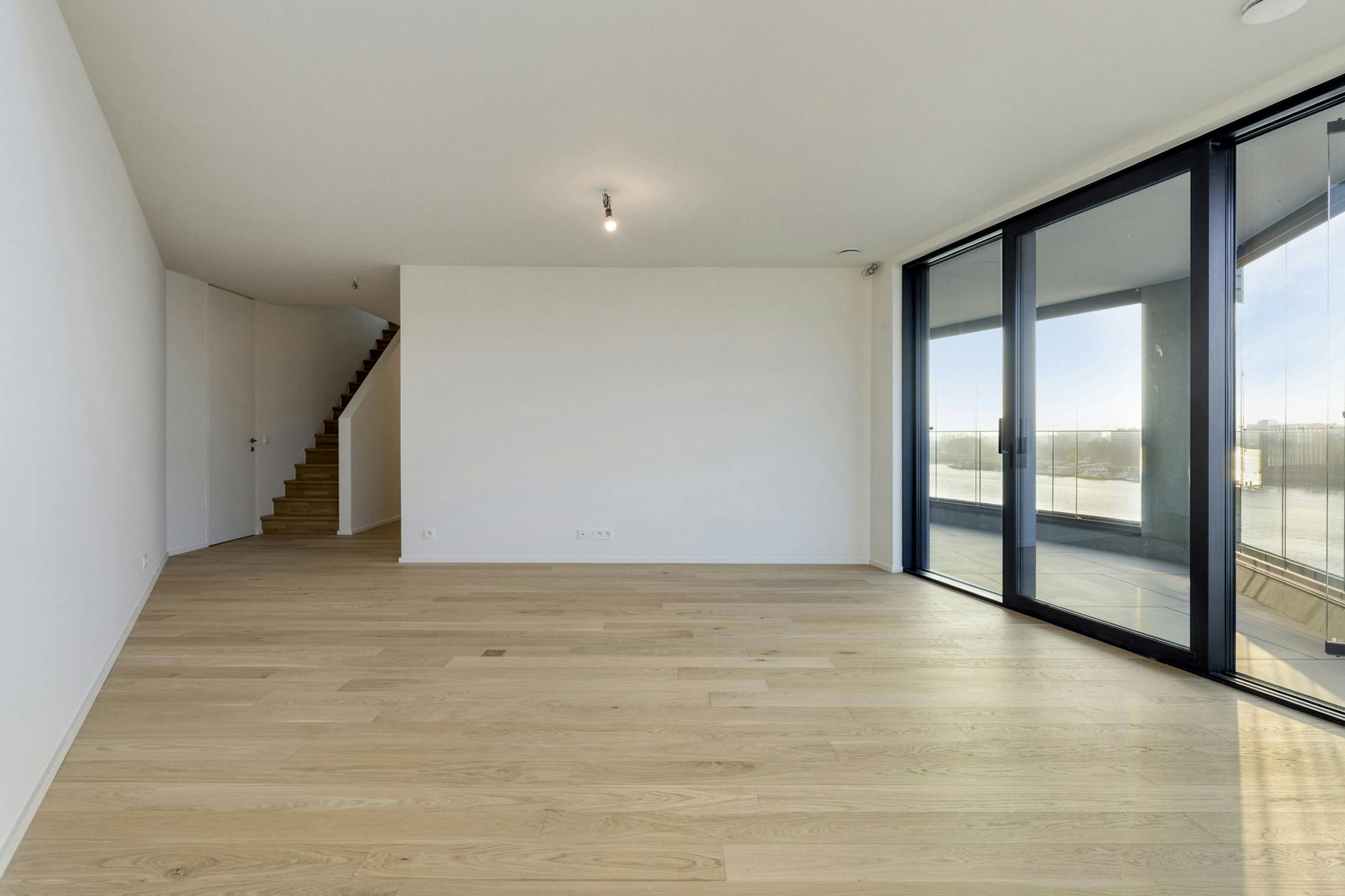 Uitzonderlijke duplexpenthouse van ca 220 m² in het nieuwbouwproject Rivert gelegen aan de Van Meterenkaai in centrum Antwerpen heeft een prachtig terras met frontaal zicht op de Schelde.