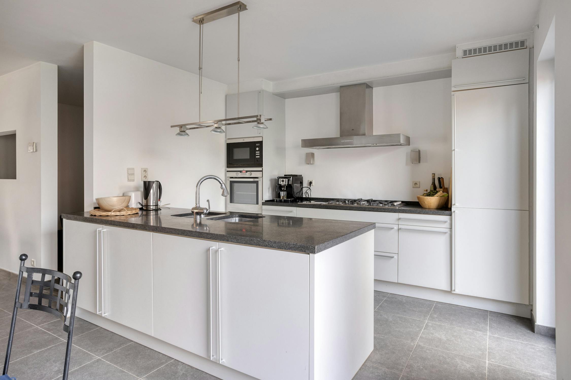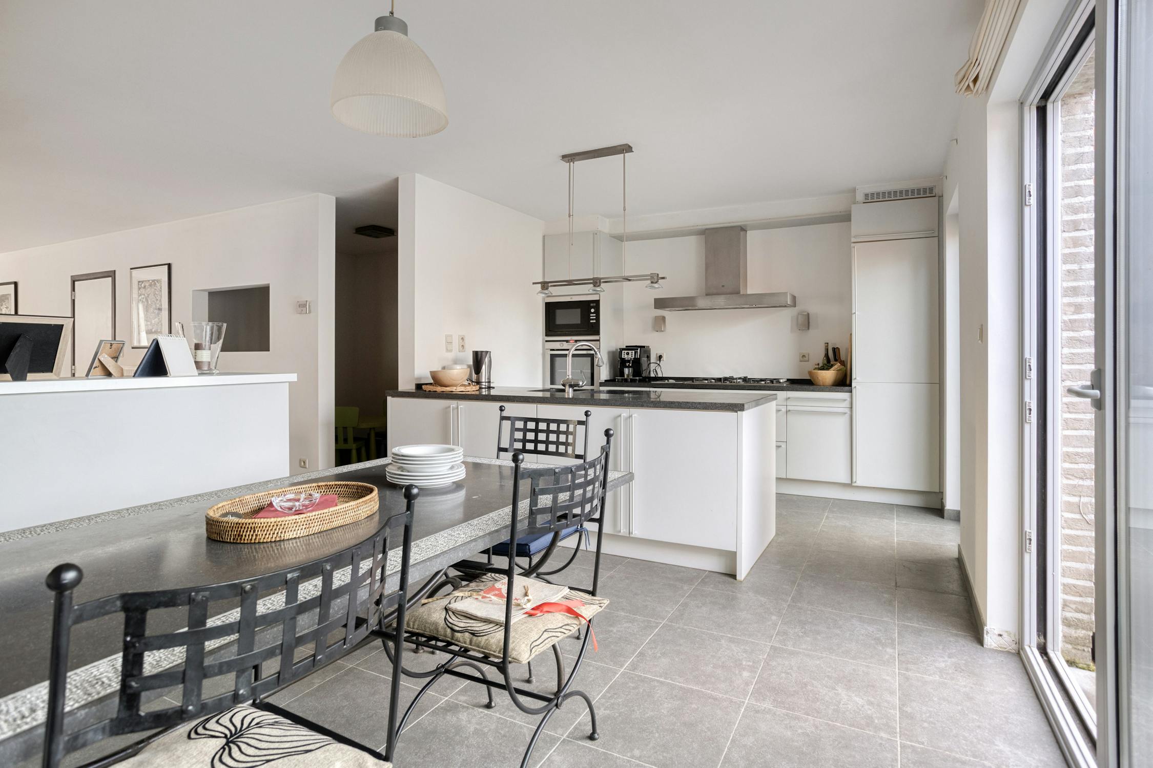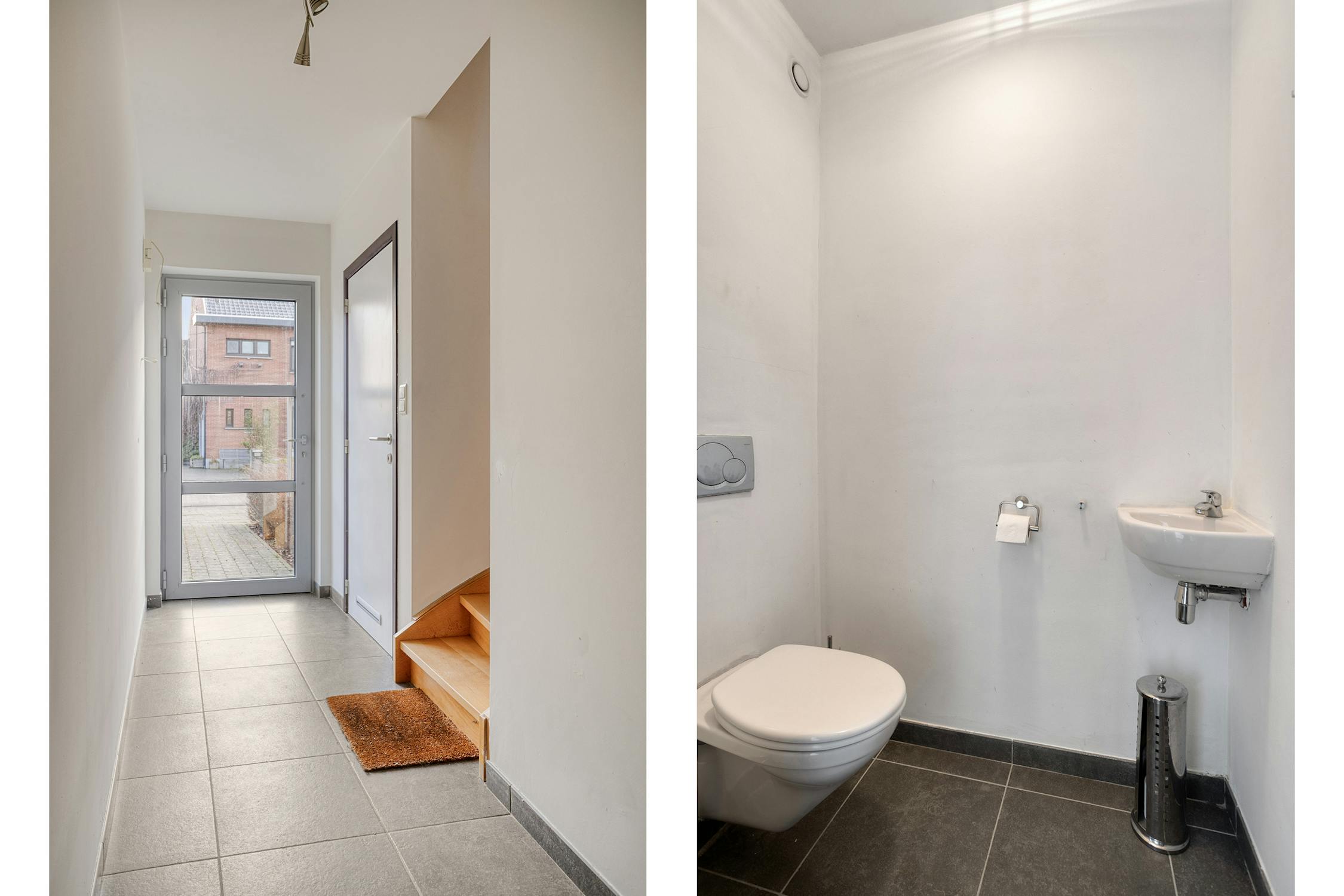 - Gelijkvloers: Inkomhal, gastentoilet, leefruimte met open ingerichte keuken, inpandige garage, zonnig georiënteerd terras en tuin.