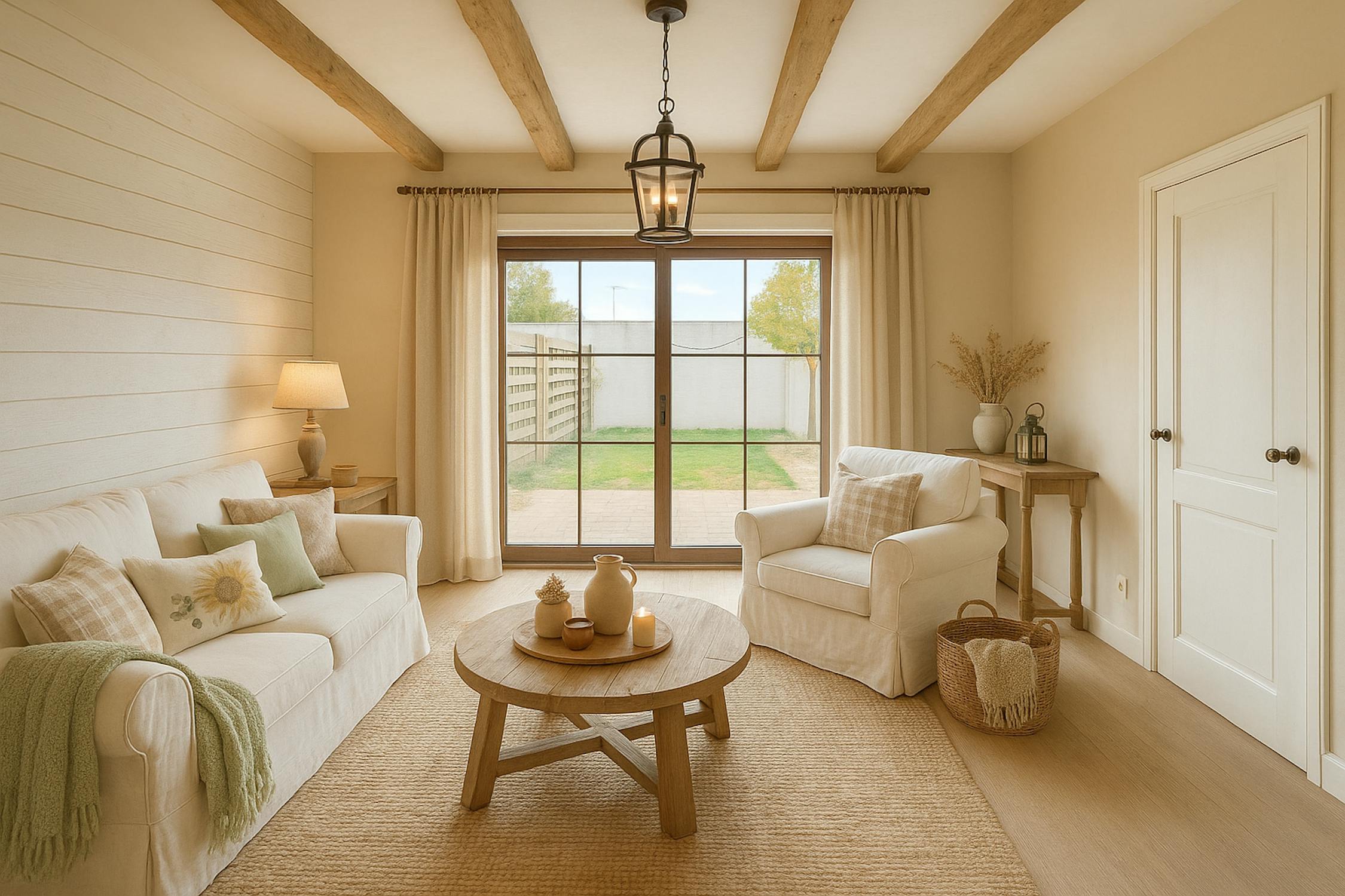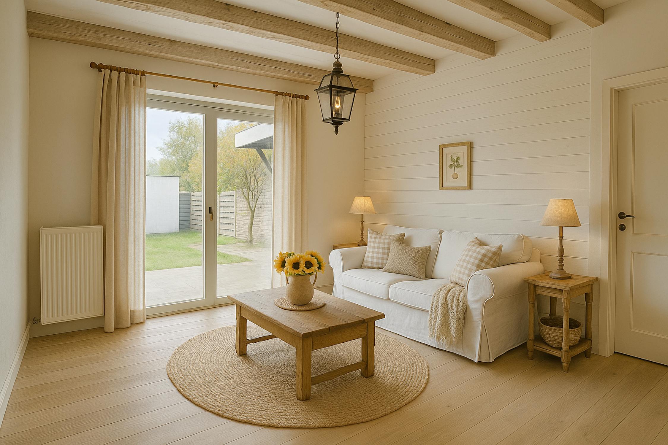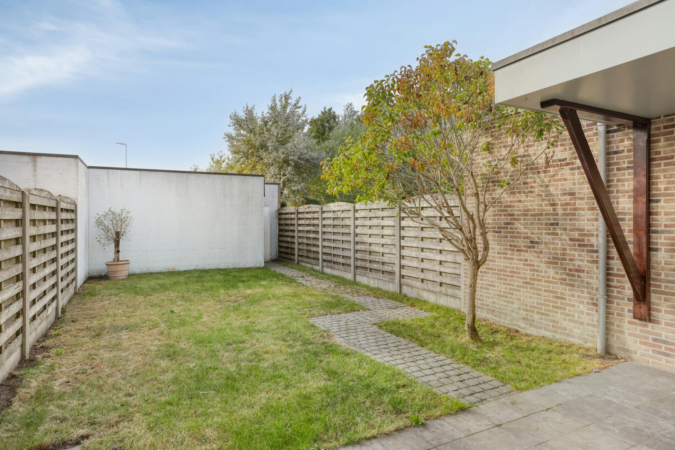 - Toegang tot de tuin via achterdeur en deur in leefruimte, met een fijn terras, deels overdekt.